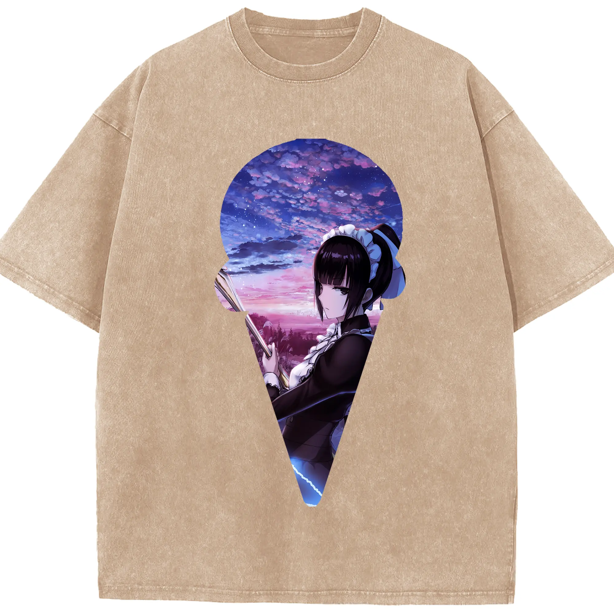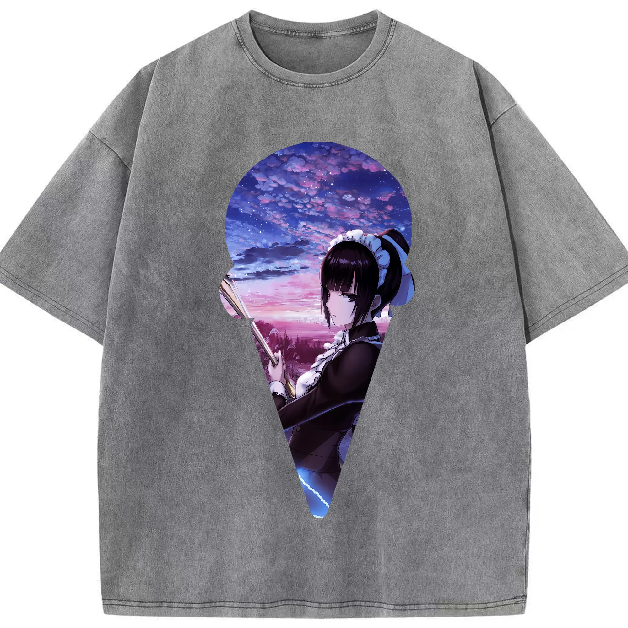 銀魂 グッズ 神楽 - 綿100% ヴィンテージ風 半袖Tシャツ ・ フロントプリント ・ 柔らか肌触り ・ 通気性 快適 ・ スポーツ カジュアル 外出用