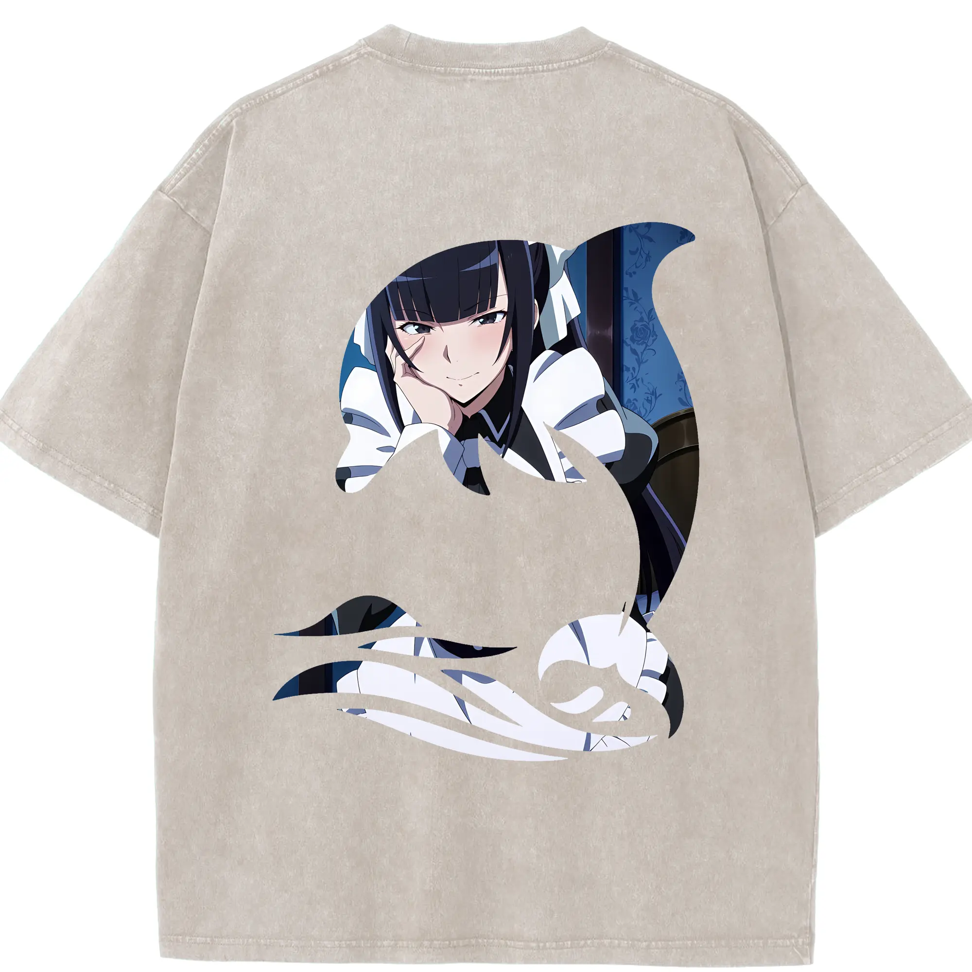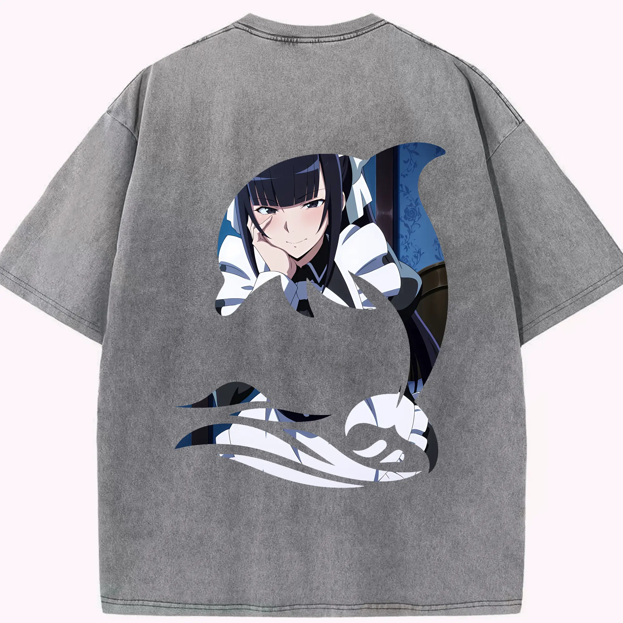 オーバーロード グッズ アルベド - 綿100% ヴィンテージ風 半袖Tシャツ ・ 背面プリント ・ 柔らか肌触り ・ 通気性 快適 ・ スポーツ カジュアル 外出用