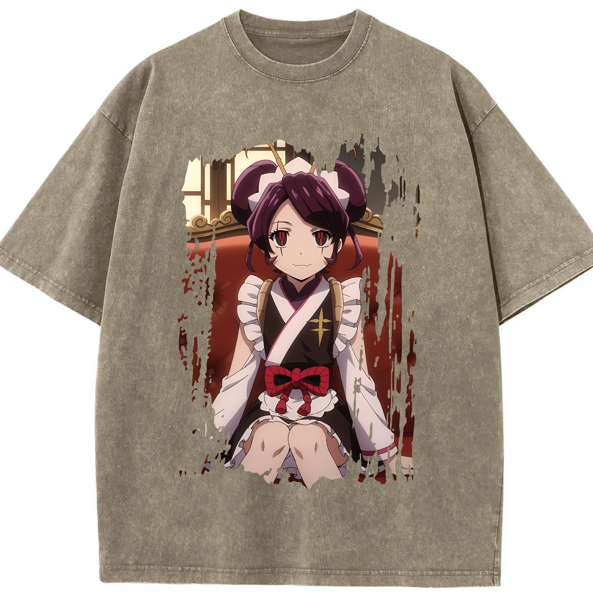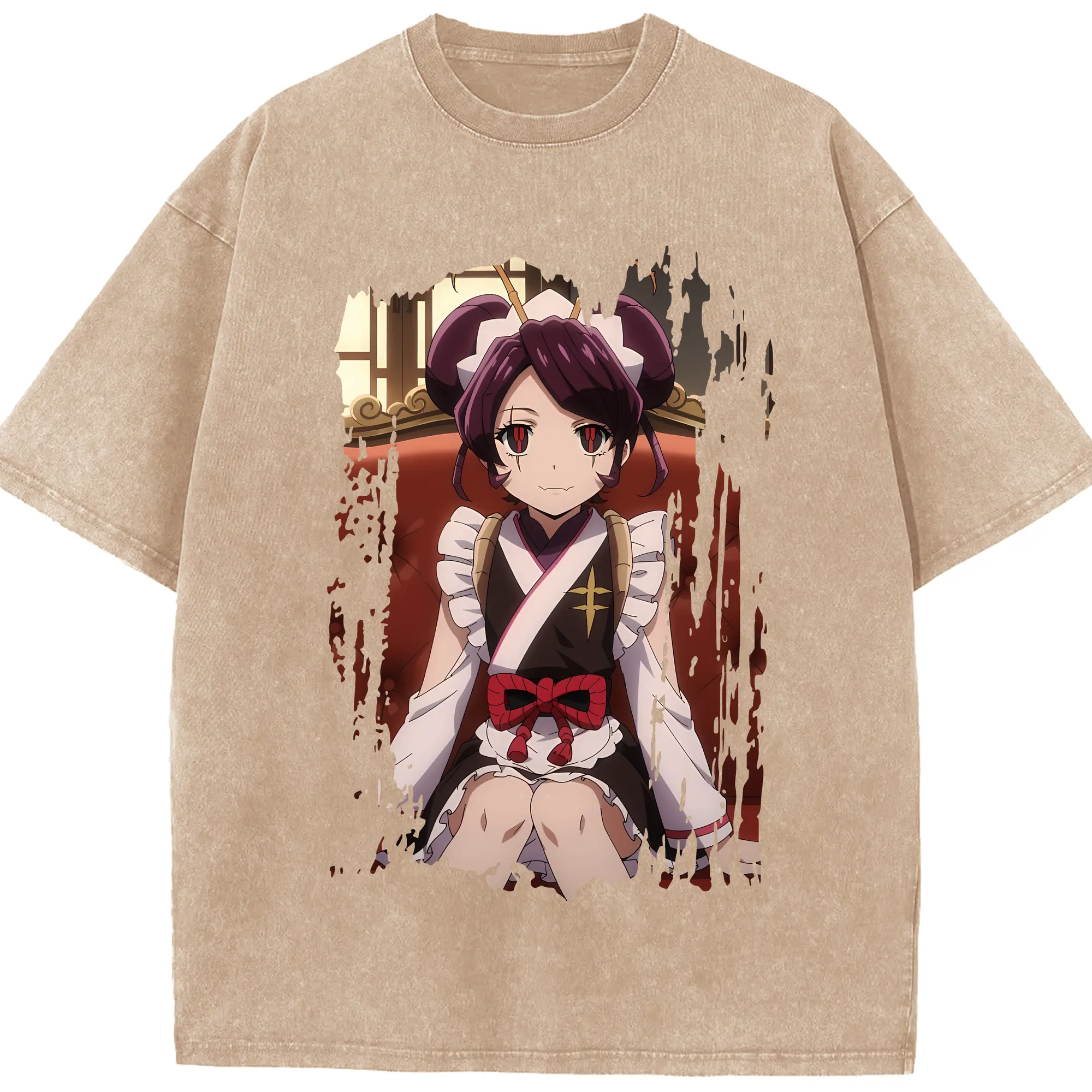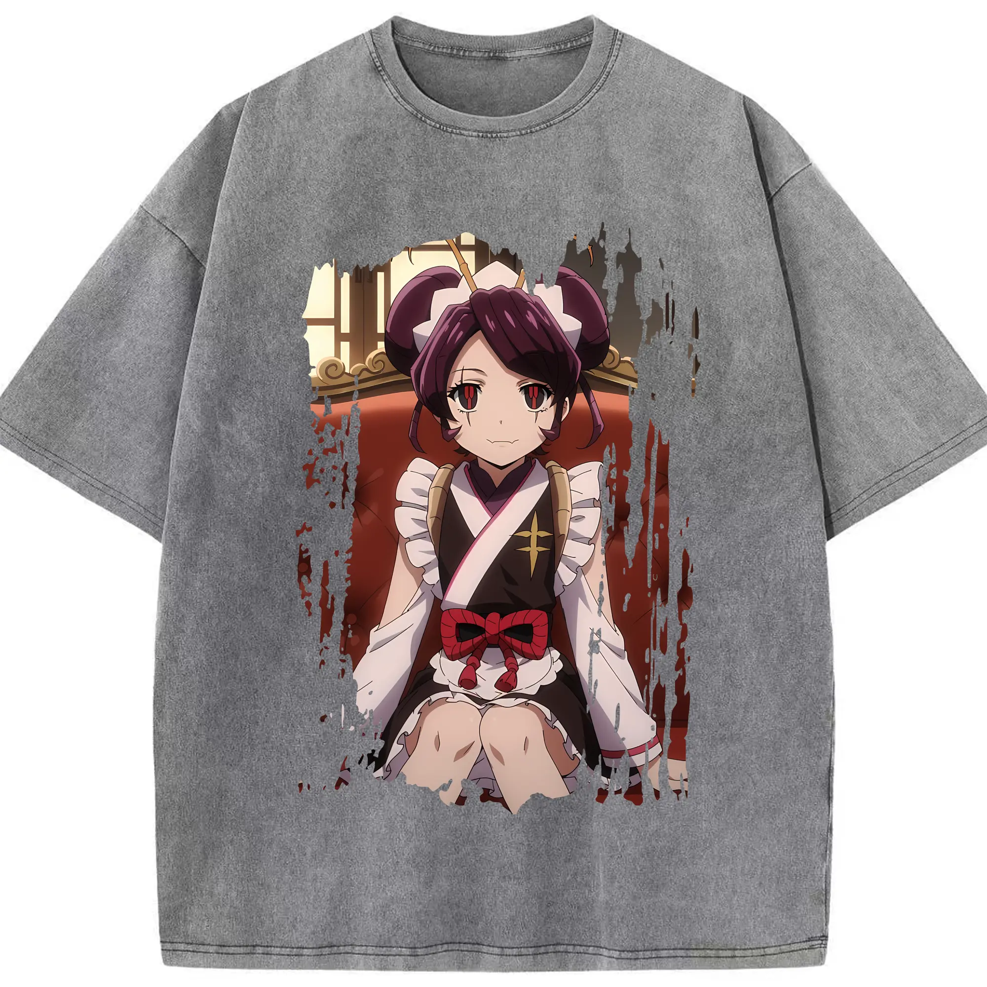 オーバーロード グッズ エントマ・ヴァシリッサ・ゼータ - 綿100% ヴィンテージ風 半袖Tシャツ ・ 背面プリント ・ 柔らか肌触り ・ 通気性 快適 ・ スポーツ カジュアル 外出用