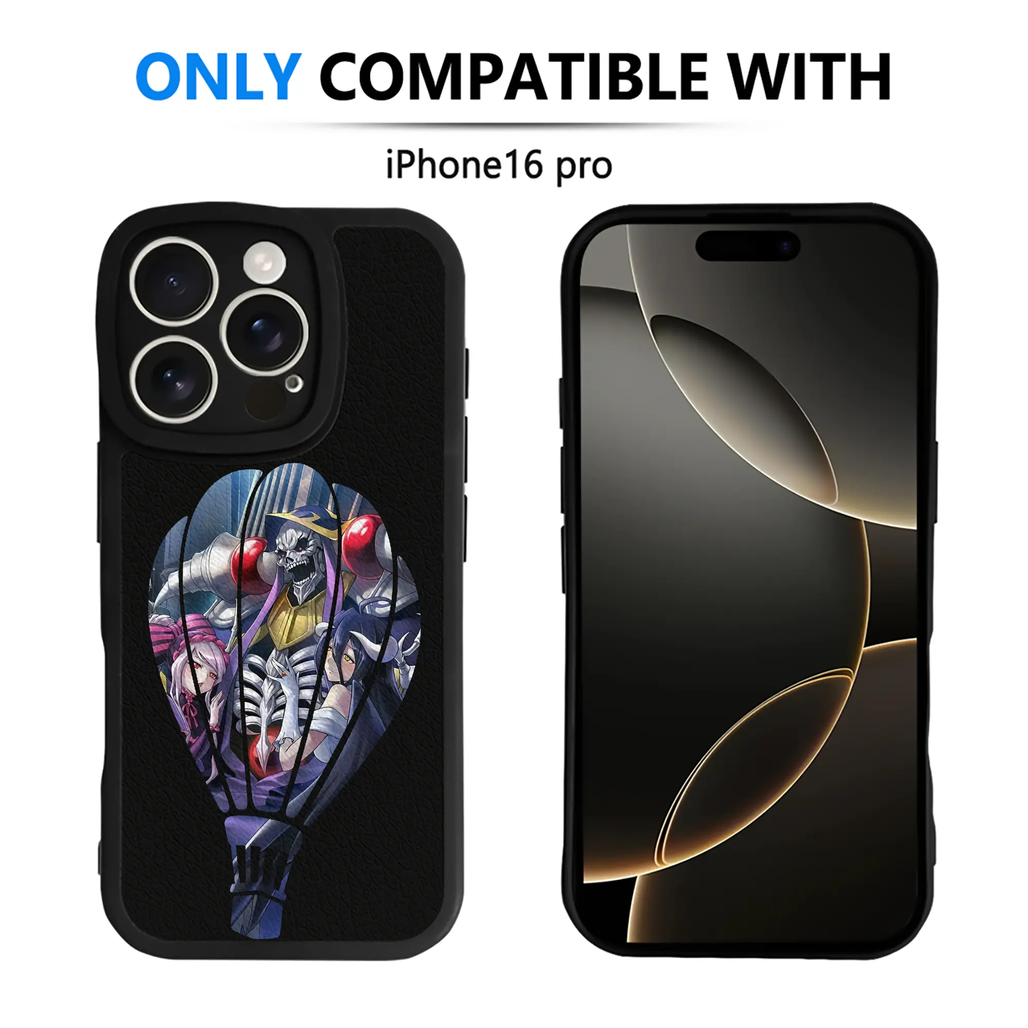 オーバーロード グッズ アインズ・ウール・ゴウン - IPhone 16シリーズ対応 ・ シリコンスマホケース ・ レザー調 ・ 高精度フィット ・ 耐衝撃 ・ ワイヤレス充電対応 ・ 精密カット