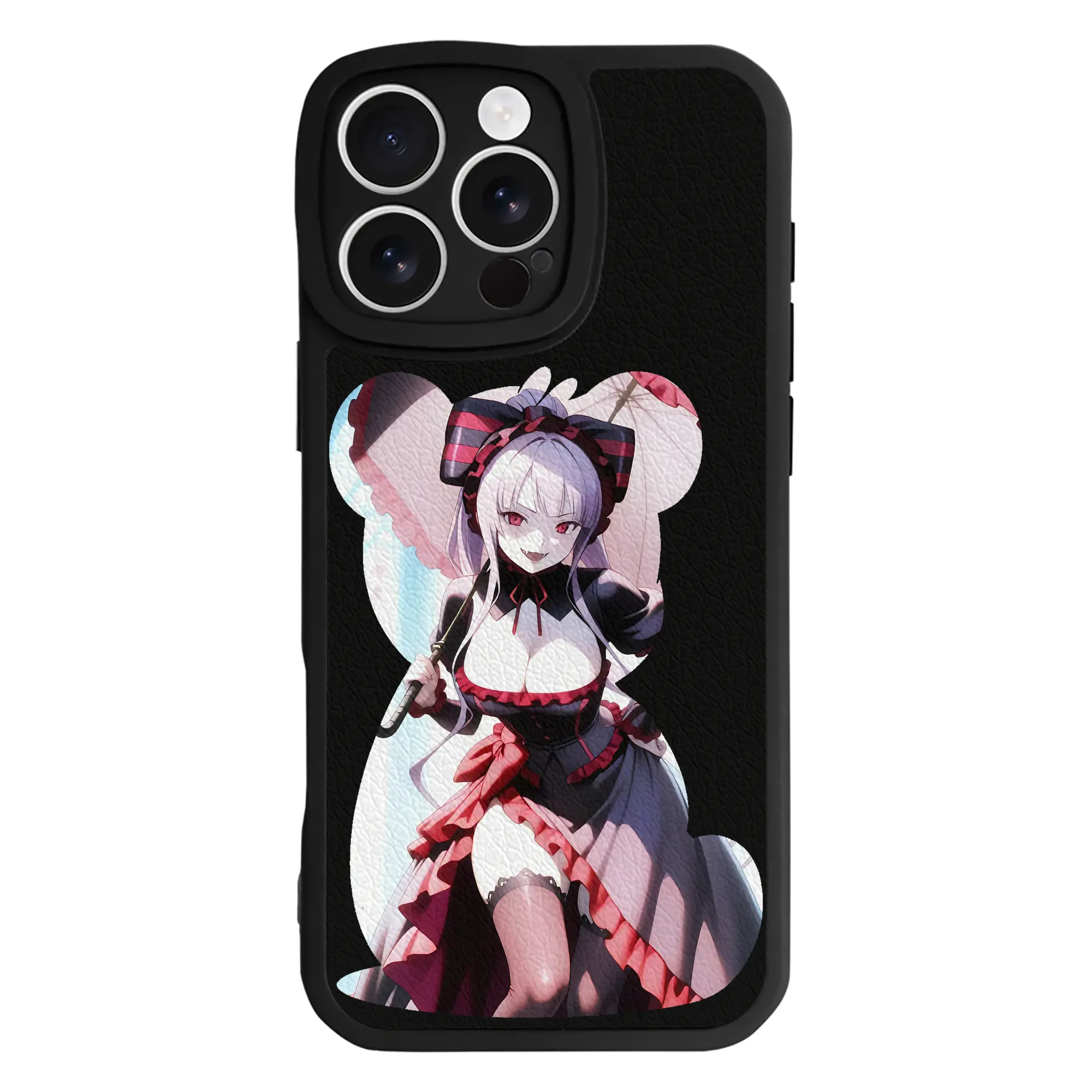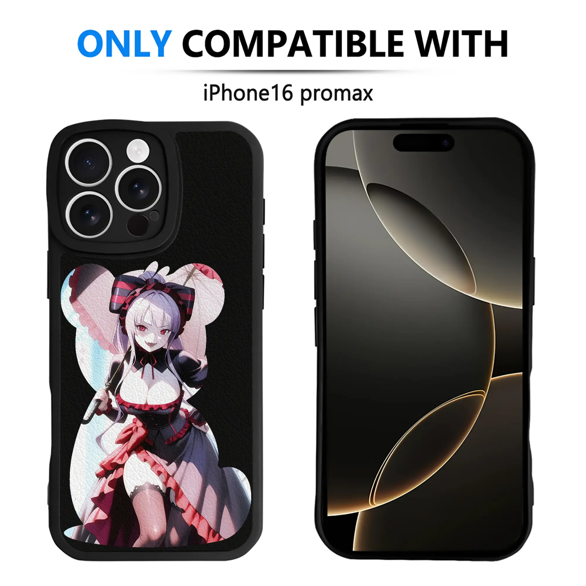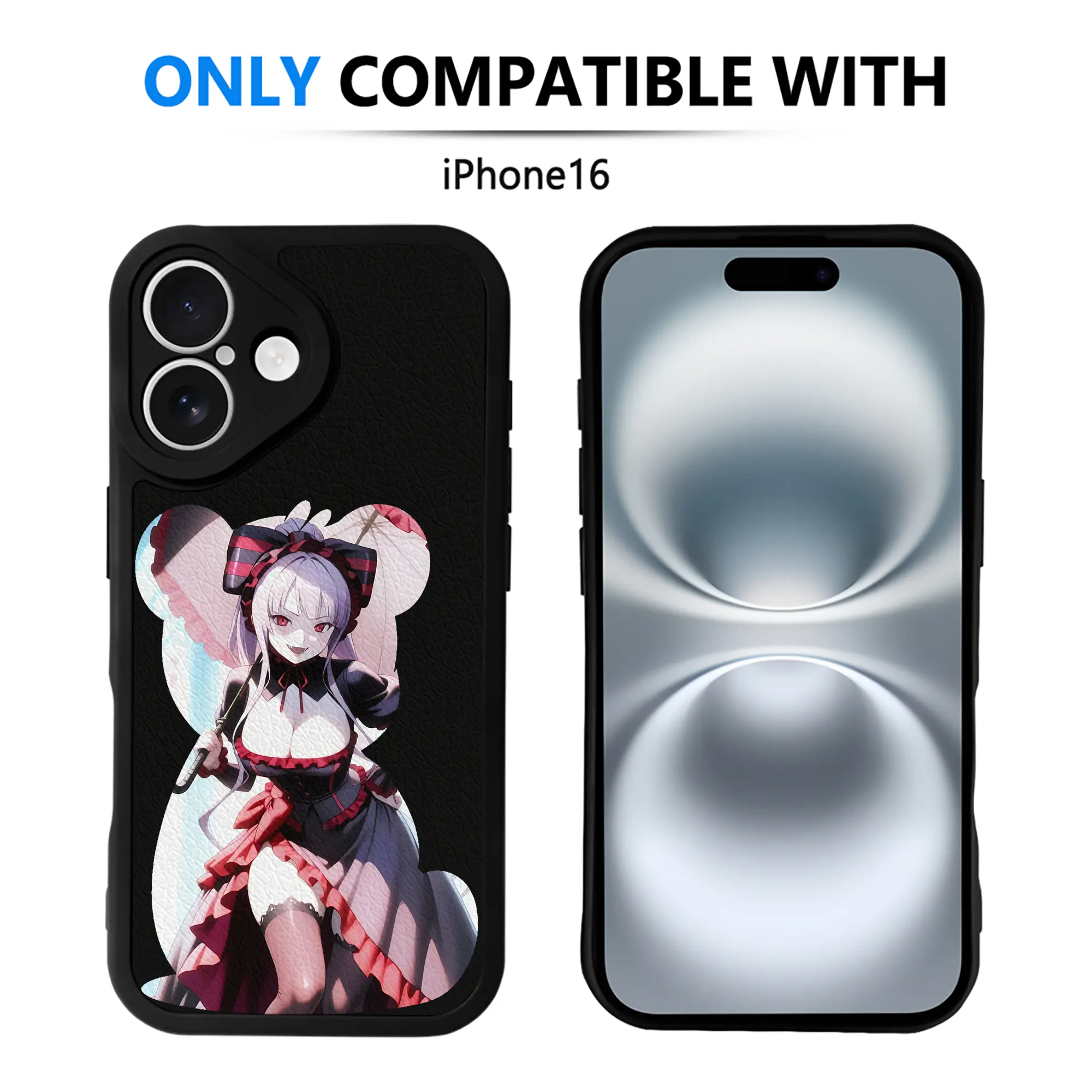 オーバーロード グッズ シャルティア・ブラッドフォールン - IPhone 16シリーズ対応 ・ シリコンスマホケース ・ レザー調 ・ 高精度フィット ・ 耐衝撃 ・ ワイヤレス充電対応 ・ 精密カット