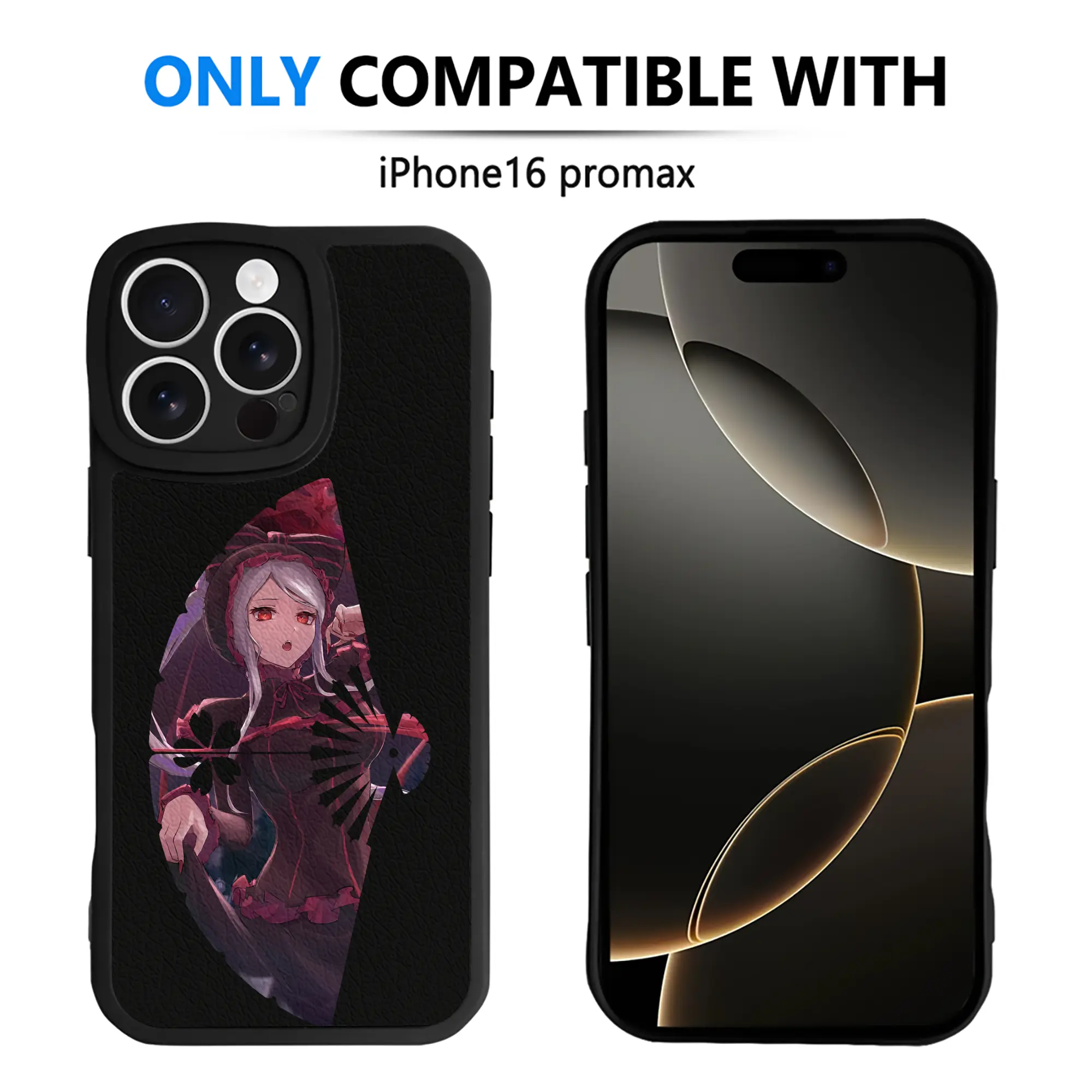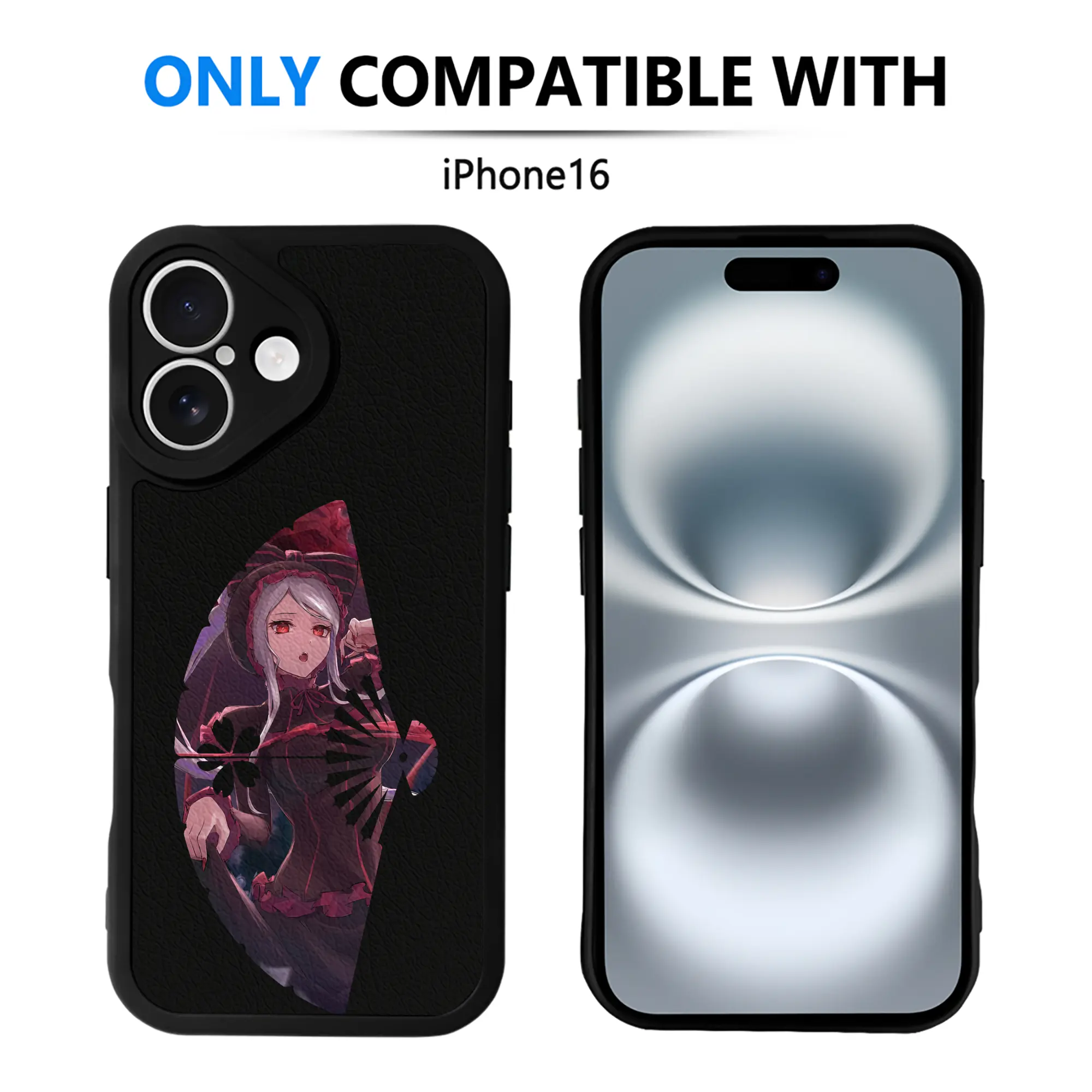 オーバーロード グッズ シャルティア・ブラッドフォールン - IPhone 16シリーズ対応 ・ シリコンスマホケース ・ レザー調 ・ 高精度フィット ・ 耐衝撃 ・ ワイヤレス充電対応 ・ 精密カット