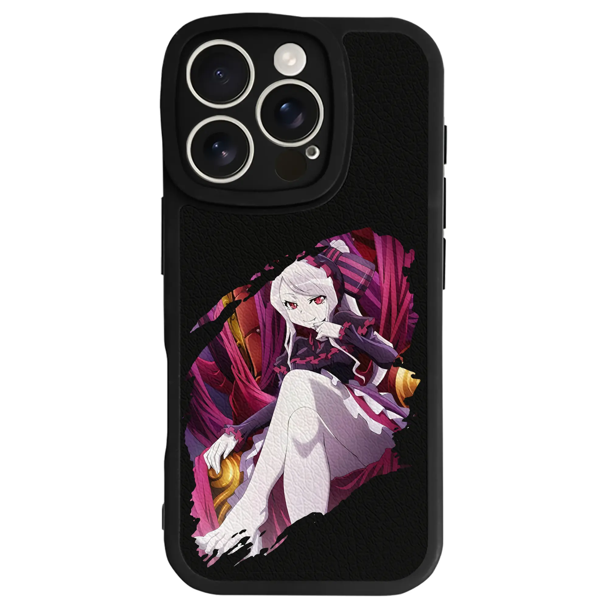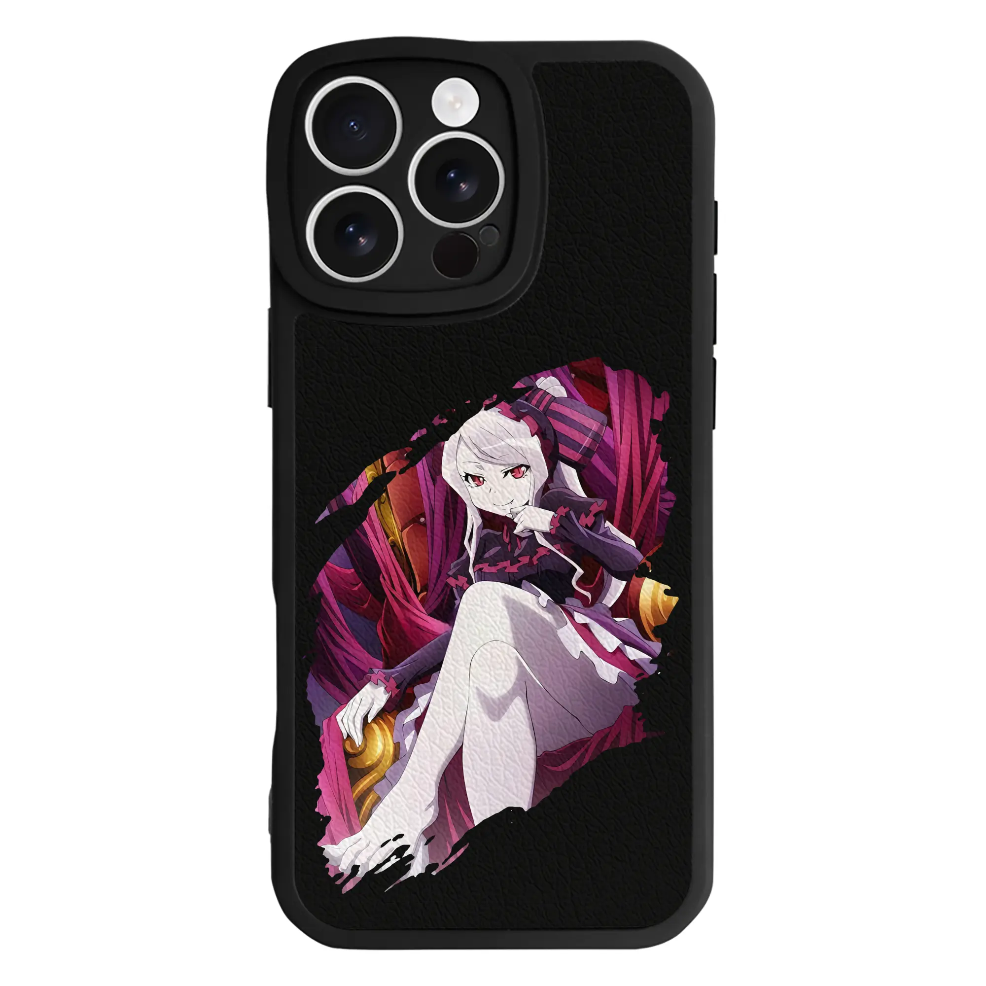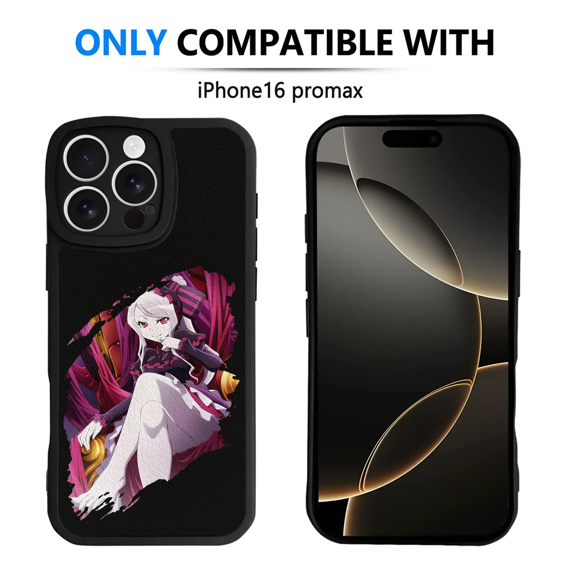 オーバーロード グッズ シャルティア・ブラッドフォールン - IPhone 16シリーズ対応 ・ シリコンスマホケース ・ レザー調 ・ 高精度フィット ・ 耐衝撃 ・ ワイヤレス充電対応 ・ 精密カット