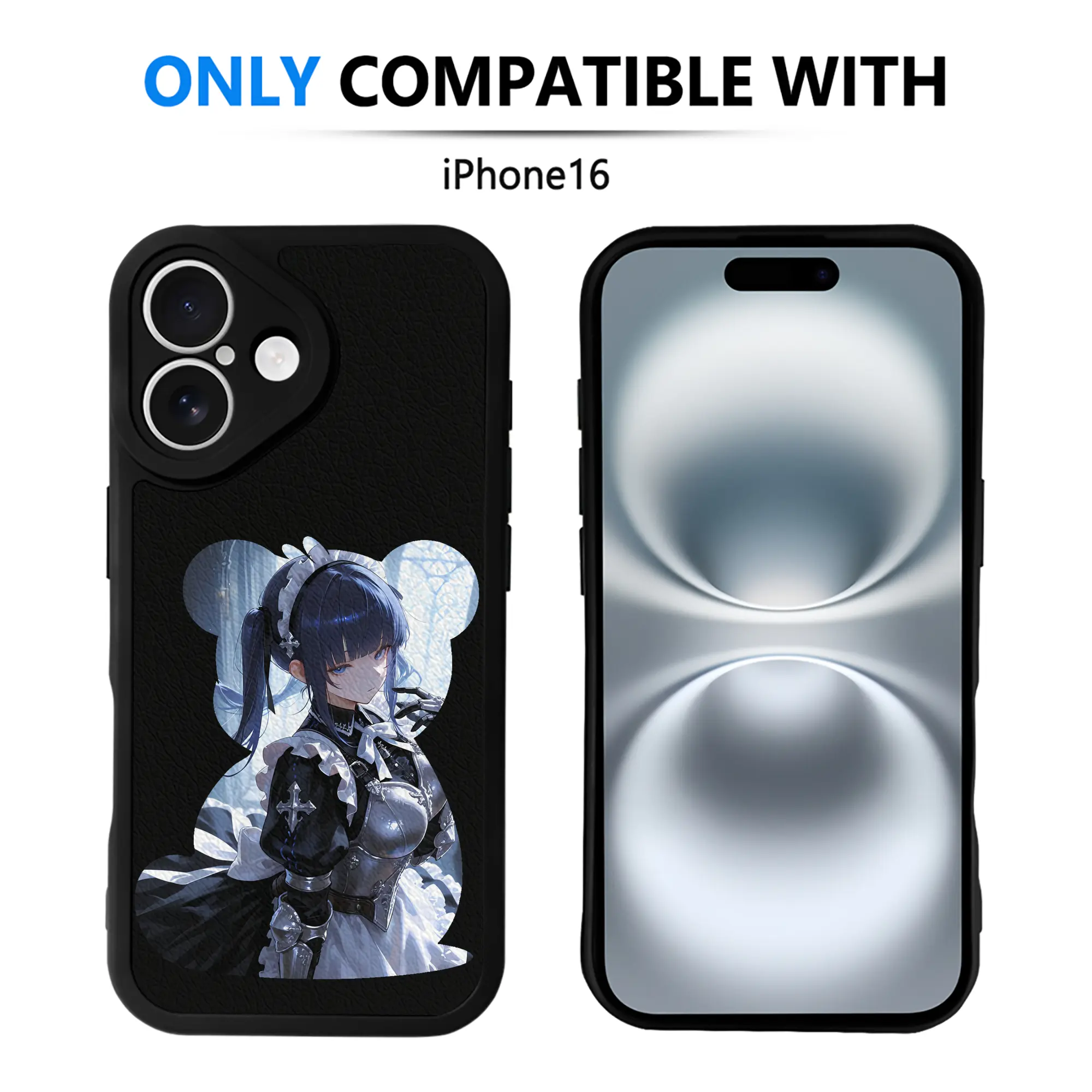 オーバーロード グッズ ナーベラル・ガンマ - IPhone 16シリーズ対応 ・ シリコンスマホケース ・ レザー調 ・ 高精度フィット ・ 耐衝撃 ・ ワイヤレス充電対応 ・ 精密カット