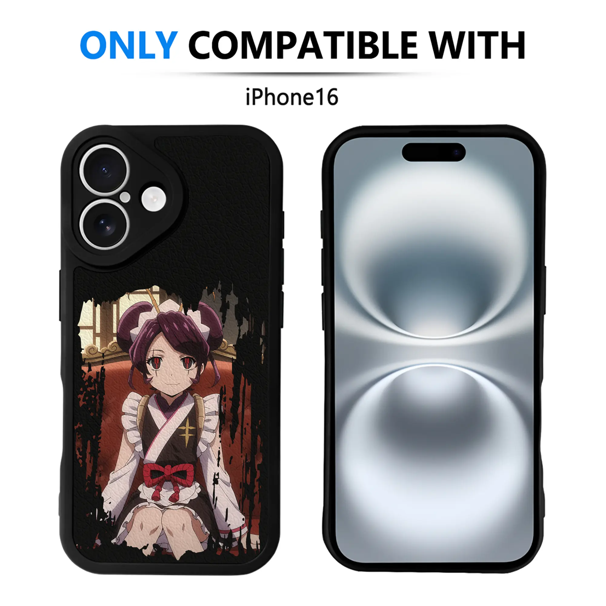 オーバーロード グッズ エントマ・ヴァシリッサ・ゼータ - IPhone 16シリーズ対応 ・ シリコンスマホケース ・ レザー調 ・ 高精度フィット ・ 耐衝撃 ・ ワイヤレス充電対応 ・ 精密カット