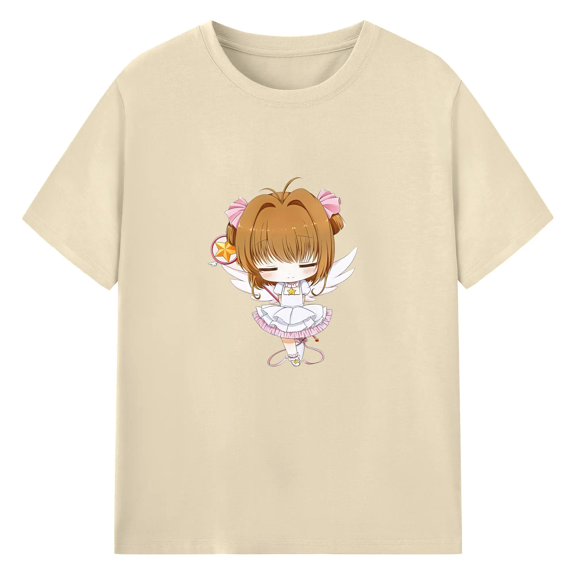 カードキャプターさくら グッズ,木之本桜 - 綿100% ヴィンテージ風 半袖Tシャツ ・ フロントプリント ・ 柔らか肌触り ・ 通気性 快適 ・ スポーツ カジュアル 外出用