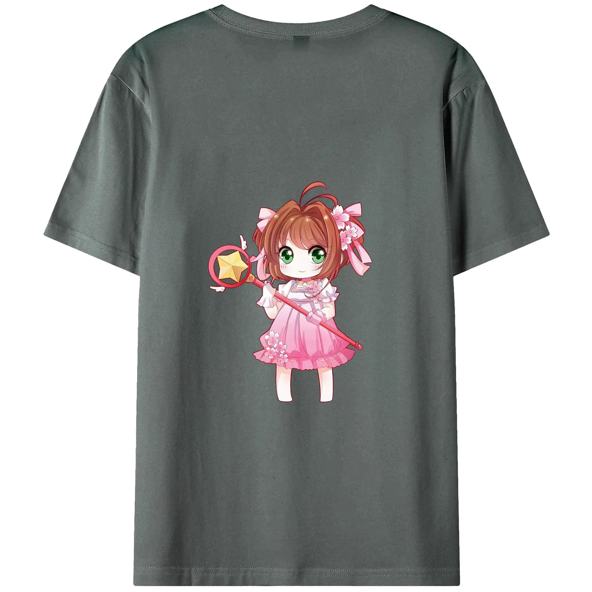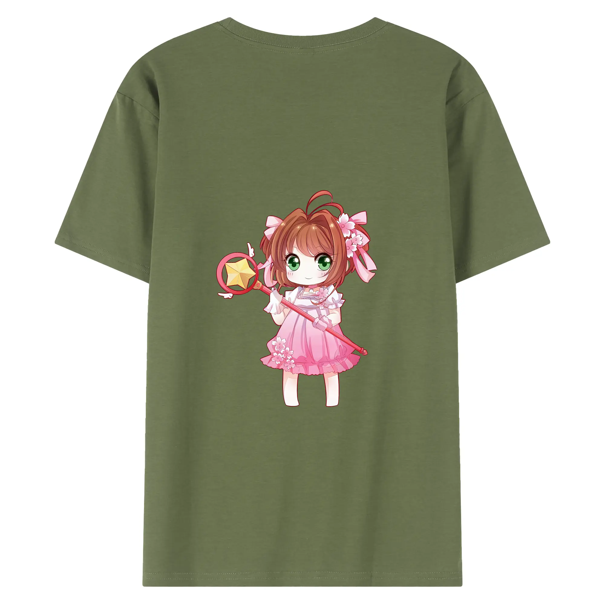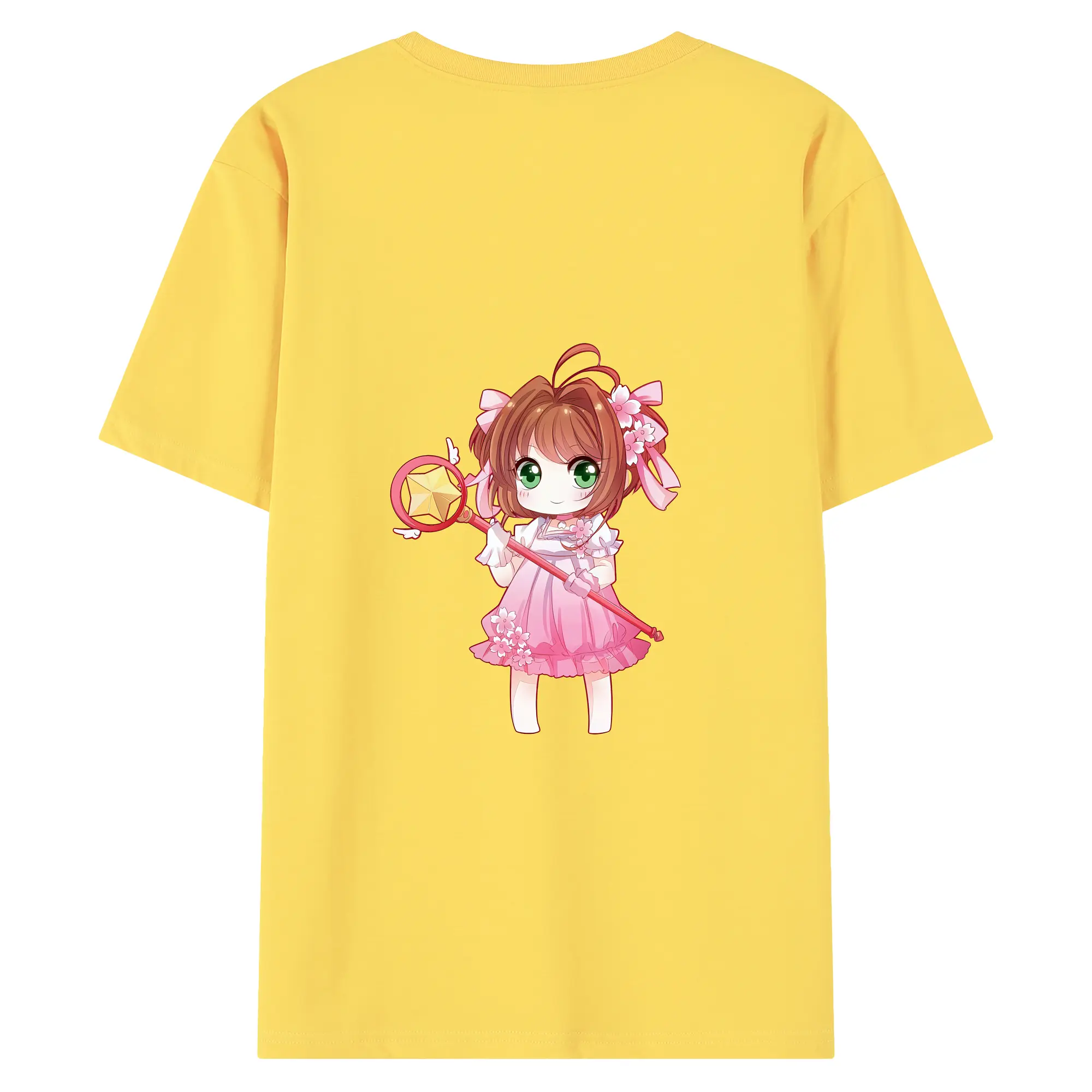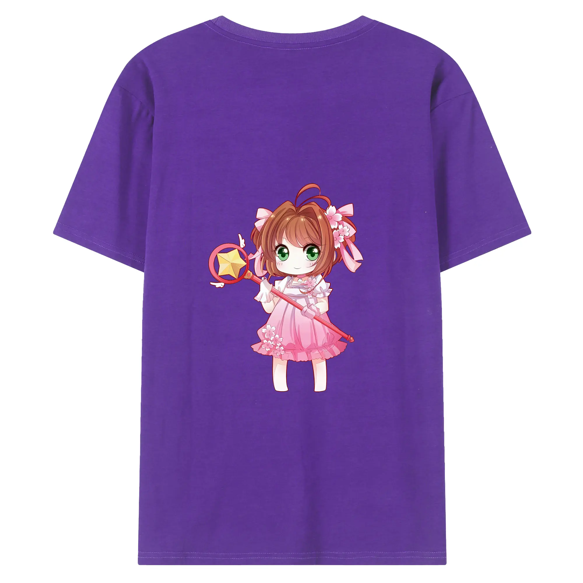 カードキャプターさくら グッズ,木之本桜 - 綿100% ヴィンテージ風 半袖Tシャツ ・ 背面プリント ・ 柔らか肌触り ・ 通気性 快適 ・ スポーツ カジュアル 外出用