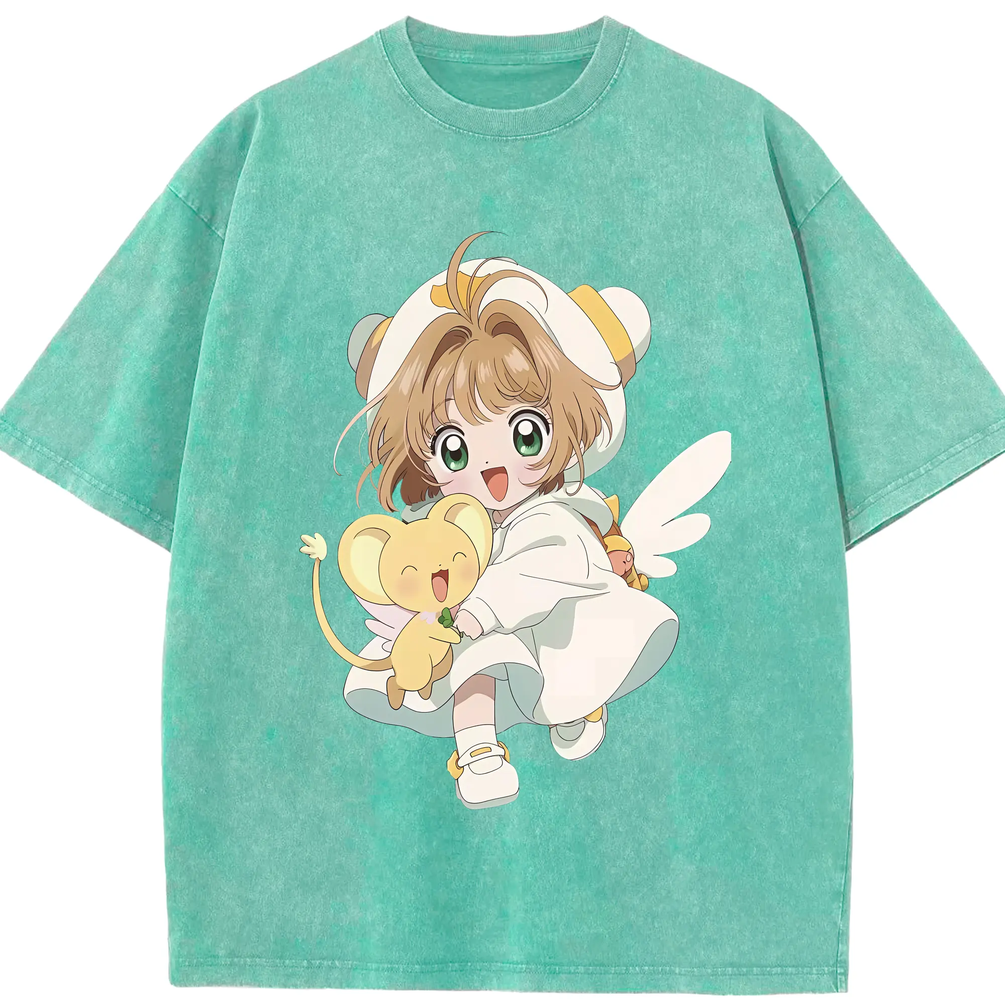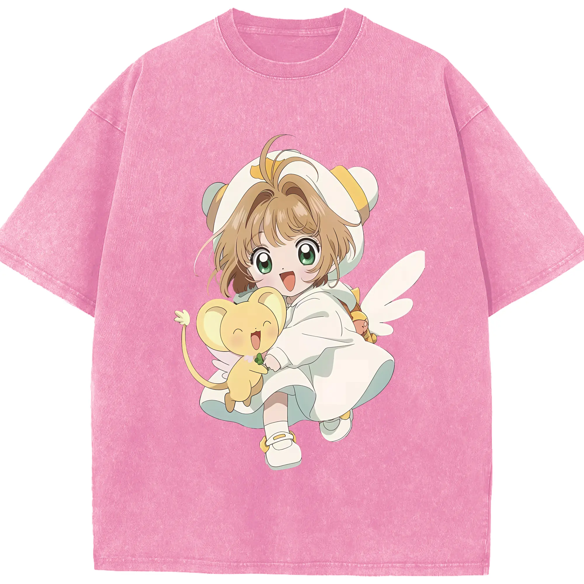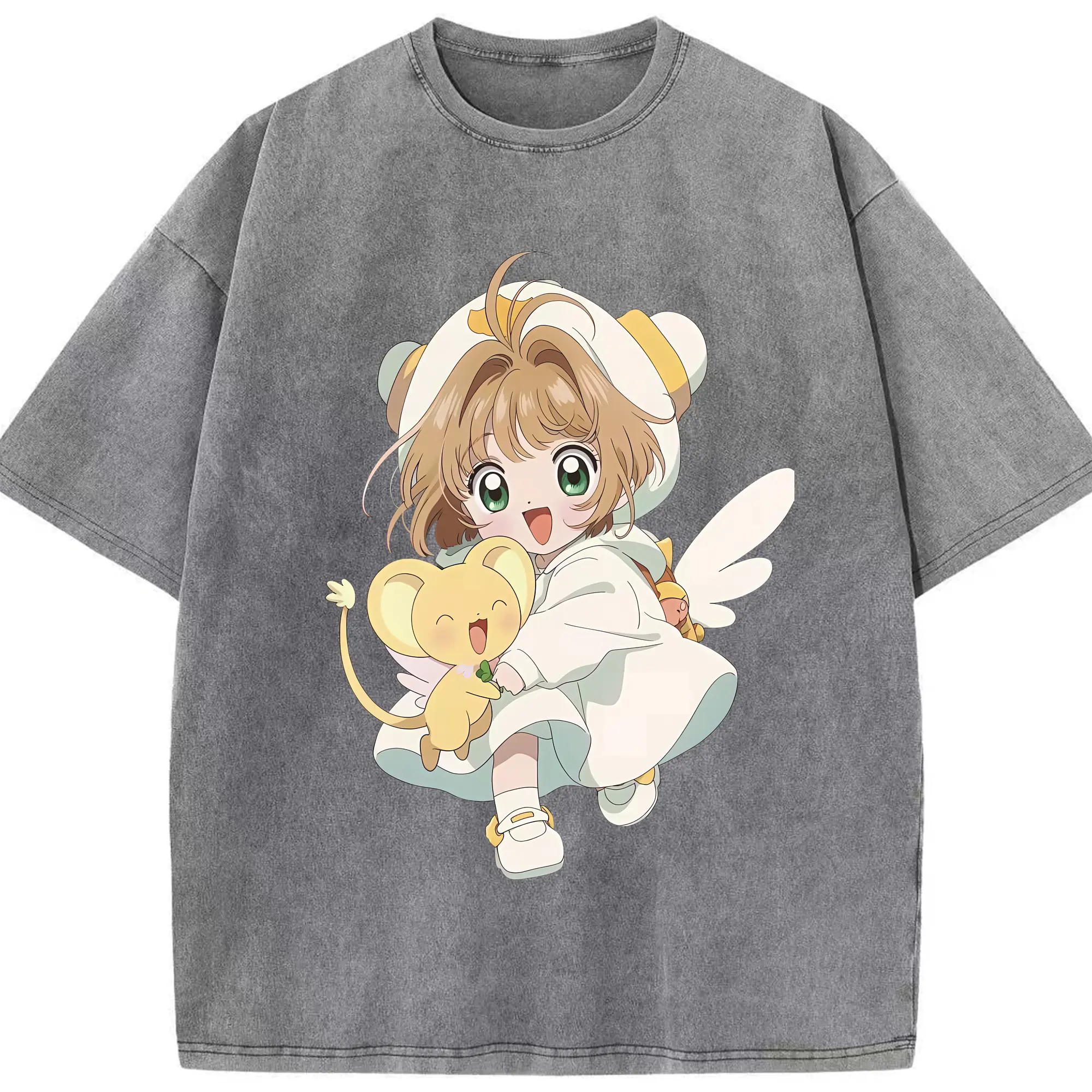 カードキャプターさくら グッズ,木之本桜 - 綿100% ヴィンテージ風 半袖Tシャツ ・ 背面プリント ・ 柔らか肌触り ・ 通気性 快適 ・ スポーツ カジュアル 外出用