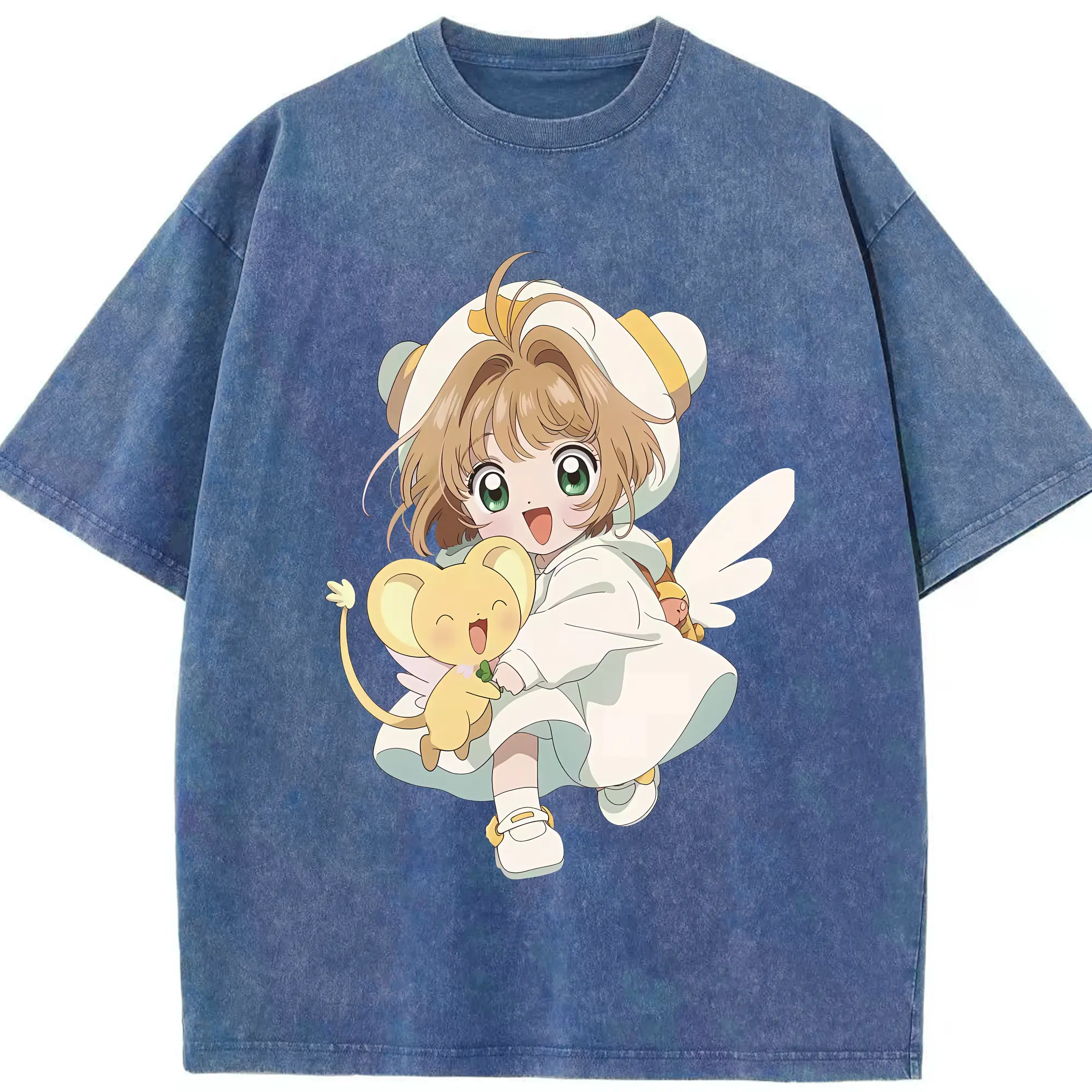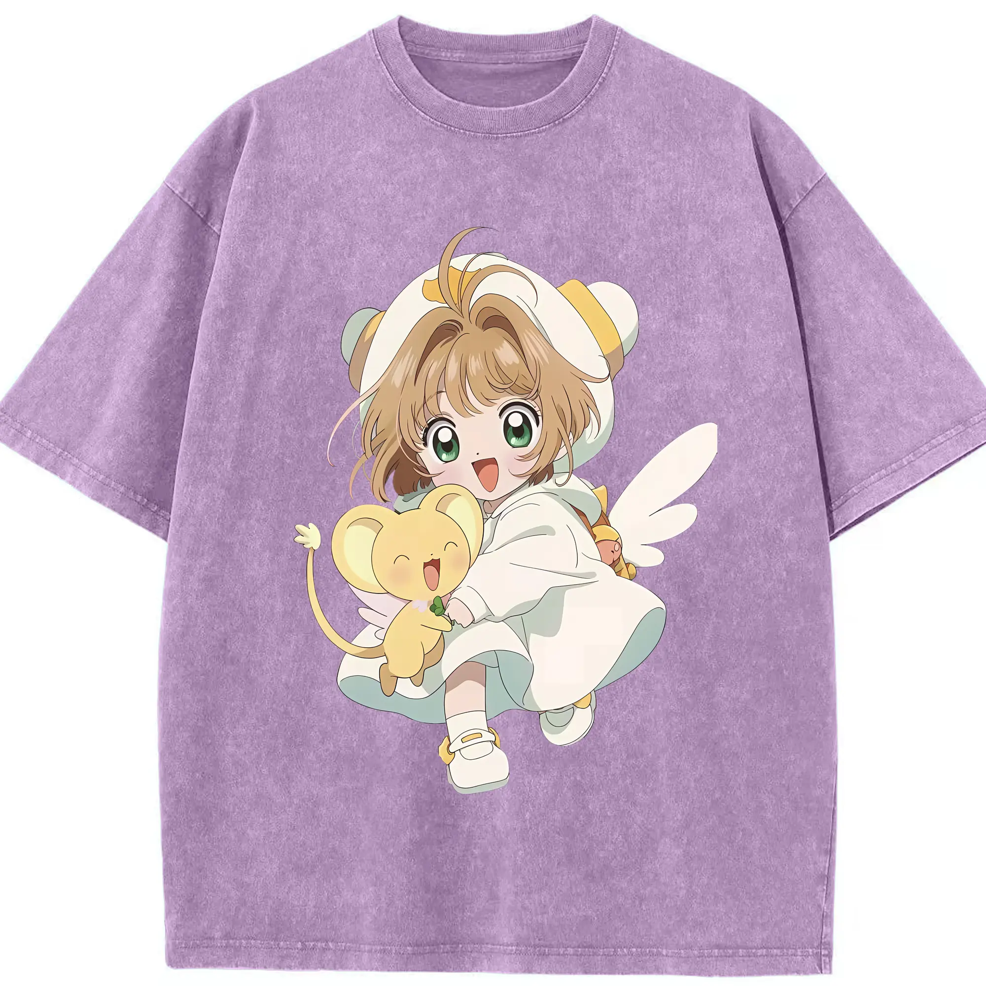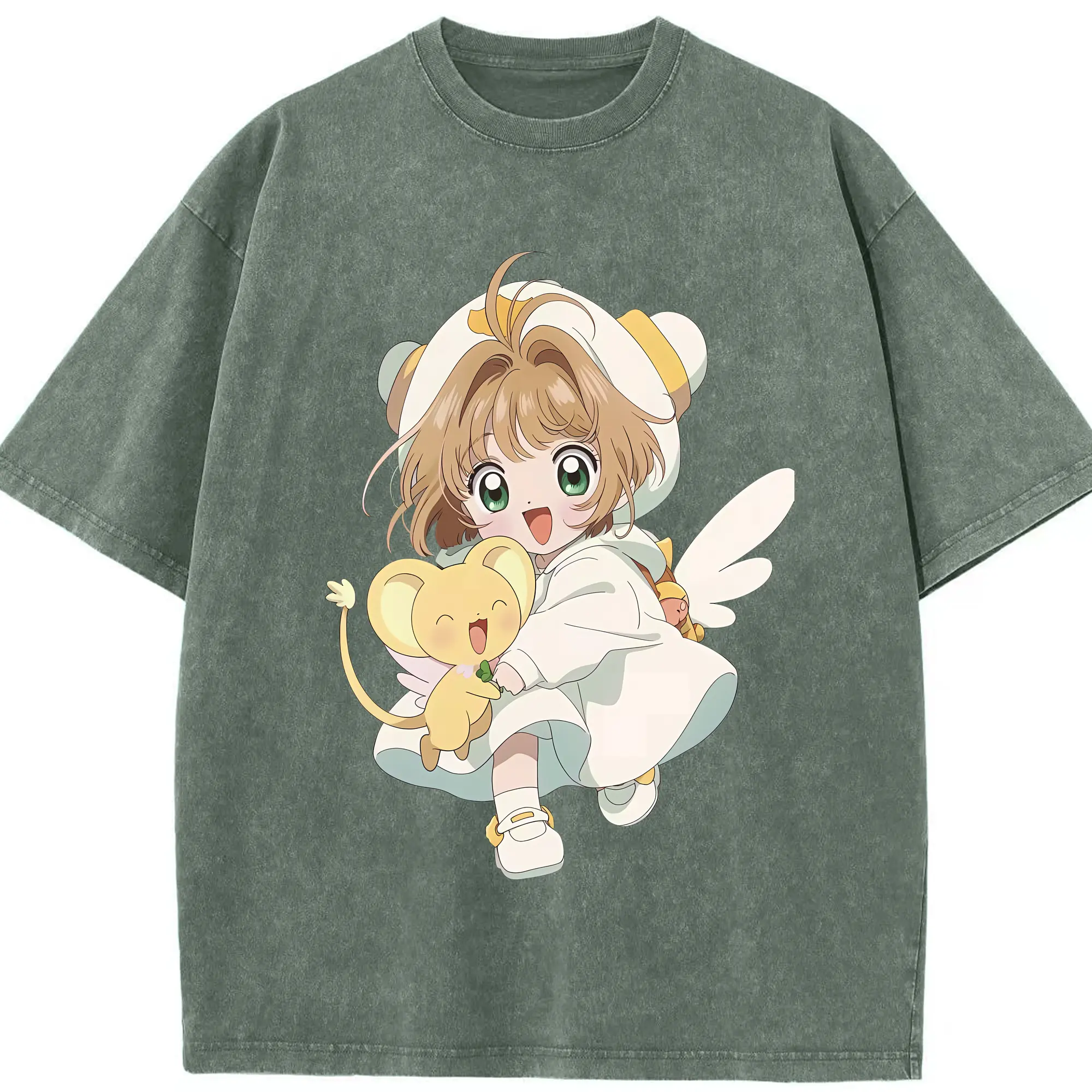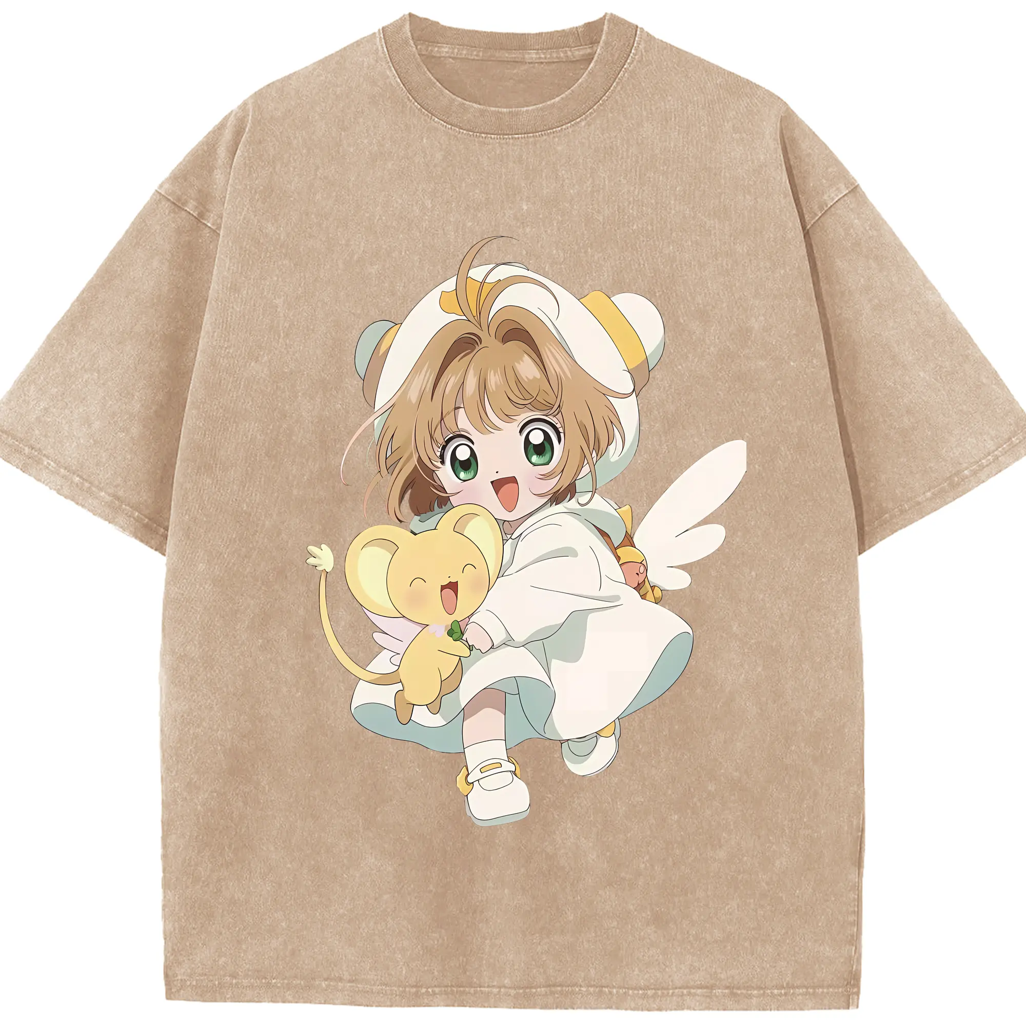 カードキャプターさくら グッズ,木之本桜 - 綿100% ヴィンテージ風 半袖Tシャツ ・ 背面プリント ・ 柔らか肌触り ・ 通気性 快適 ・ スポーツ カジュアル 外出用