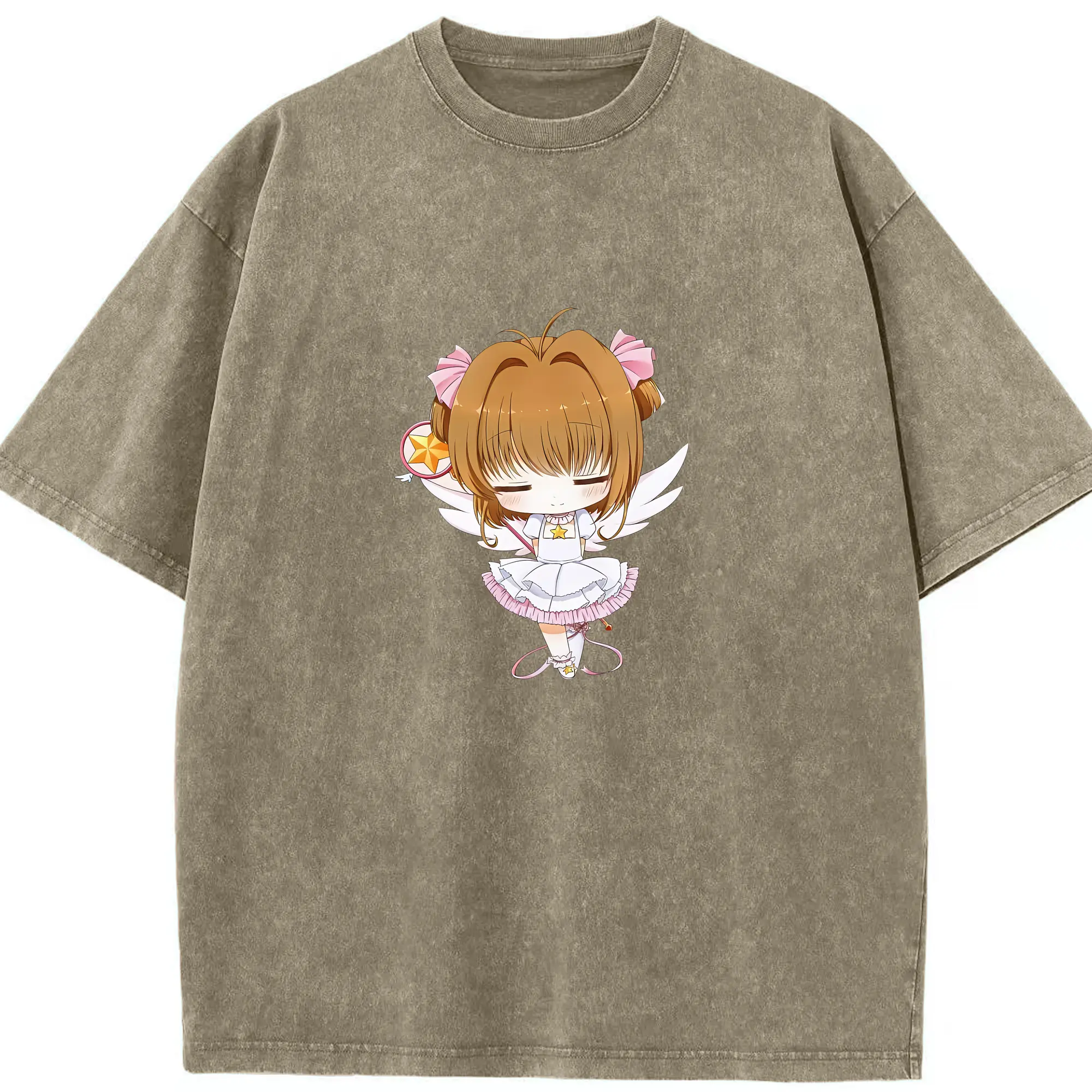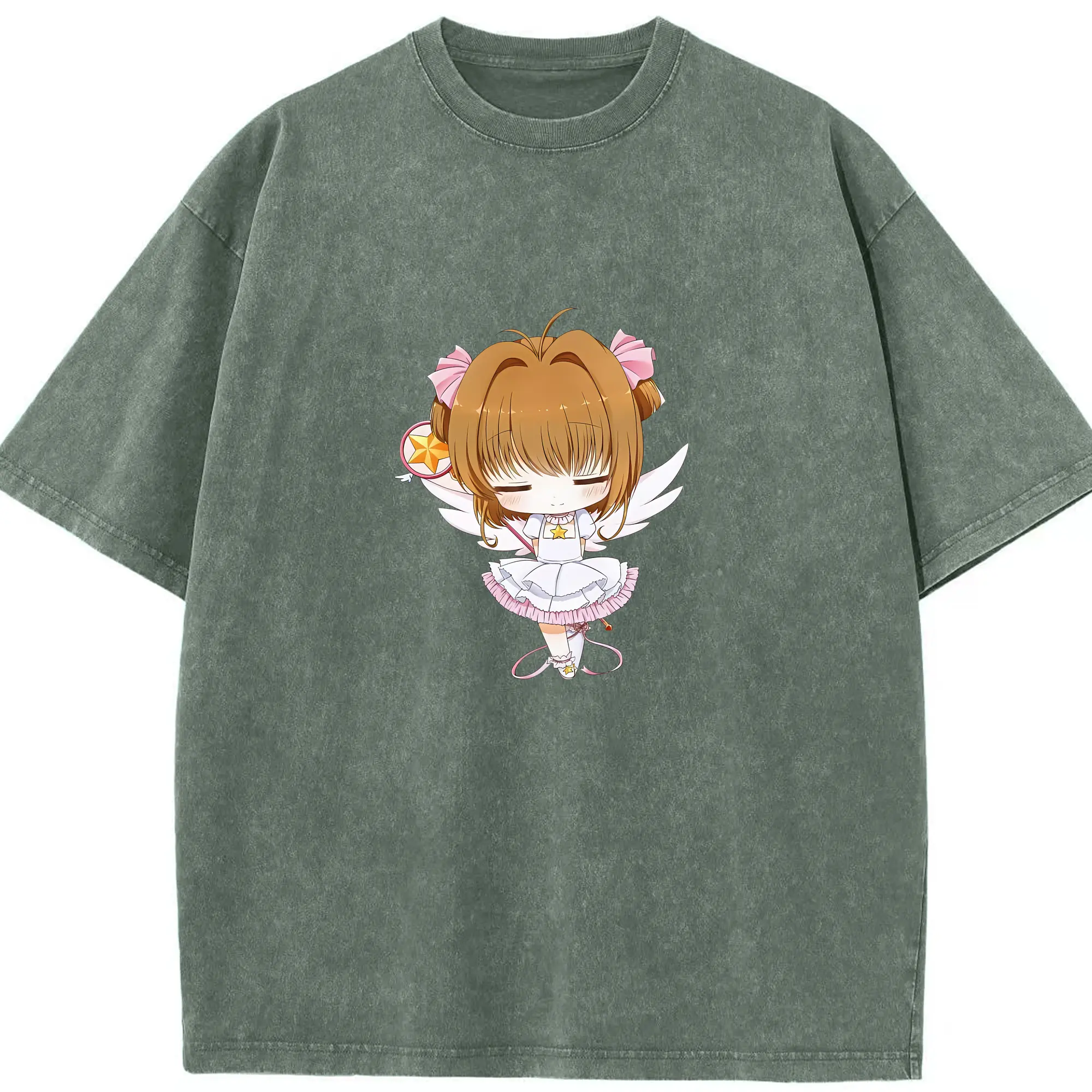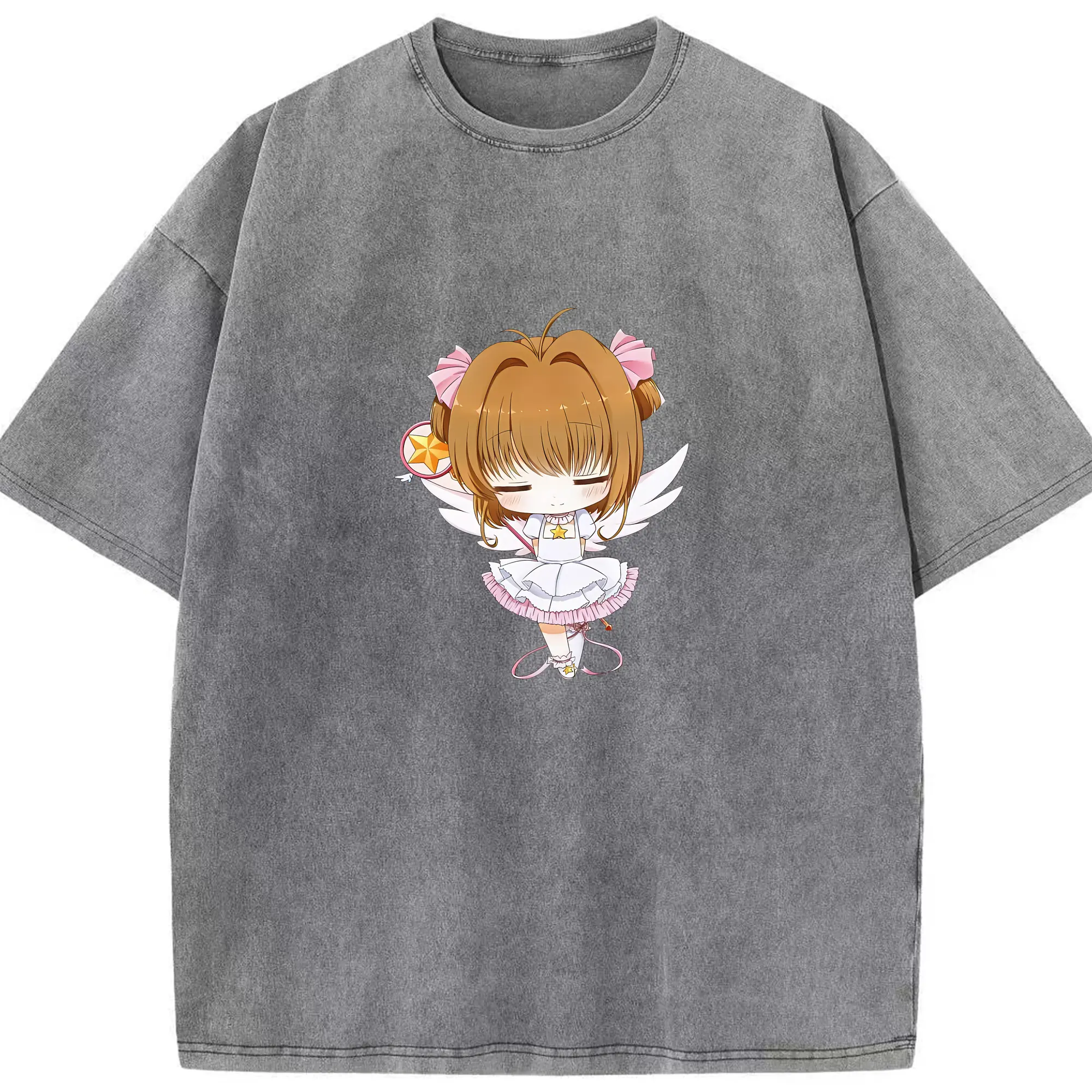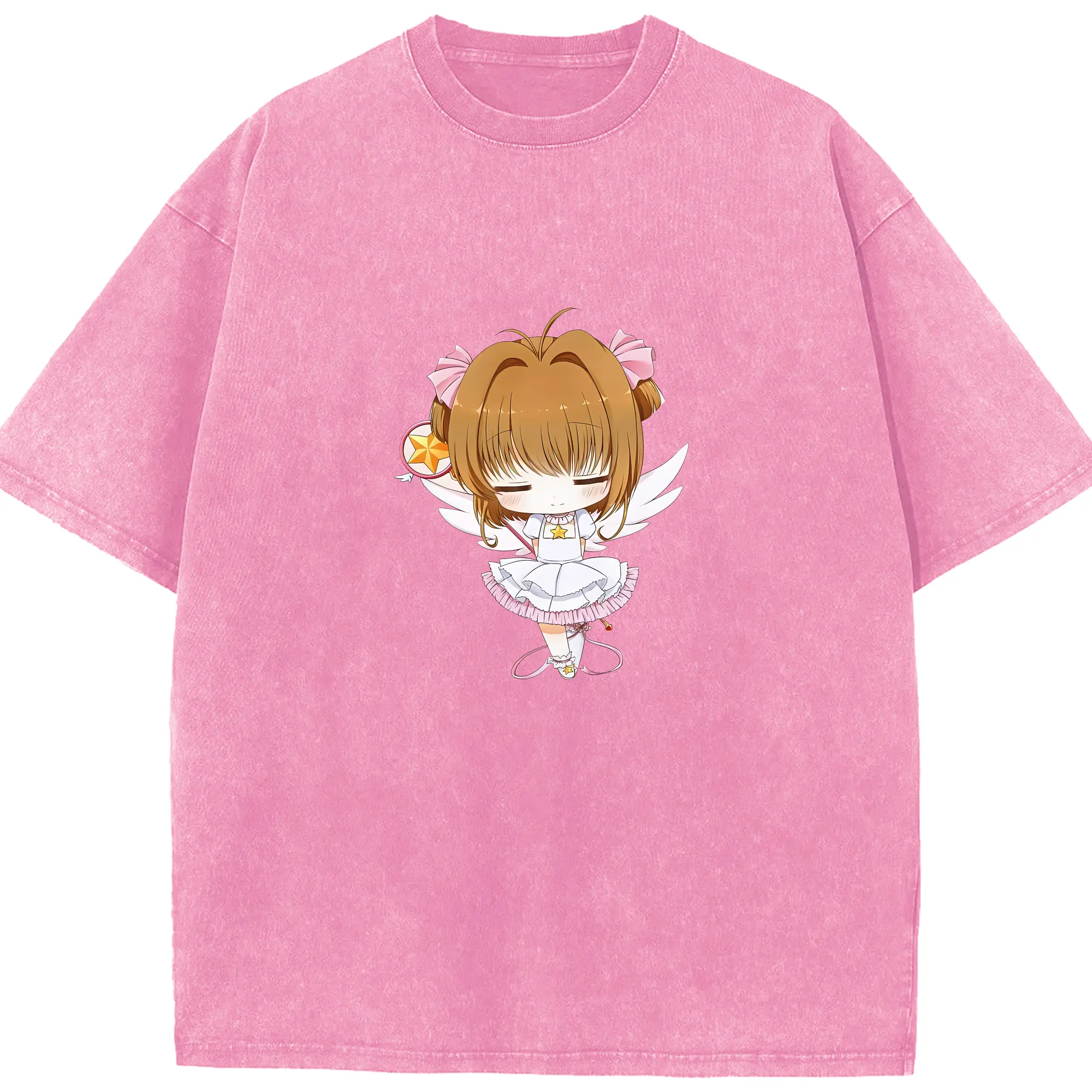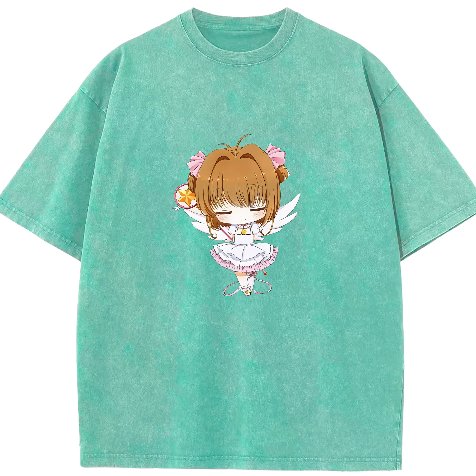 カードキャプターさくら グッズ,木之本桜 - 綿100% ヴィンテージ風 半袖Tシャツ ・ 背面プリント ・ 柔らか肌触り ・ 通気性 快適 ・ スポーツ カジュアル 外出用