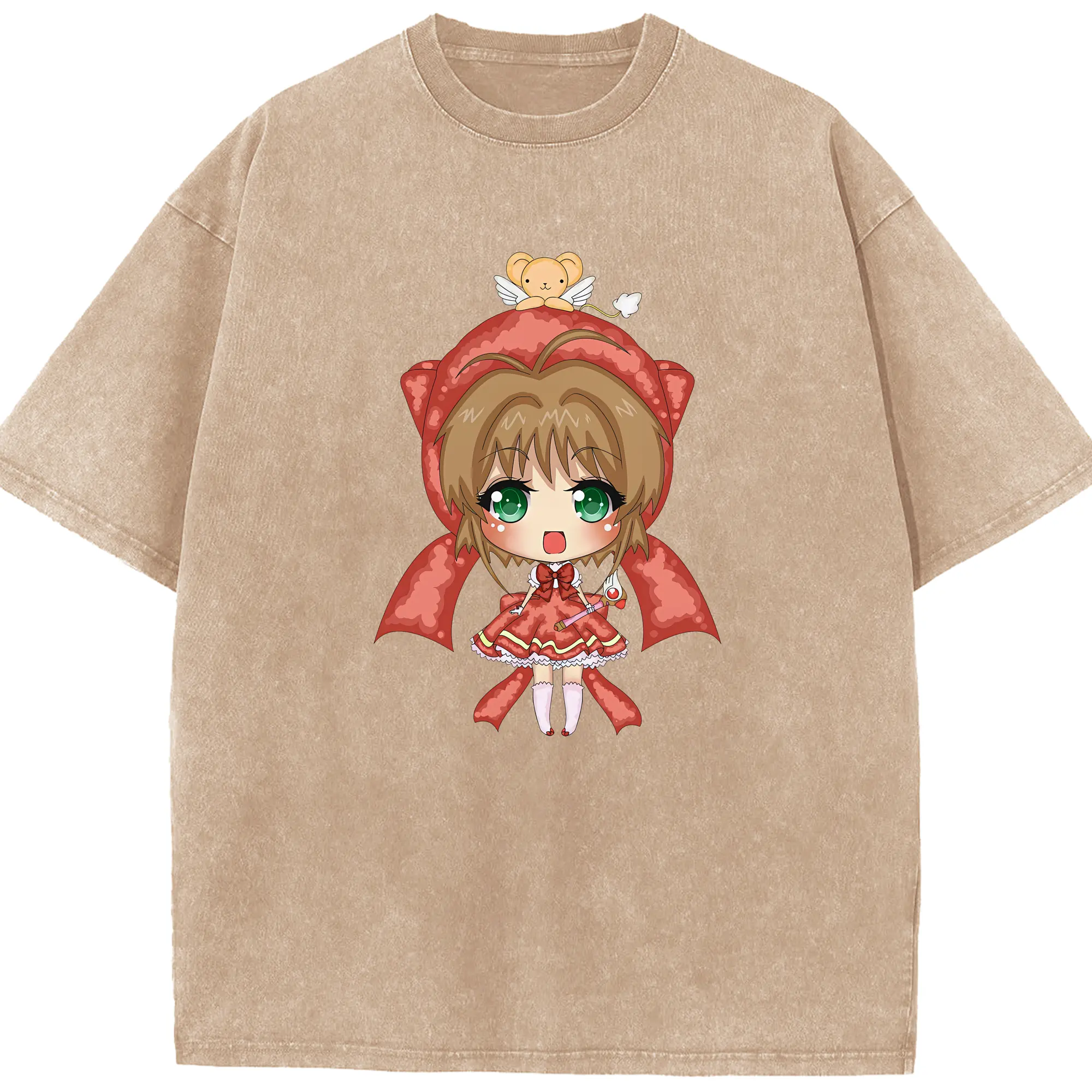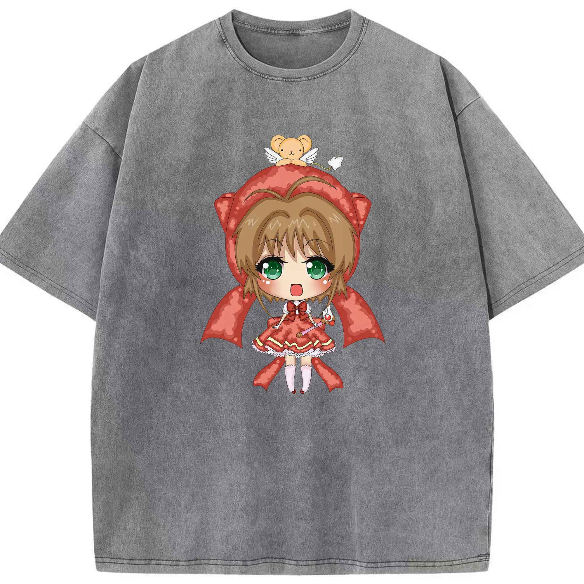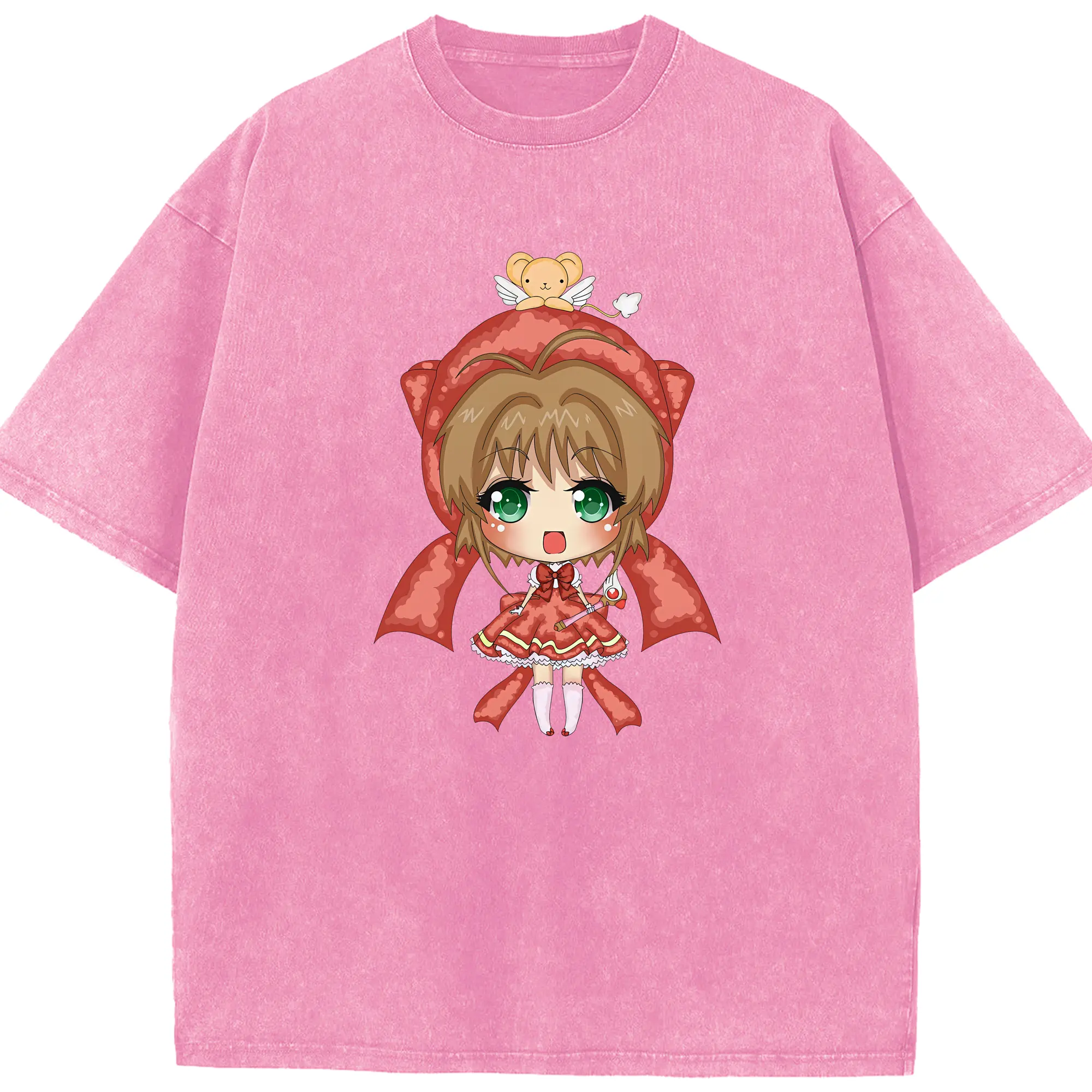 カードキャプターさくら グッズ,木之本桜 - 綿100% ヴィンテージ風 半袖Tシャツ ・ 背面プリント ・ 柔らか肌触り ・ 通気性 快適 ・ スポーツ カジュアル 外出用