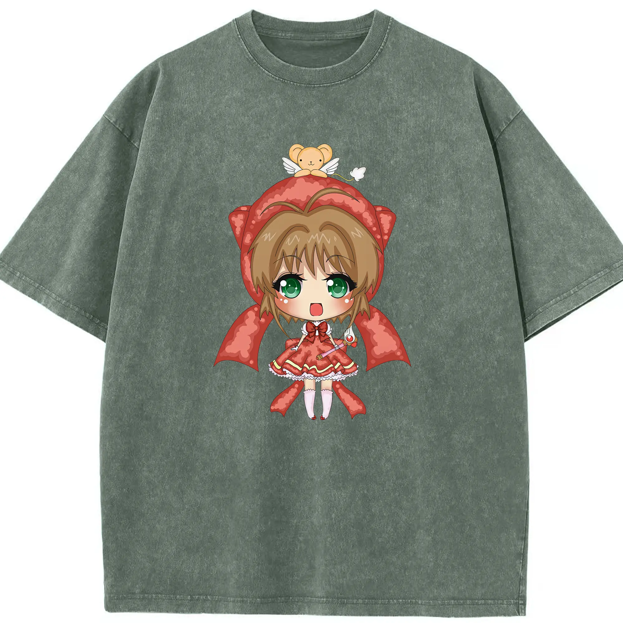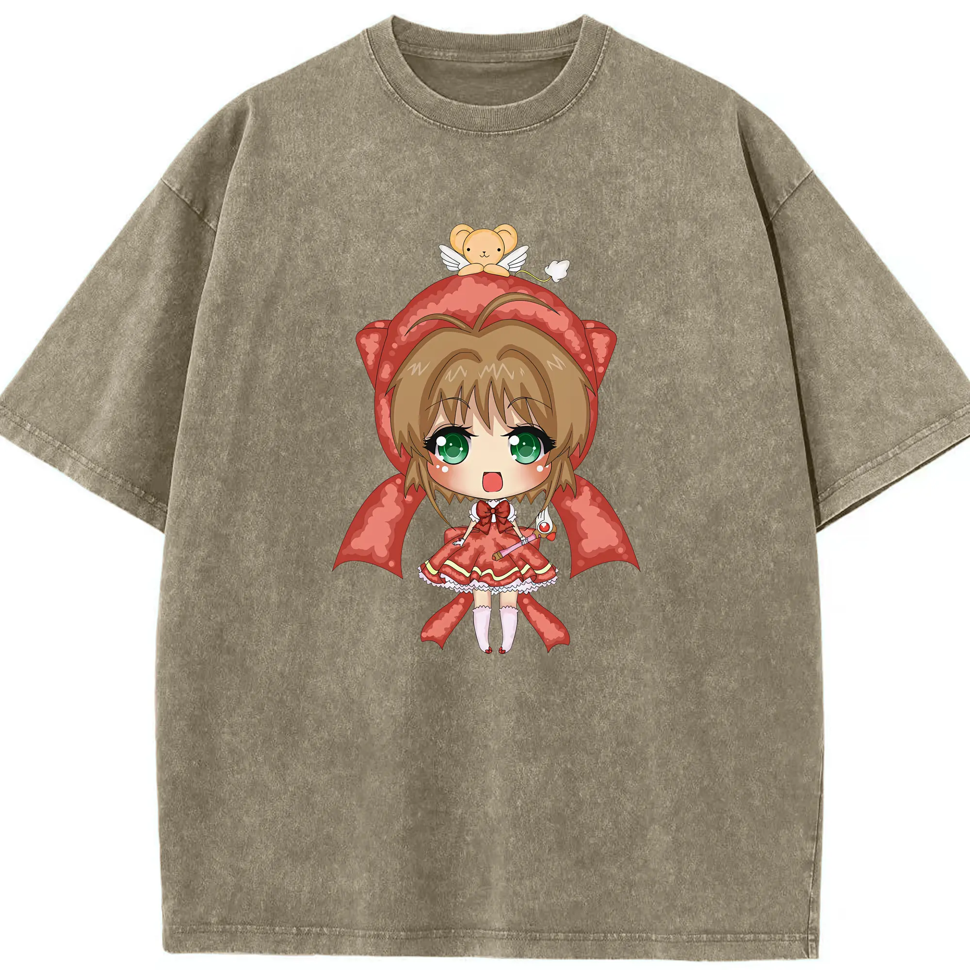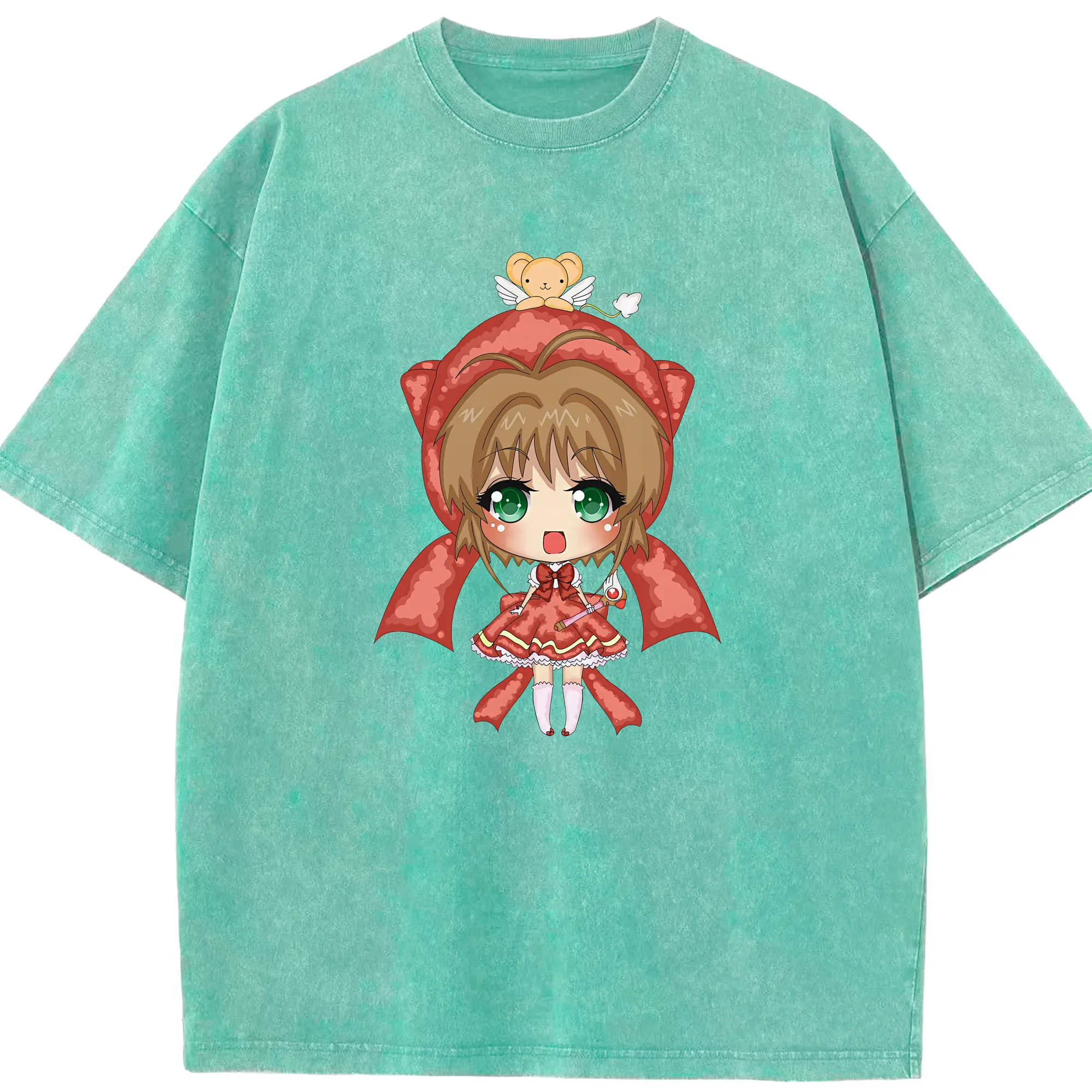 カードキャプターさくら グッズ,木之本桜 - 綿100% ヴィンテージ風 半袖Tシャツ ・ 背面プリント ・ 柔らか肌触り ・ 通気性 快適 ・ スポーツ カジュアル 外出用