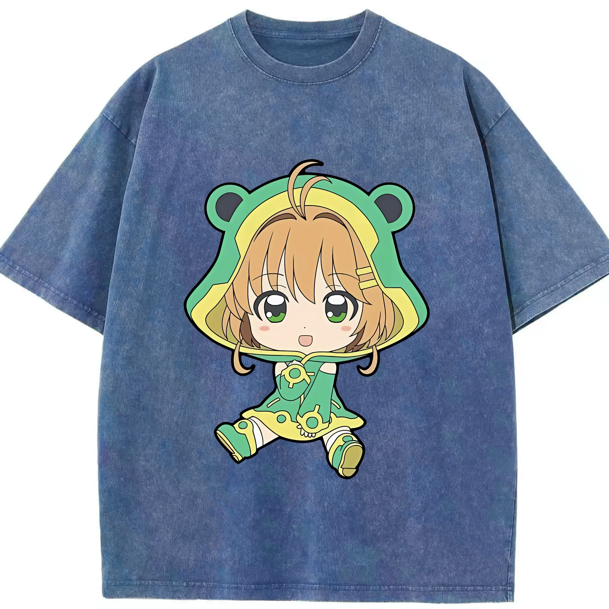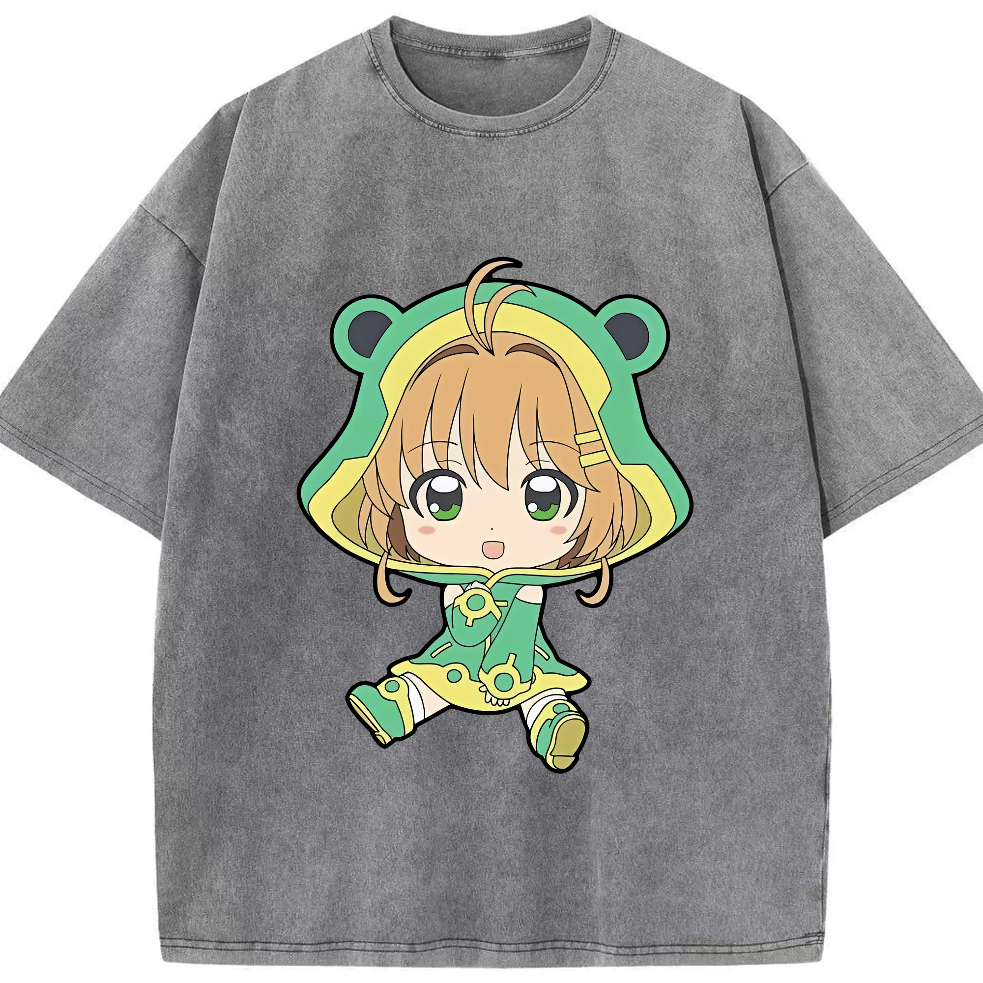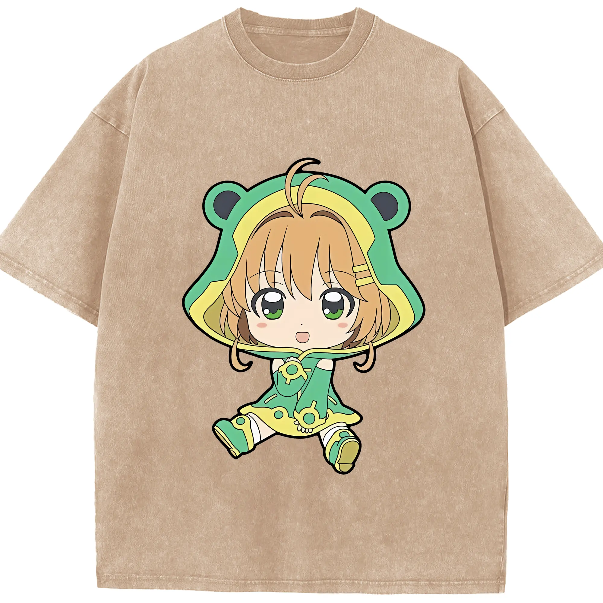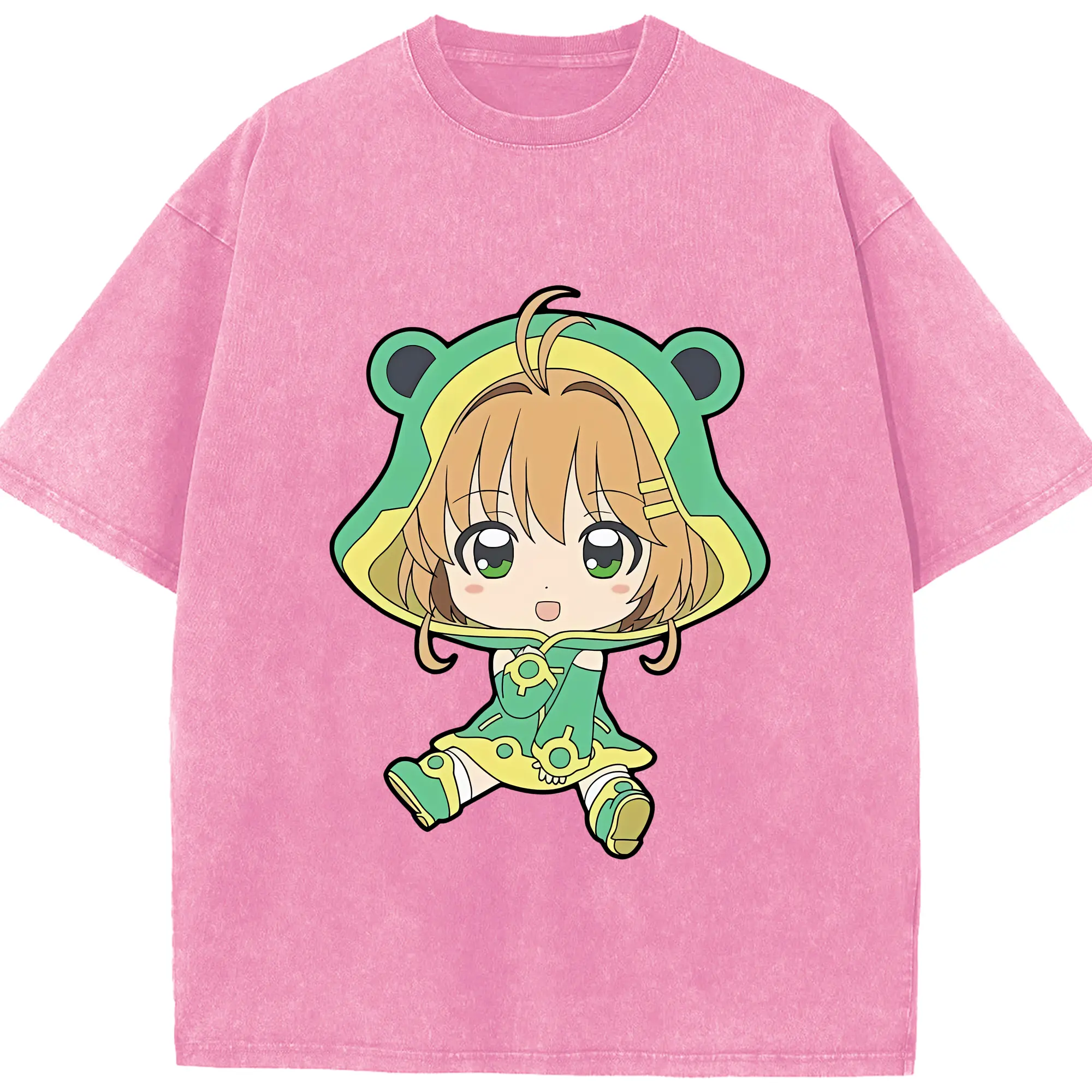 カードキャプターさくら グッズ,木之本桜 - 綿100% ヴィンテージ風 半袖Tシャツ ・ 背面プリント ・ 柔らか肌触り ・ 通気性 快適 ・ スポーツ カジュアル 外出用