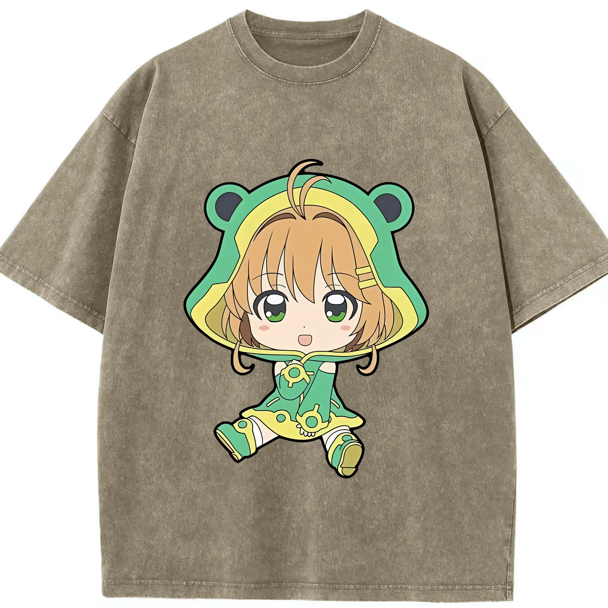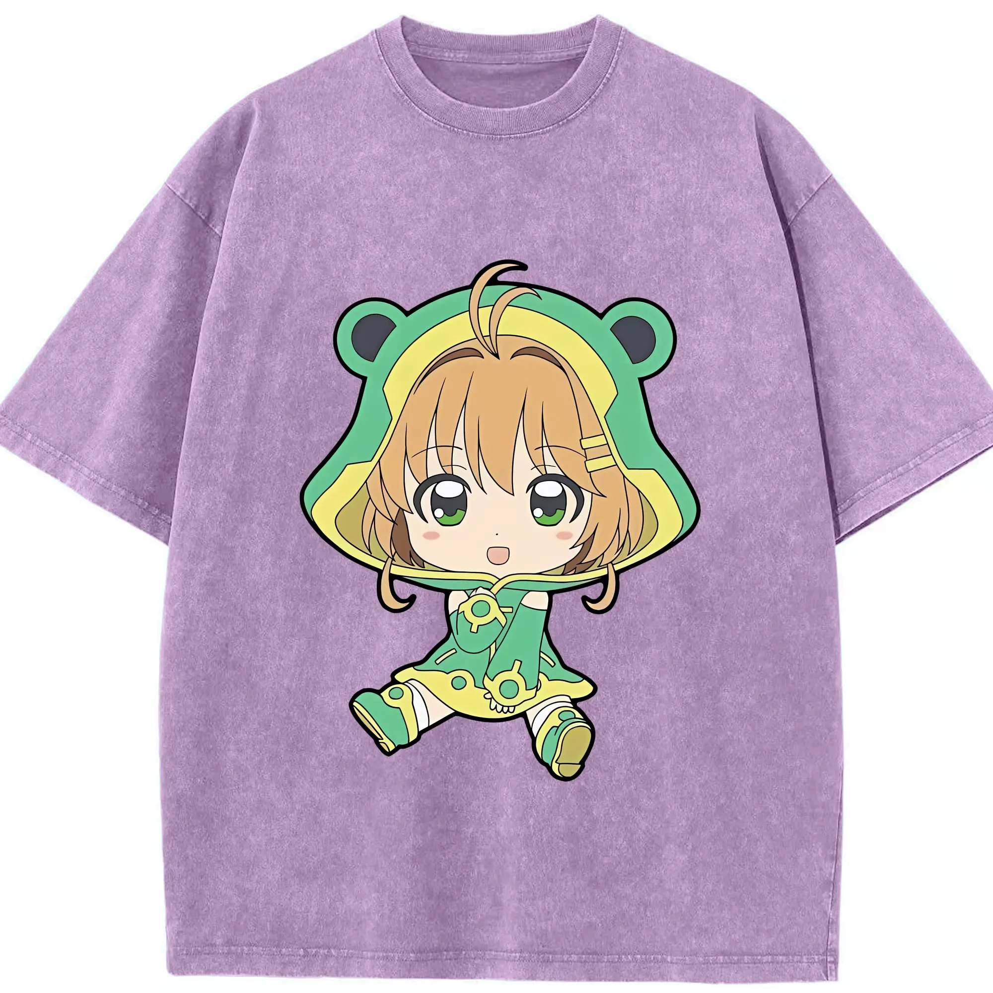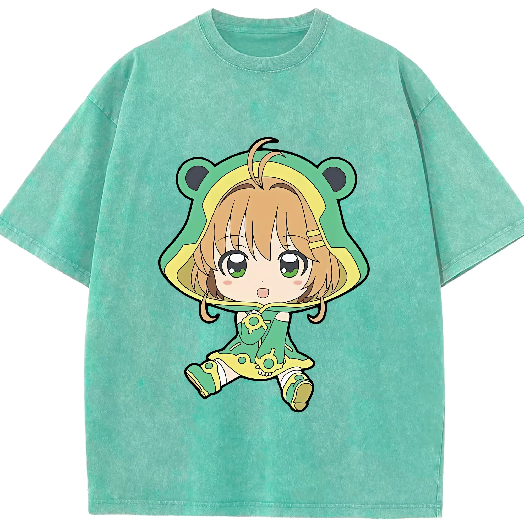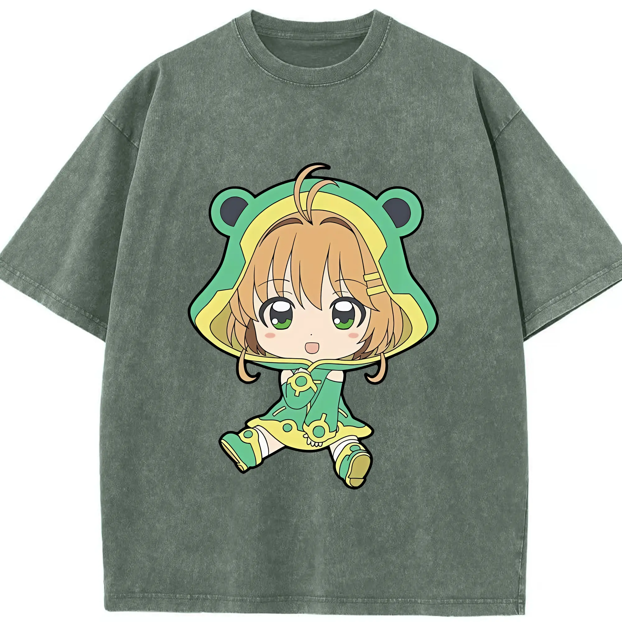 カードキャプターさくら グッズ,木之本桜 - 綿100% ヴィンテージ風 半袖Tシャツ ・ 背面プリント ・ 柔らか肌触り ・ 通気性 快適 ・ スポーツ カジュアル 外出用