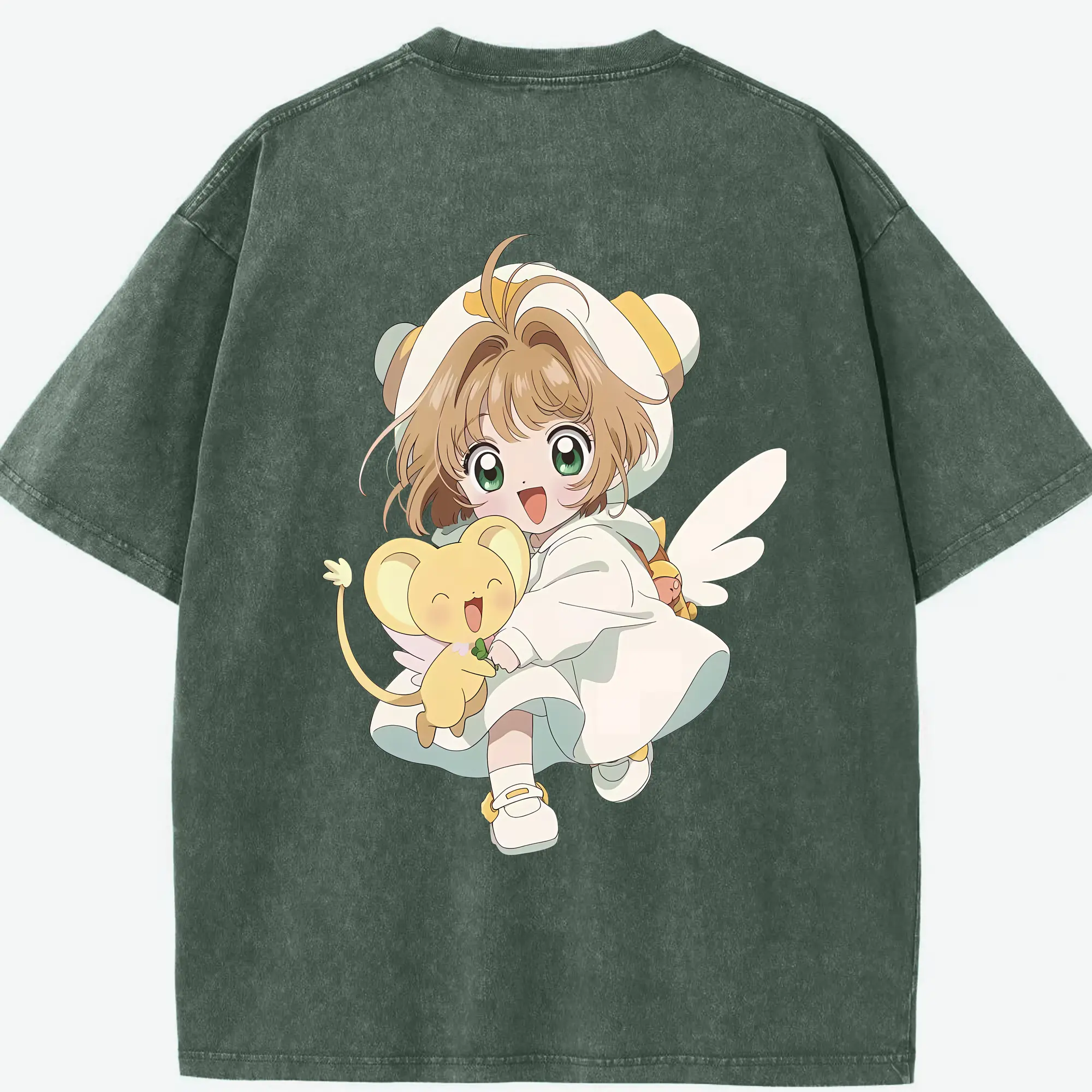 カードキャプターさくら グッズ,木之本桜 - 綿100% ヴィンテージ風 半袖Tシャツ ・ フロントプリント ・ 柔らか肌触り ・ 通気性 快適 ・ スポーツ カジュアル 外出用