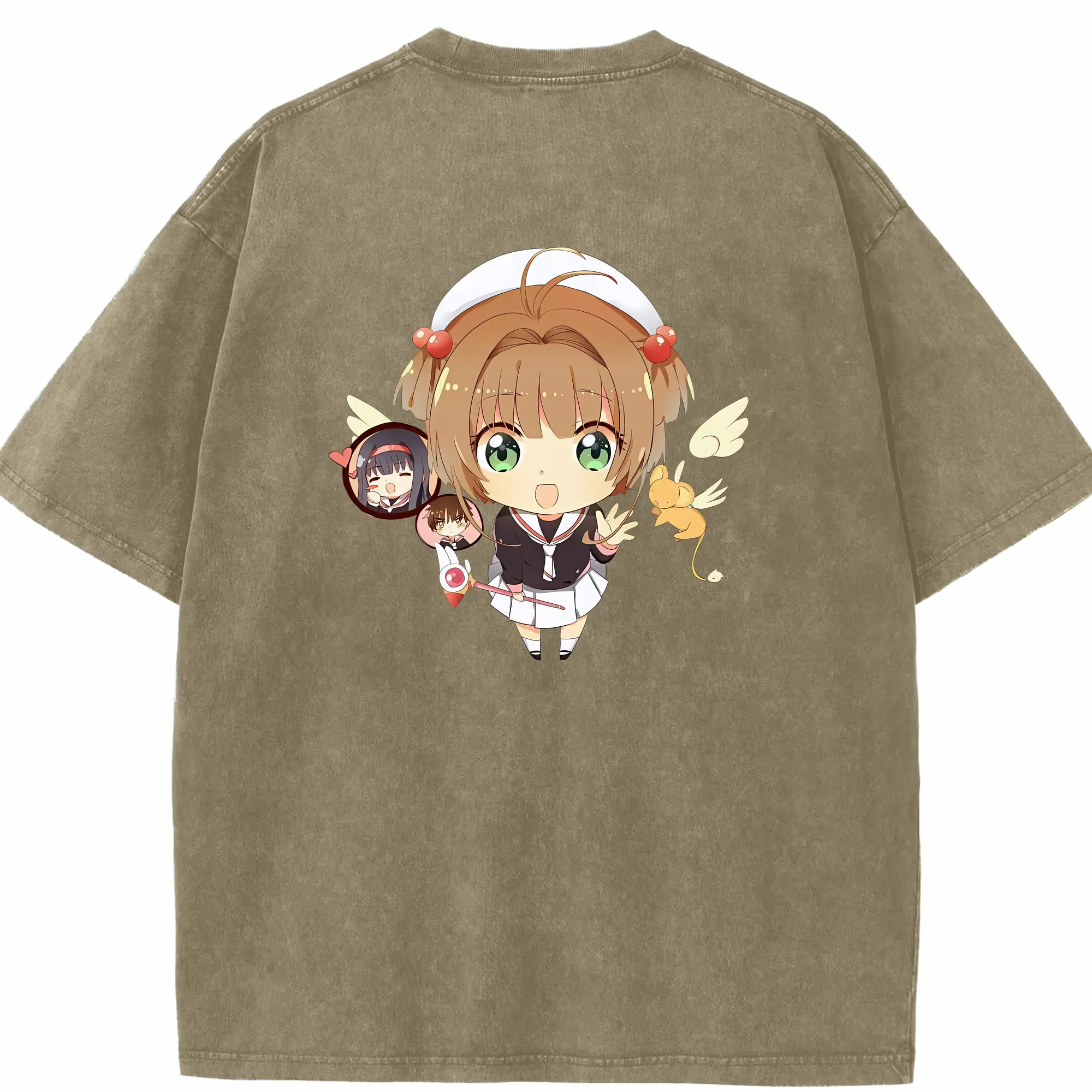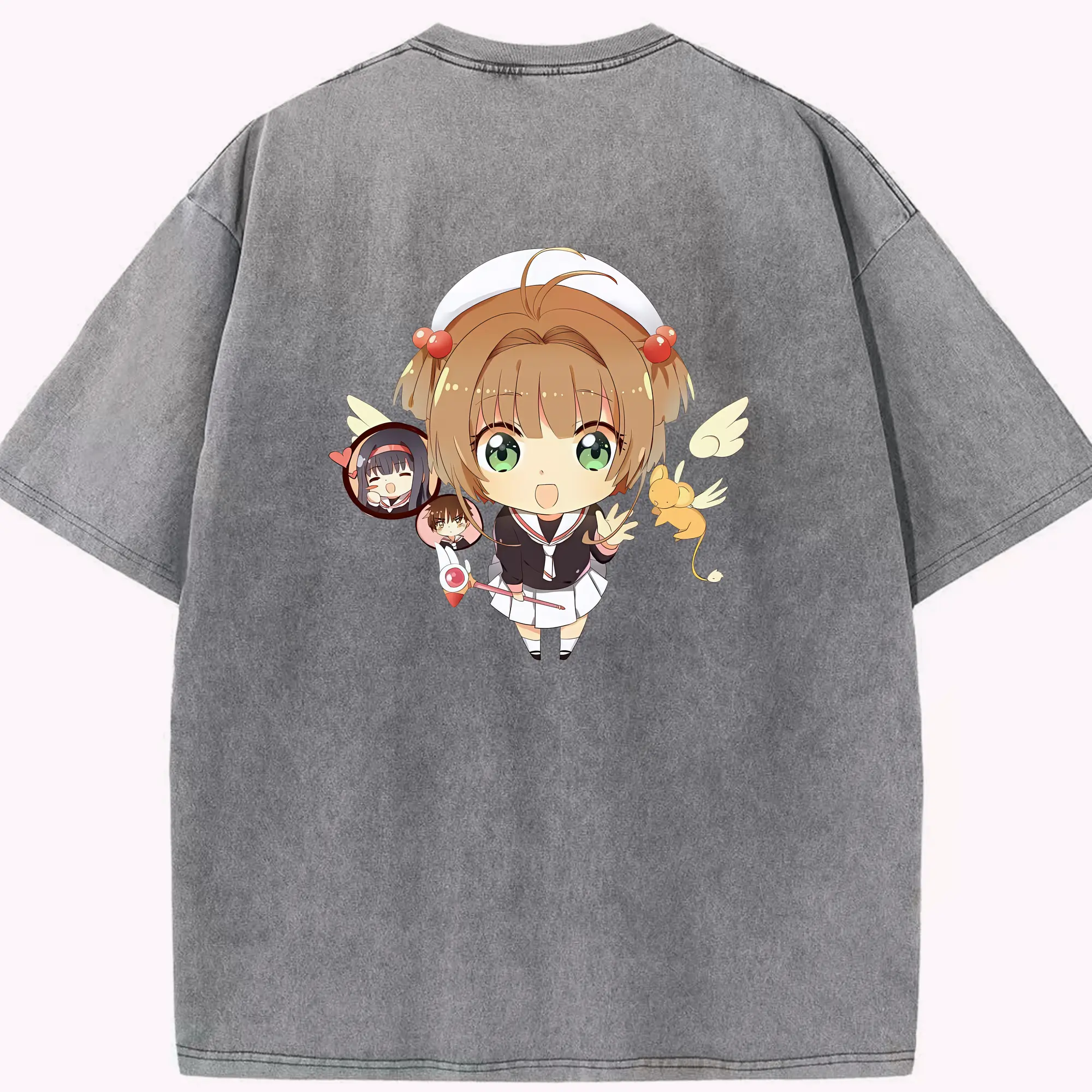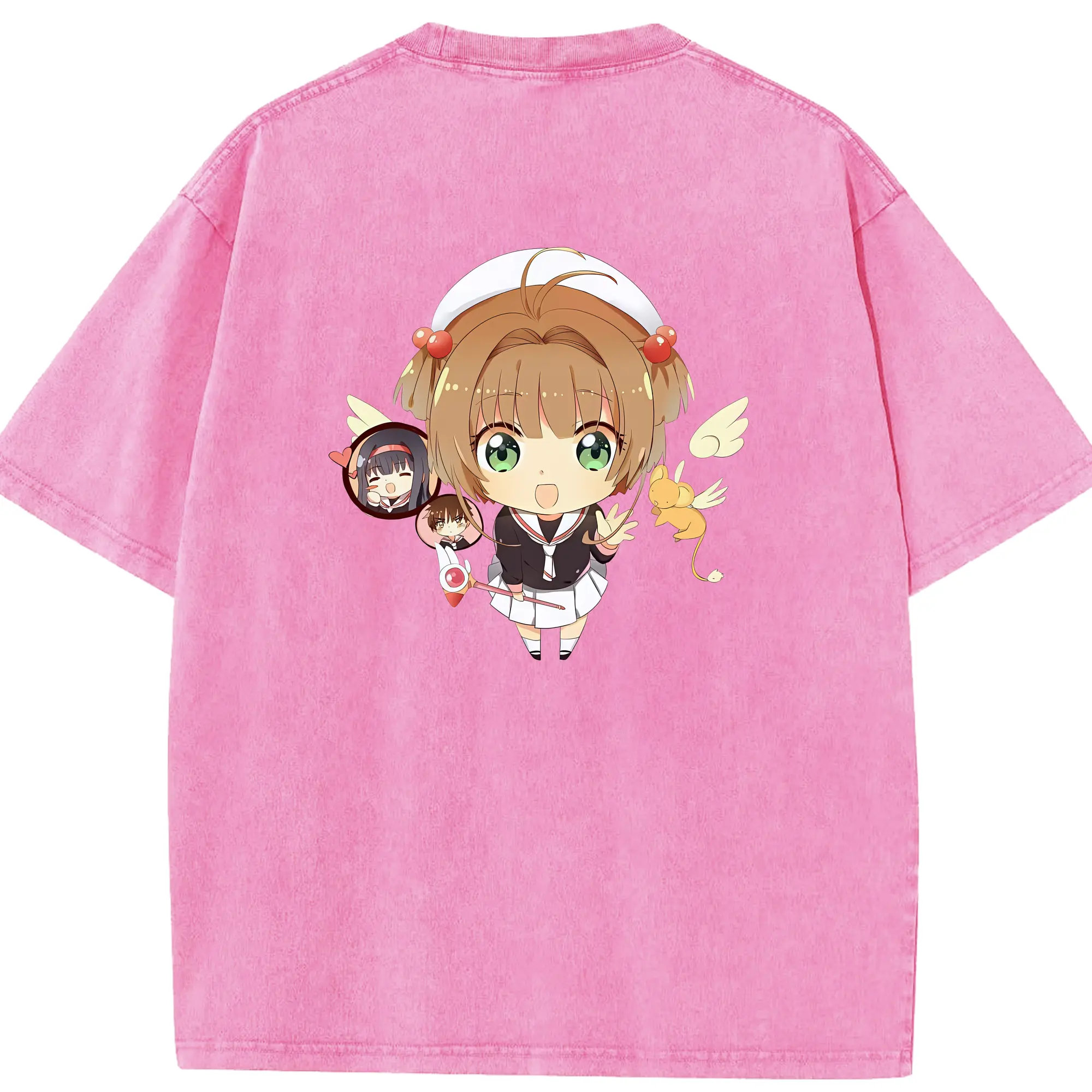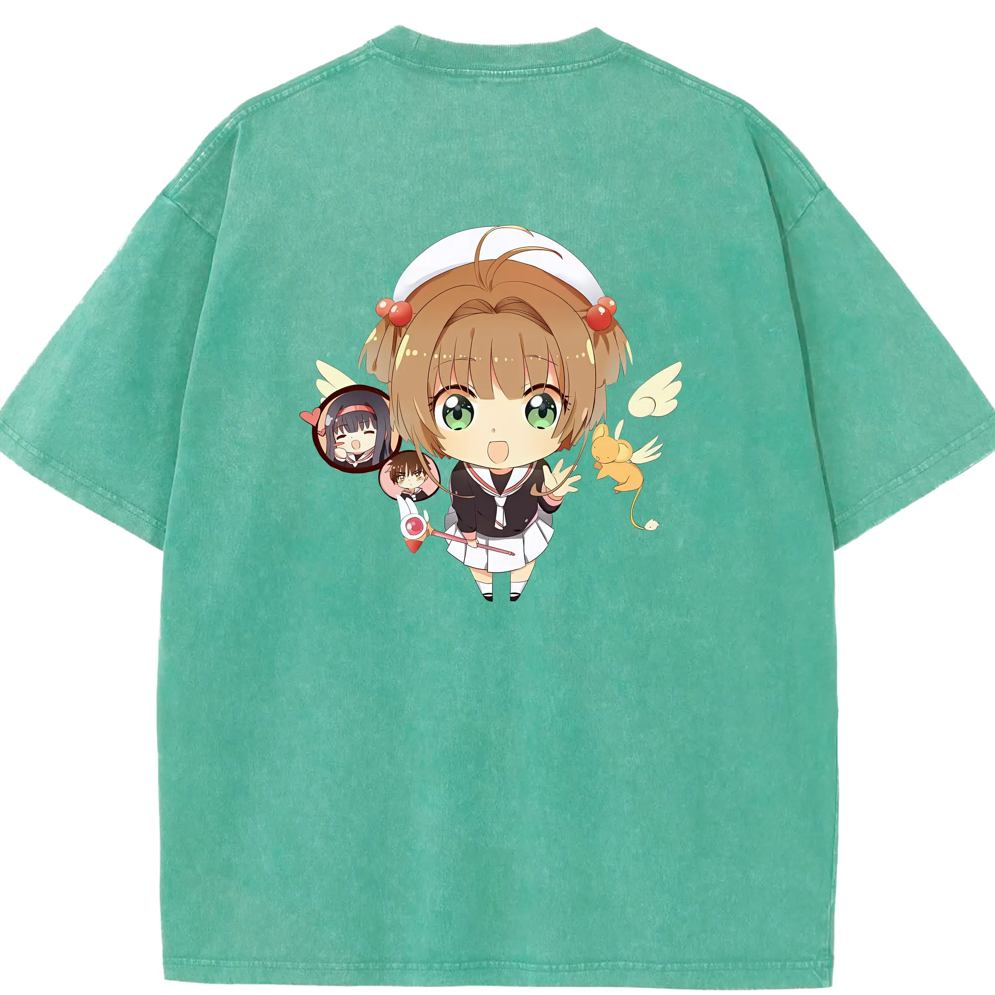カードキャプターさくら グッズ,木之本桜 - 綿100% ヴィンテージ風 半袖Tシャツ ・ フロントプリント ・ 柔らか肌触り ・ 通気性 快適 ・ スポーツ カジュアル 外出用