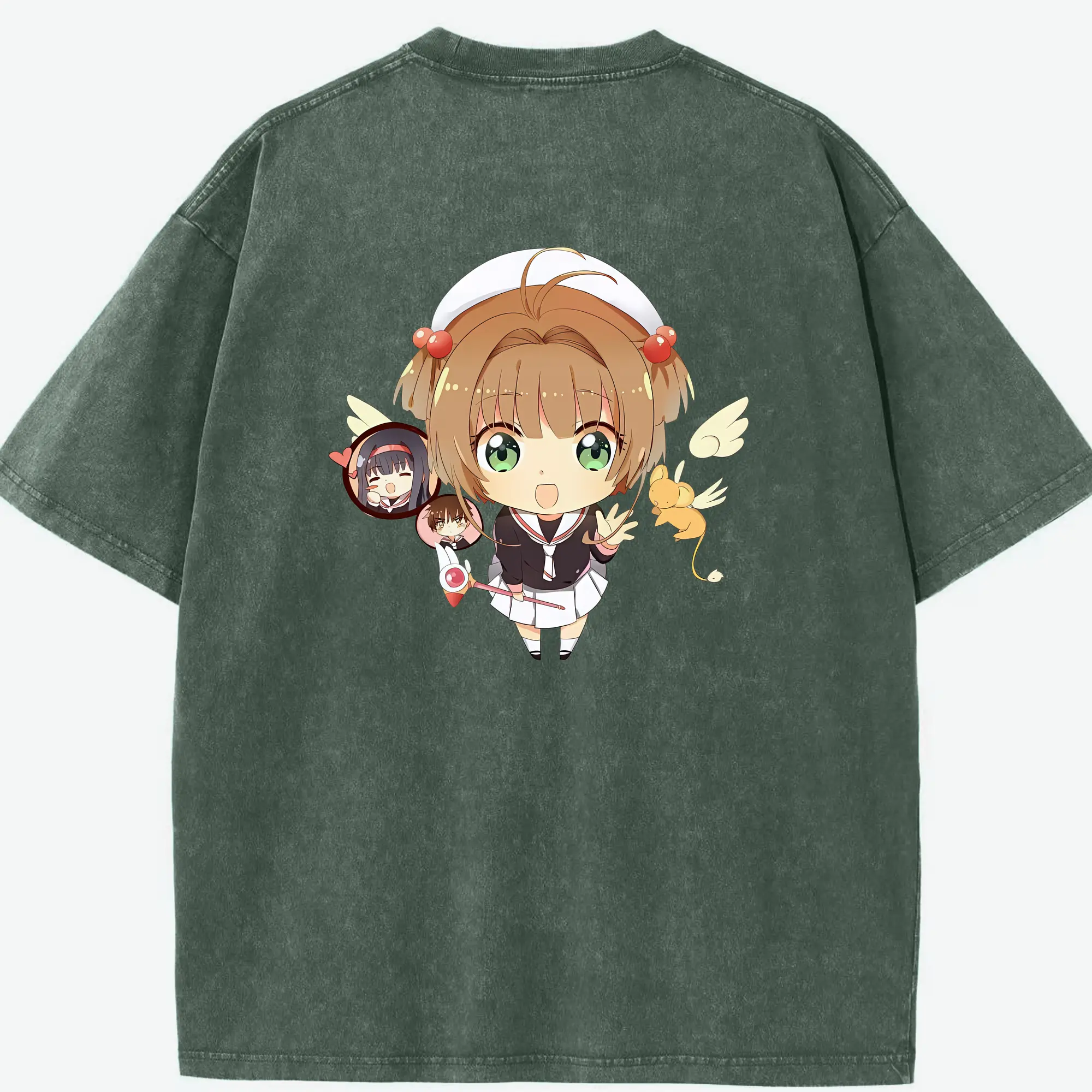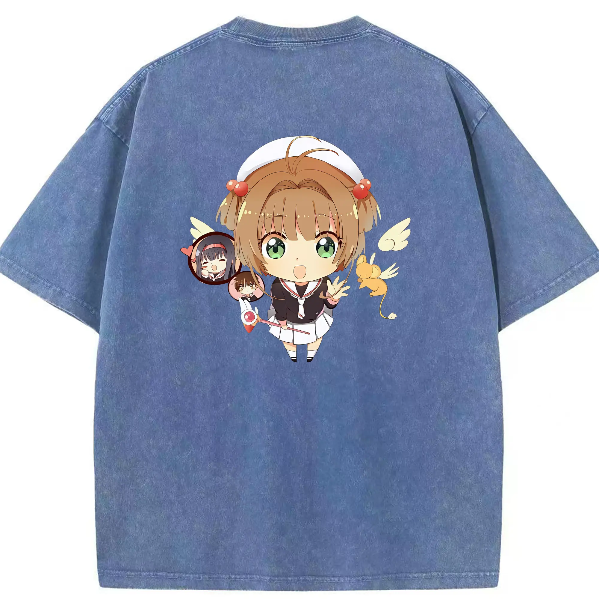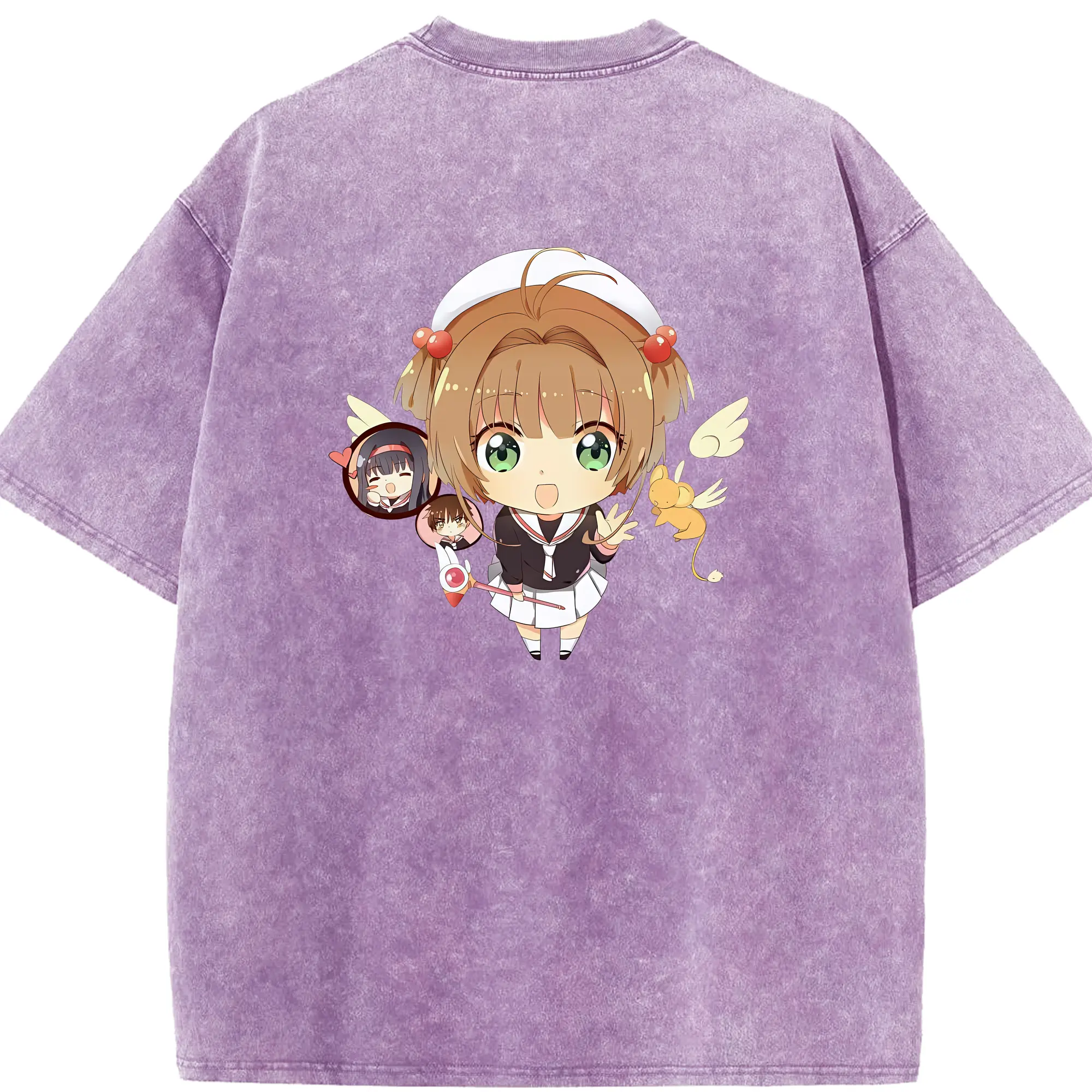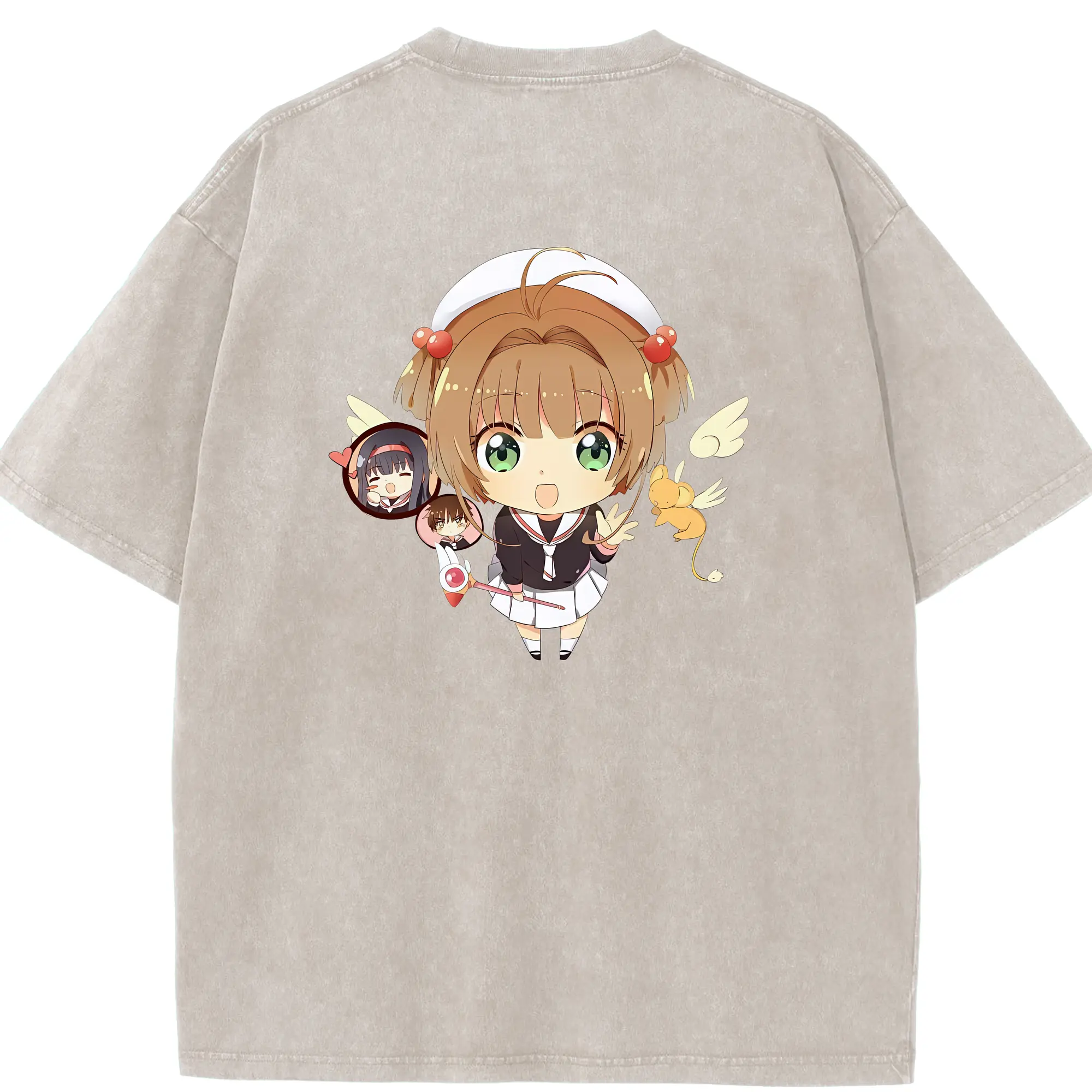カードキャプターさくら グッズ,木之本桜 - 綿100% ヴィンテージ風 半袖Tシャツ ・ フロントプリント ・ 柔らか肌触り ・ 通気性 快適 ・ スポーツ カジュアル 外出用