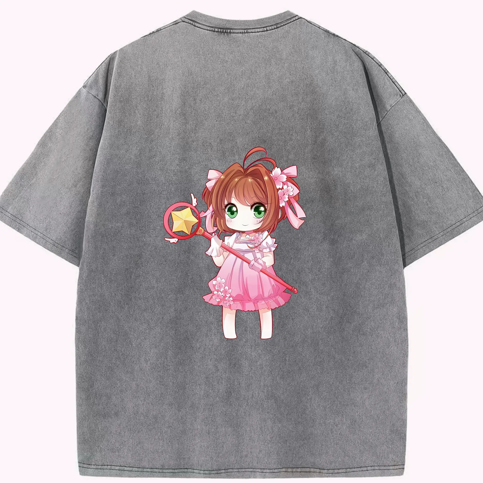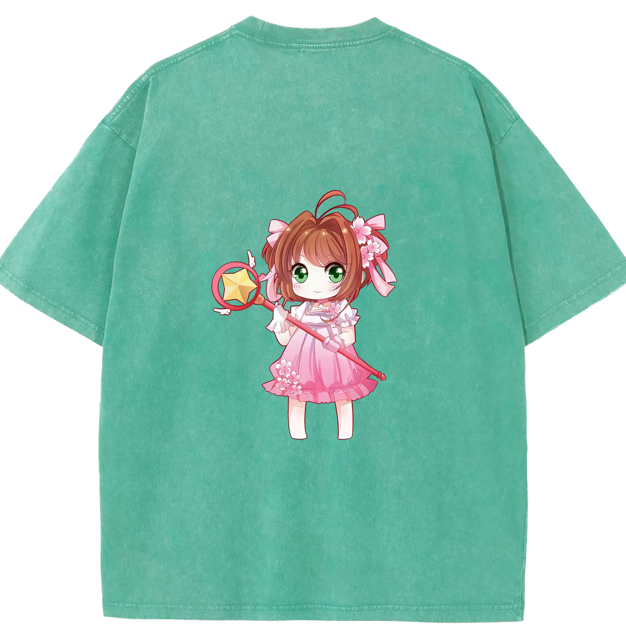 カードキャプターさくら グッズ,木之本桜 - 綿100% ヴィンテージ風 半袖Tシャツ ・ フロントプリント ・ 柔らか肌触り ・ 通気性 快適 ・ スポーツ カジュアル 外出用