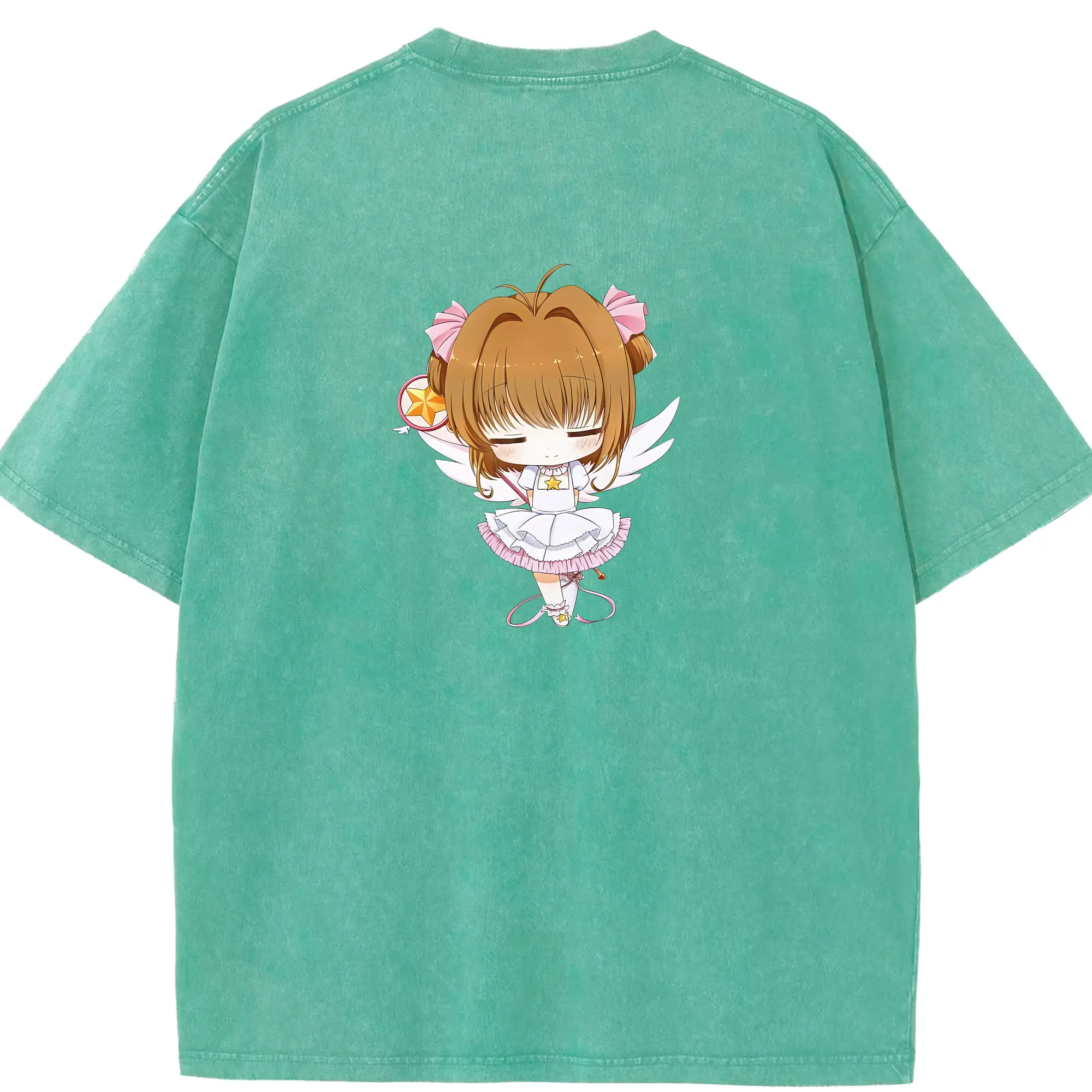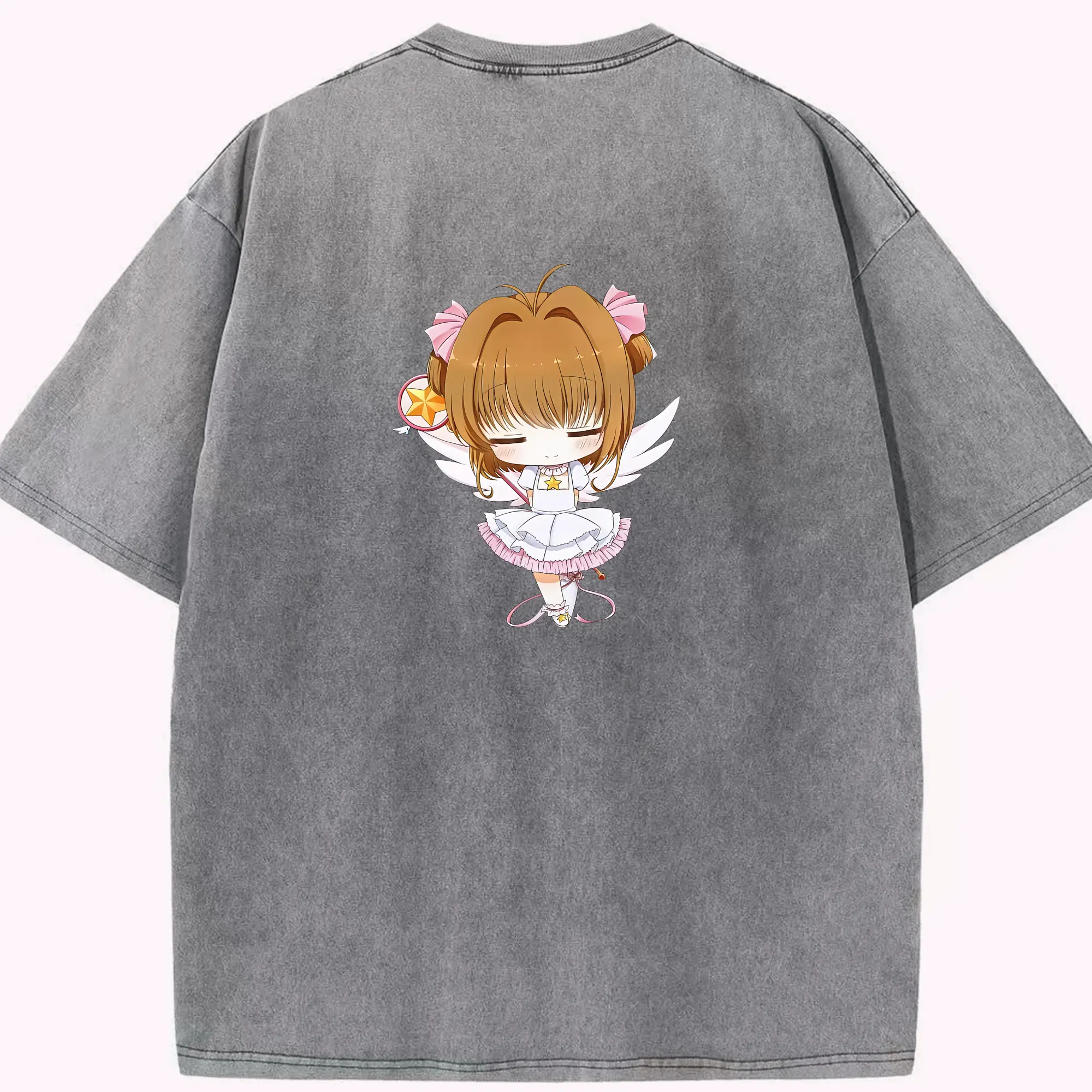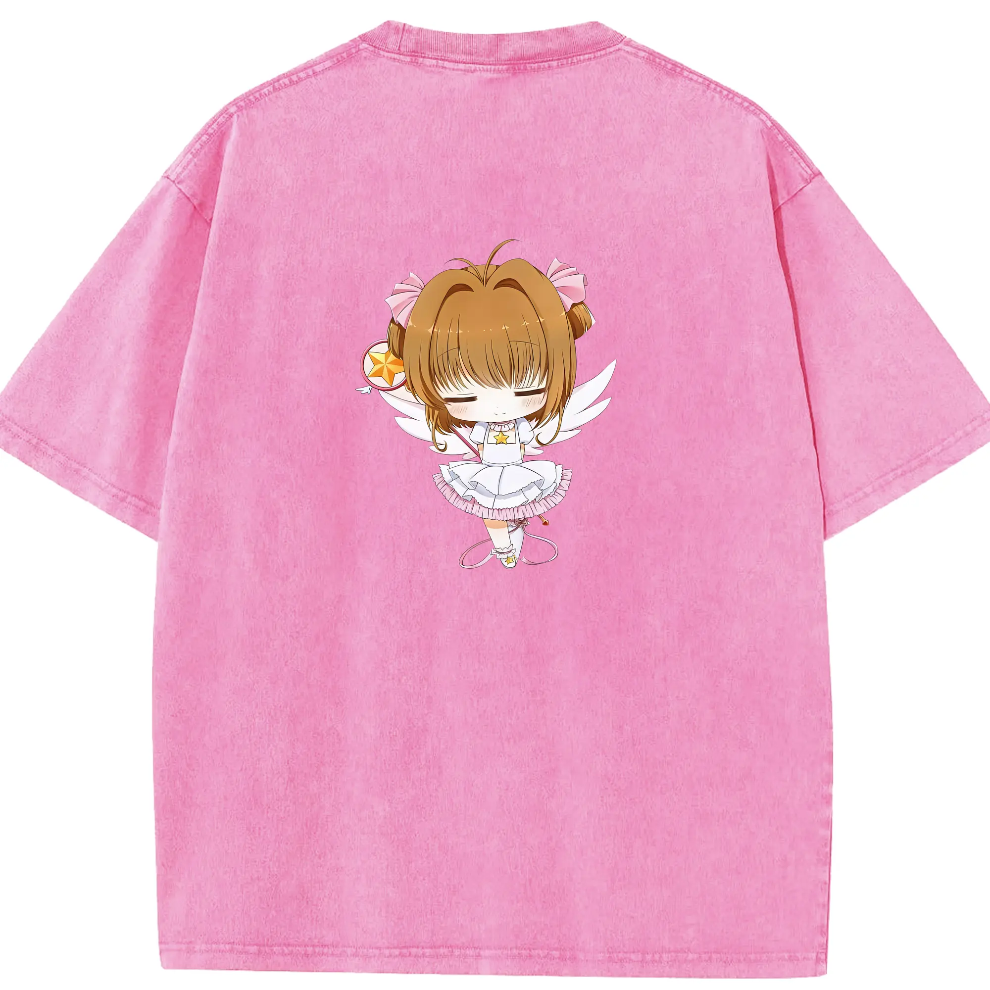 カードキャプターさくら グッズ,木之本桜 - 綿100% ヴィンテージ風 半袖Tシャツ ・ フロントプリント ・ 柔らか肌触り ・ 通気性 快適 ・ スポーツ カジュアル 外出用