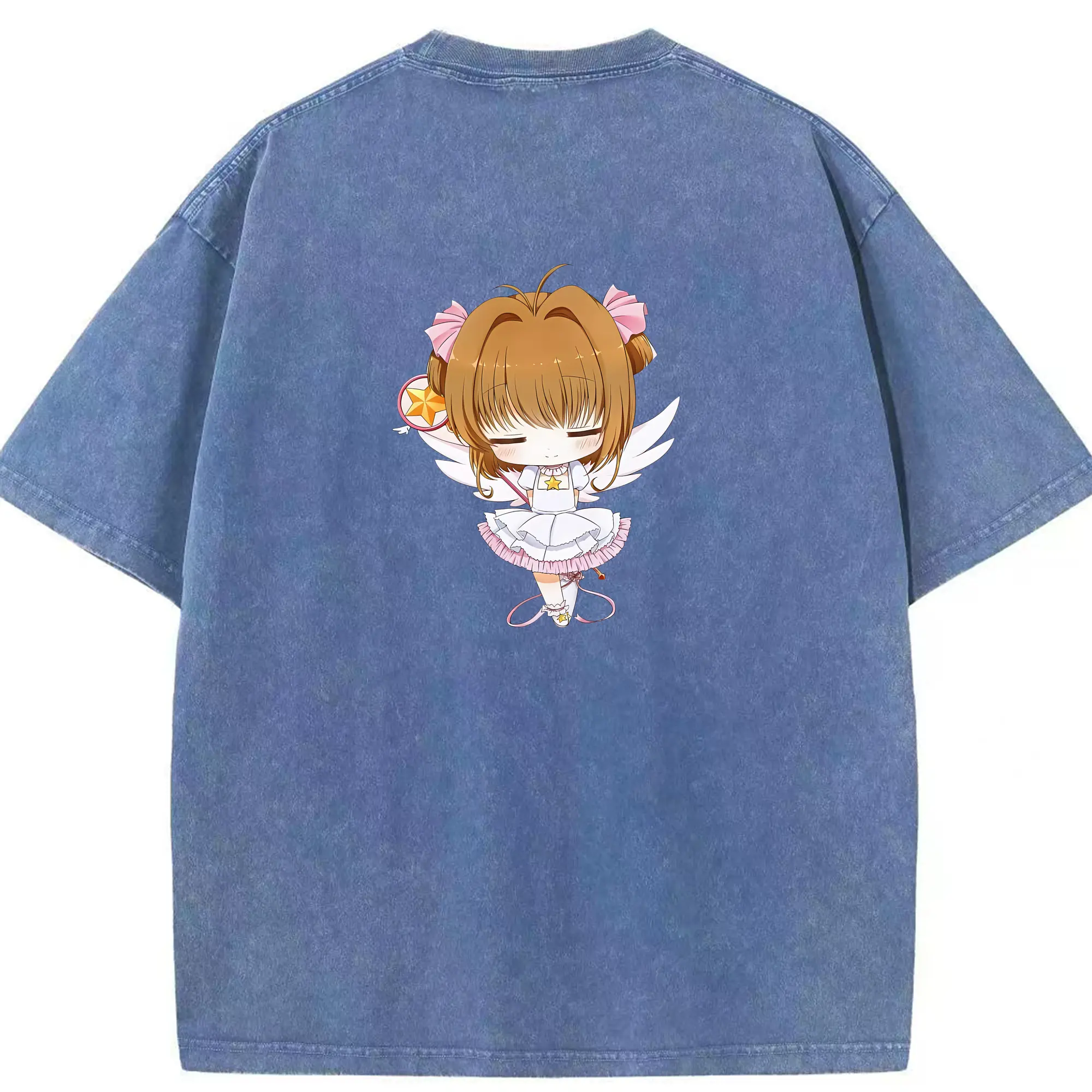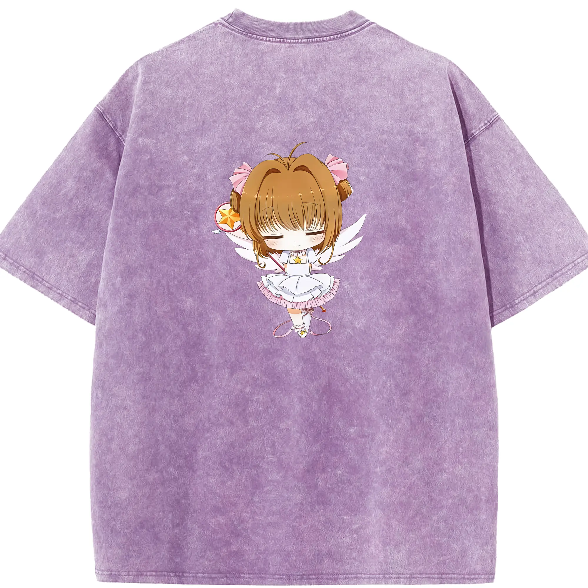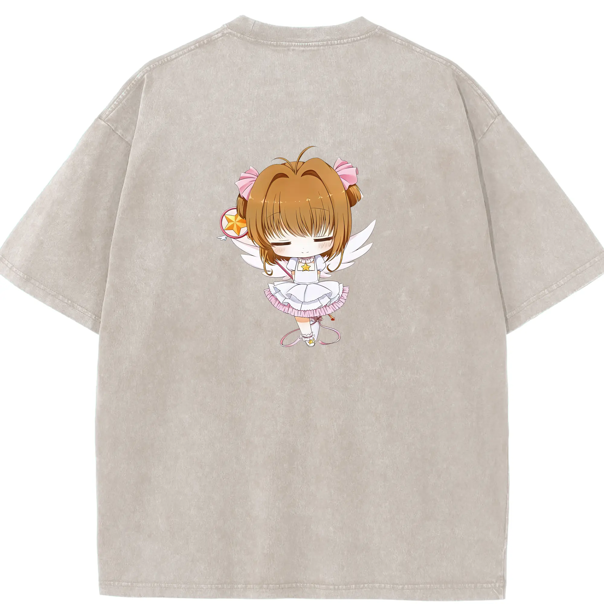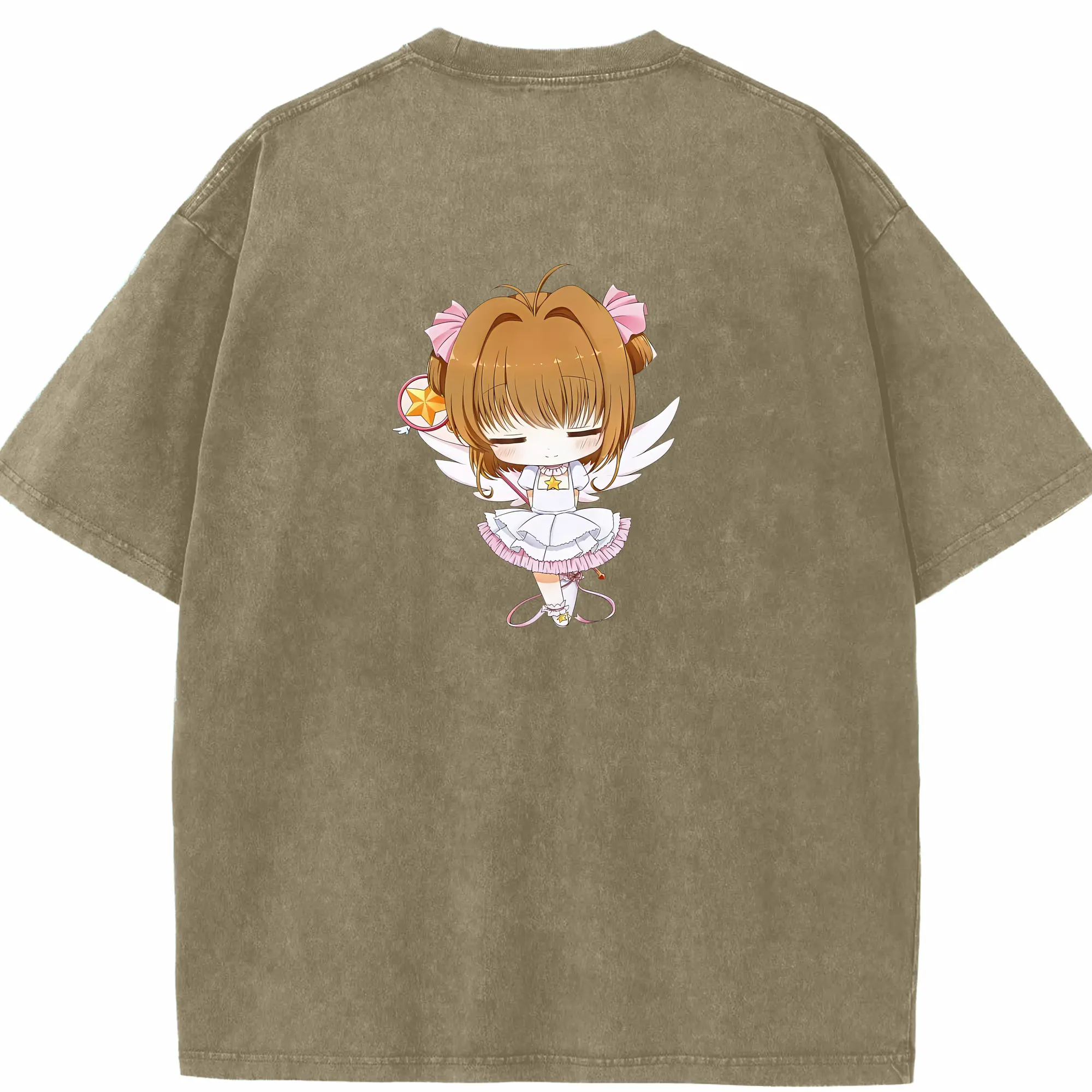 カードキャプターさくら グッズ,木之本桜 - 綿100% ヴィンテージ風 半袖Tシャツ ・ フロントプリント ・ 柔らか肌触り ・ 通気性 快適 ・ スポーツ カジュアル 外出用