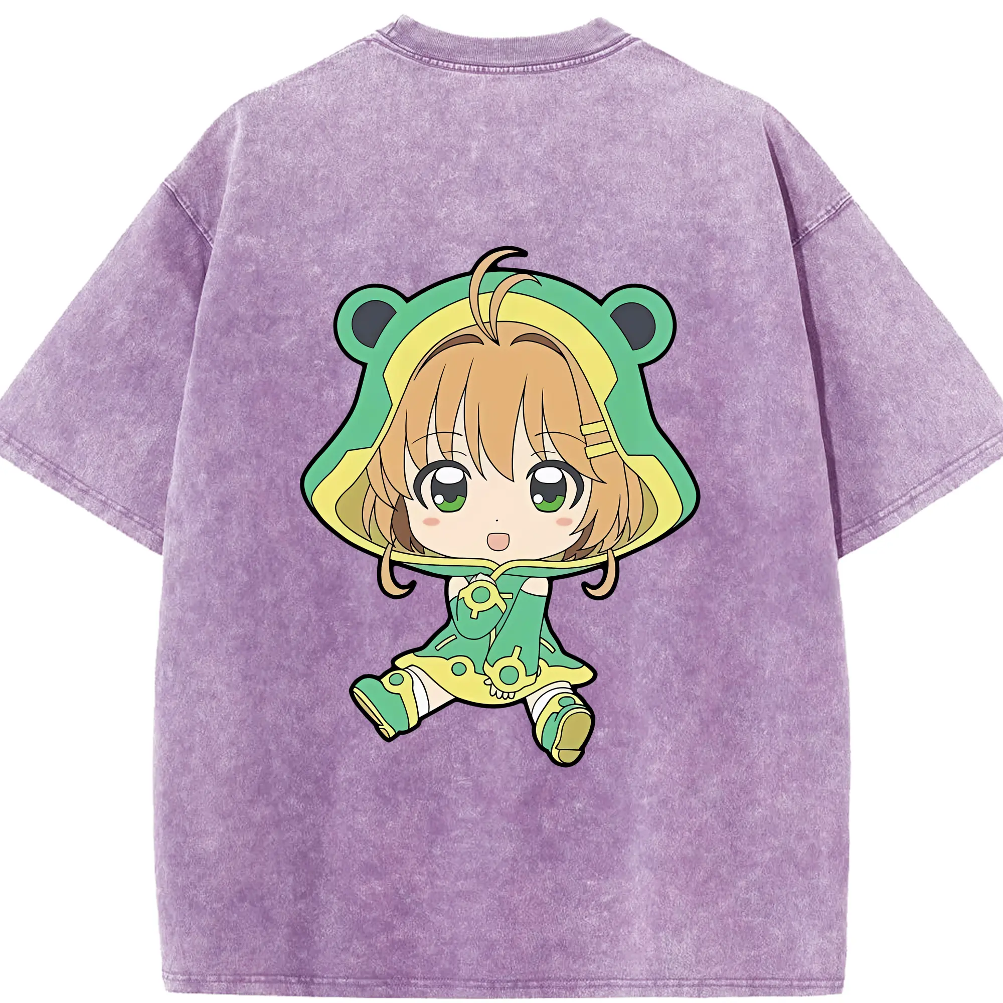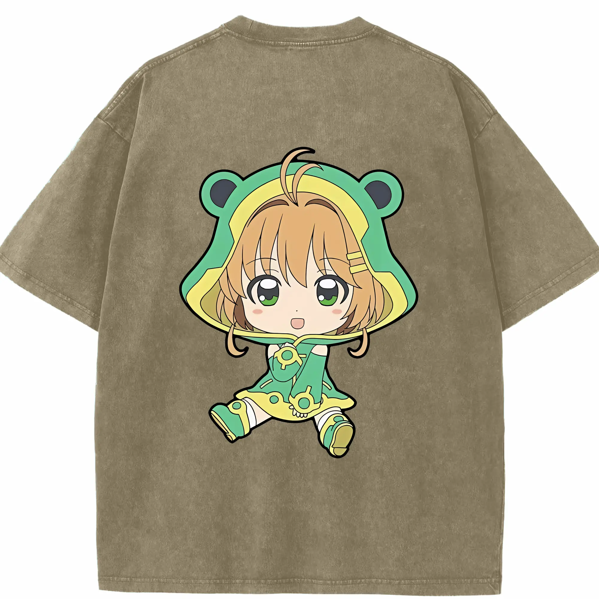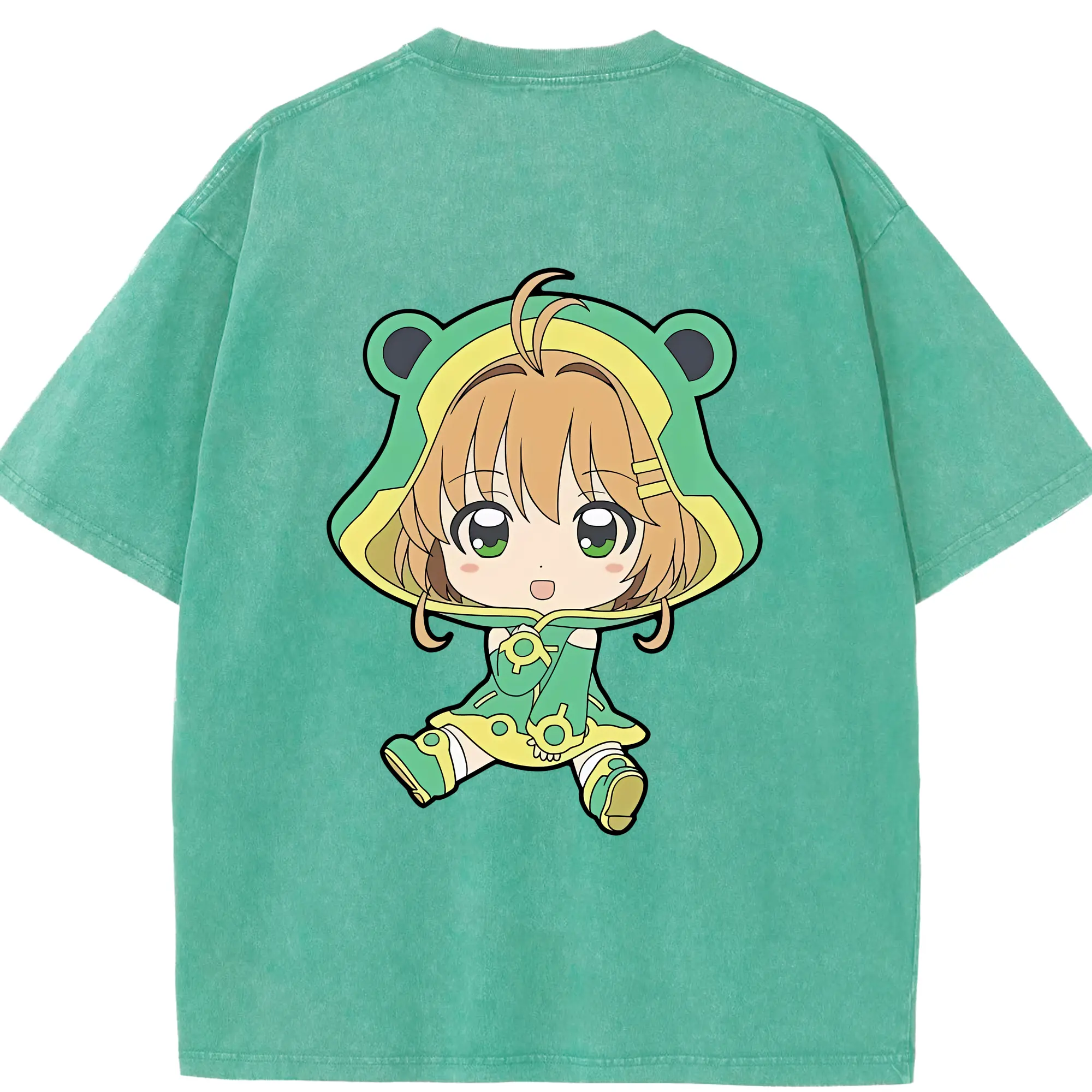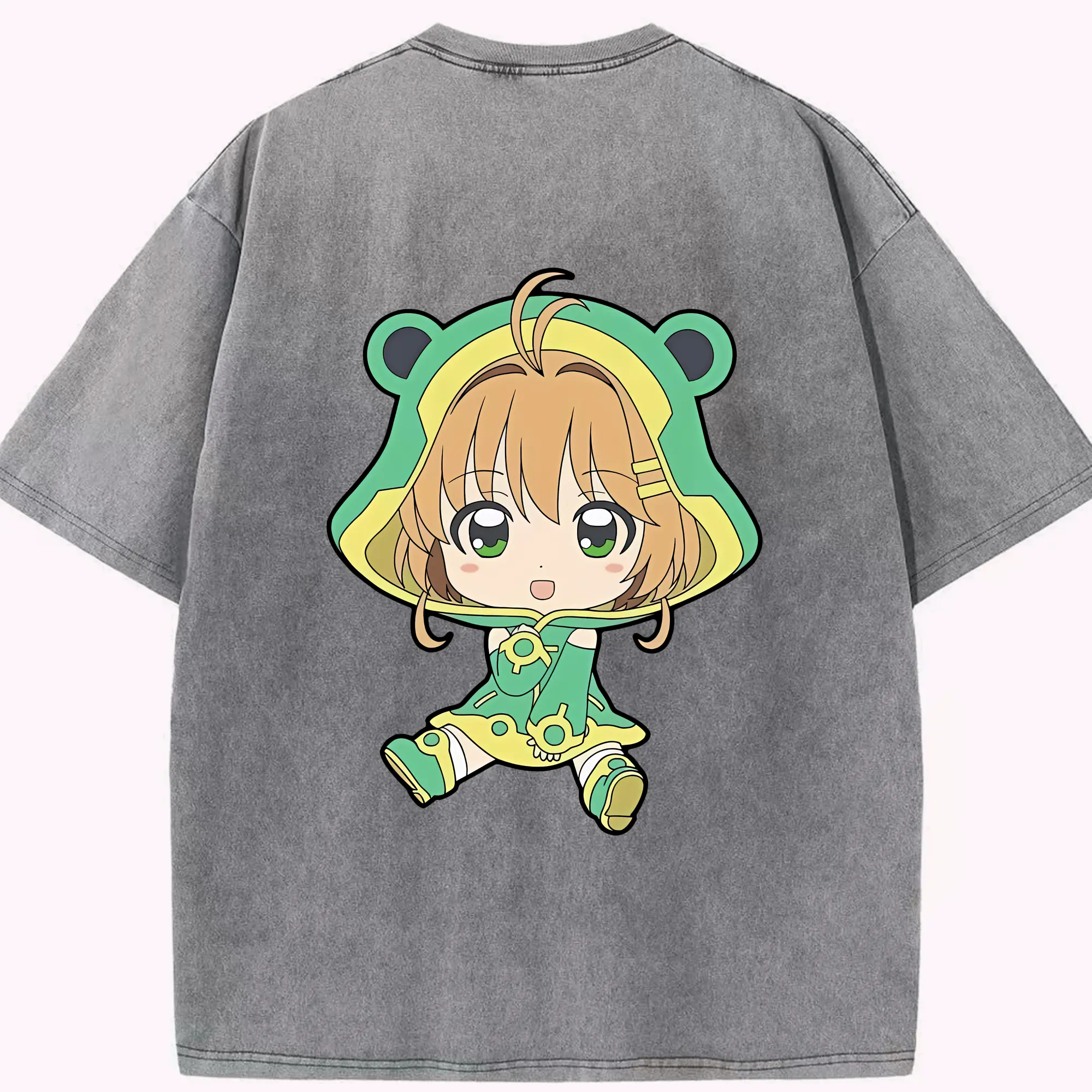 カードキャプターさくら グッズ,木之本桜 - 綿100% ヴィンテージ風 半袖Tシャツ ・ フロントプリント ・ 柔らか肌触り ・ 通気性 快適 ・ スポーツ カジュアル 外出用