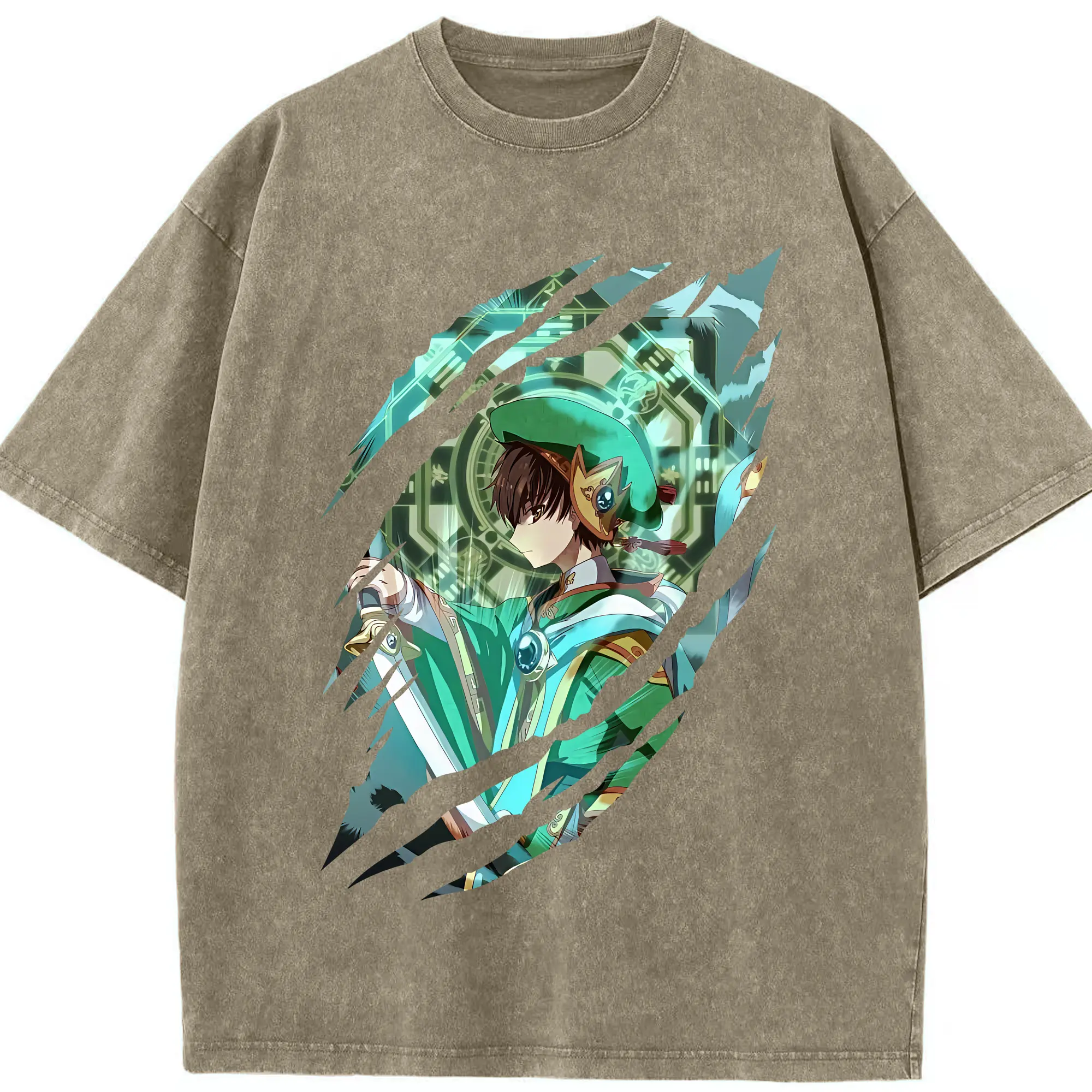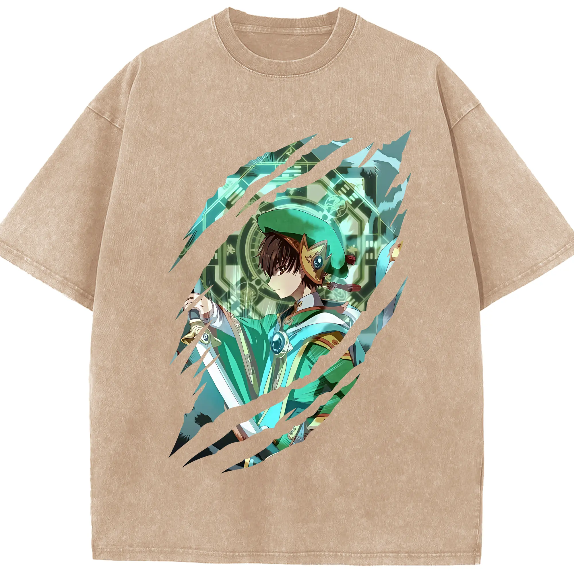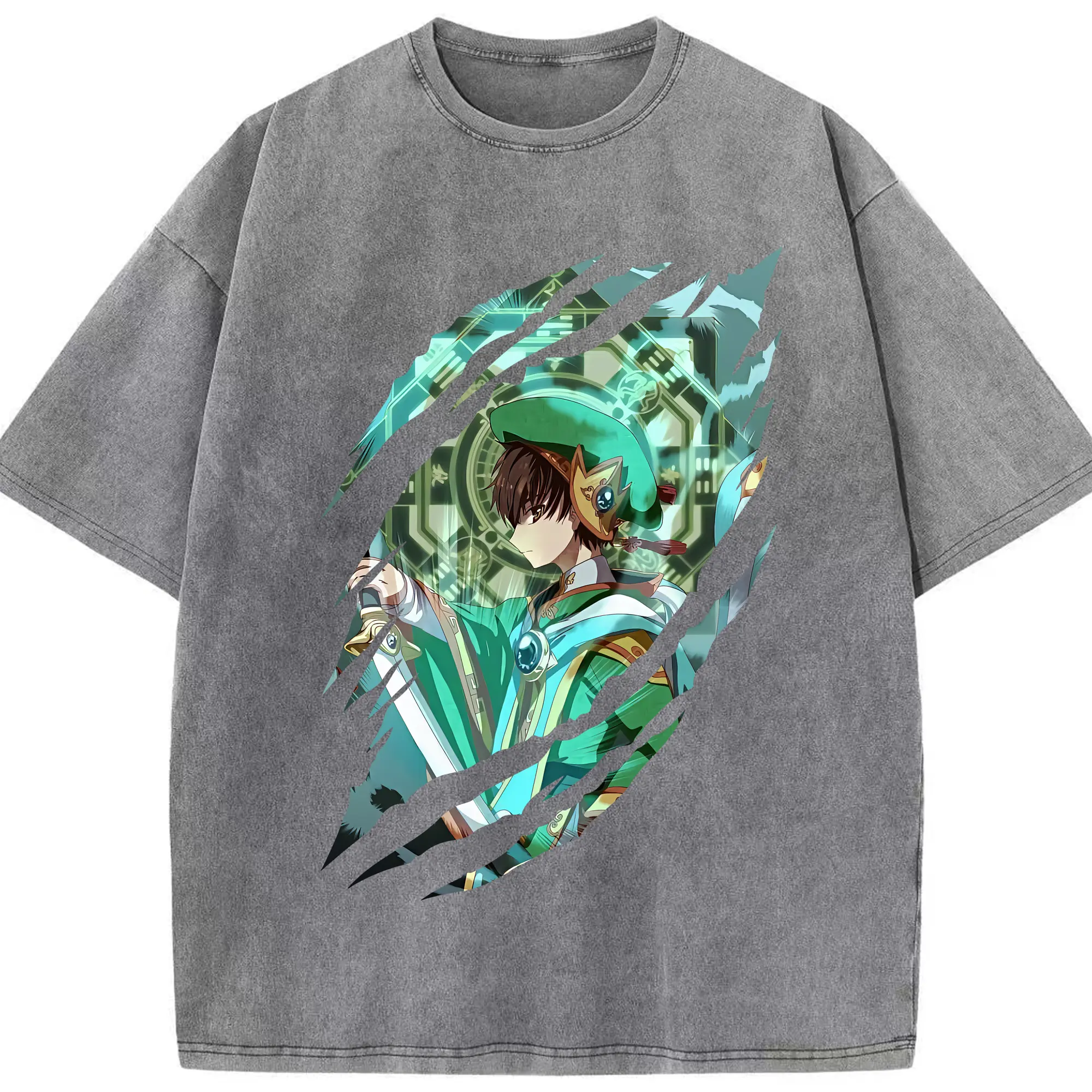 原 神 グッズ ディルック - 綿100% ヴィンテージ風 半袖Tシャツ ・ フロントプリント ・ 柔らか肌触り ・ 通気性 快適 ・ スポーツ カジュアル 外出用
