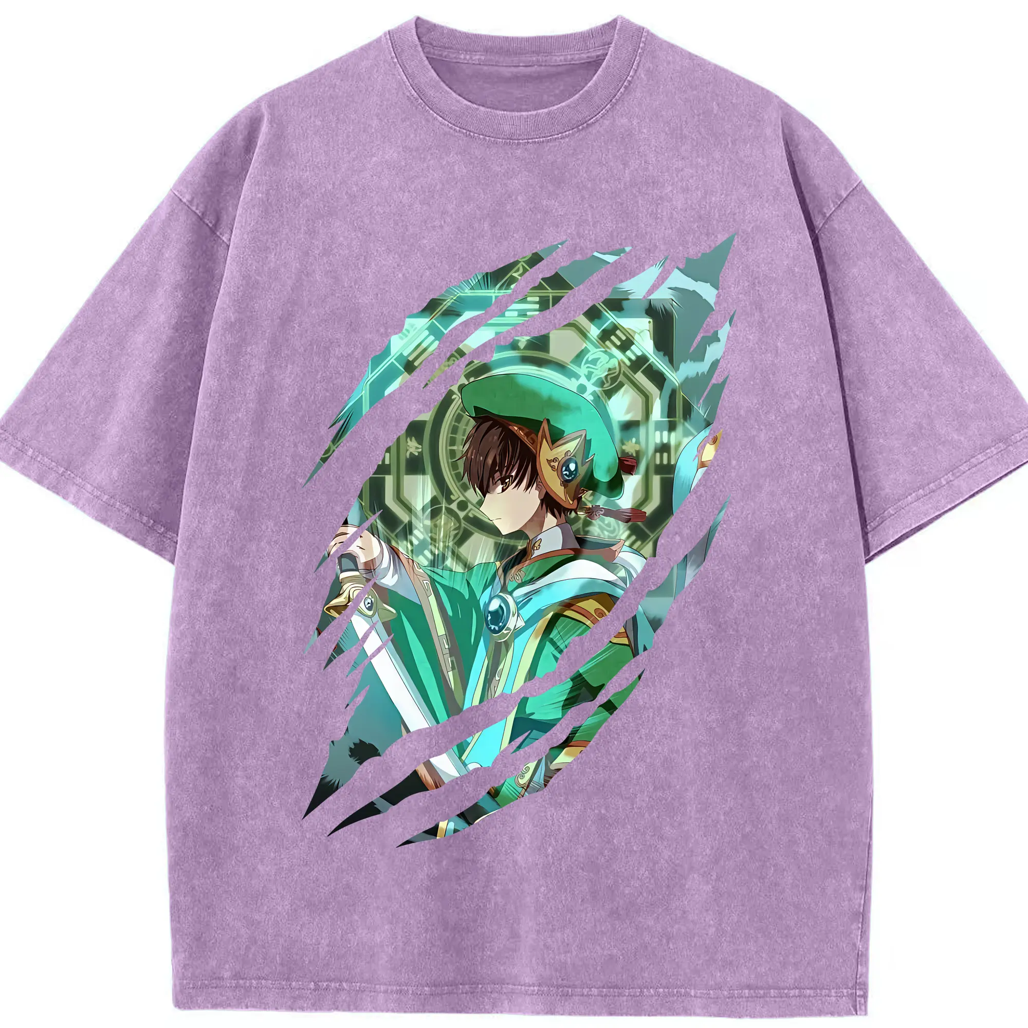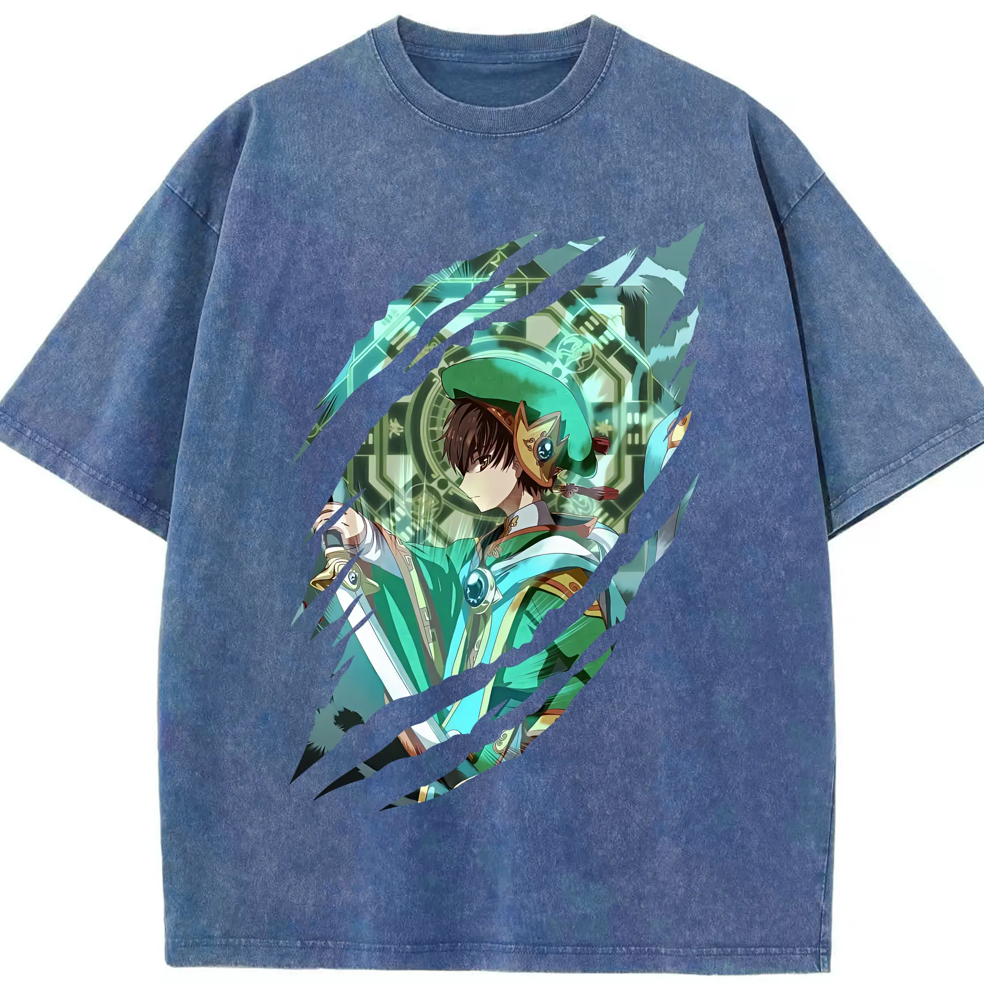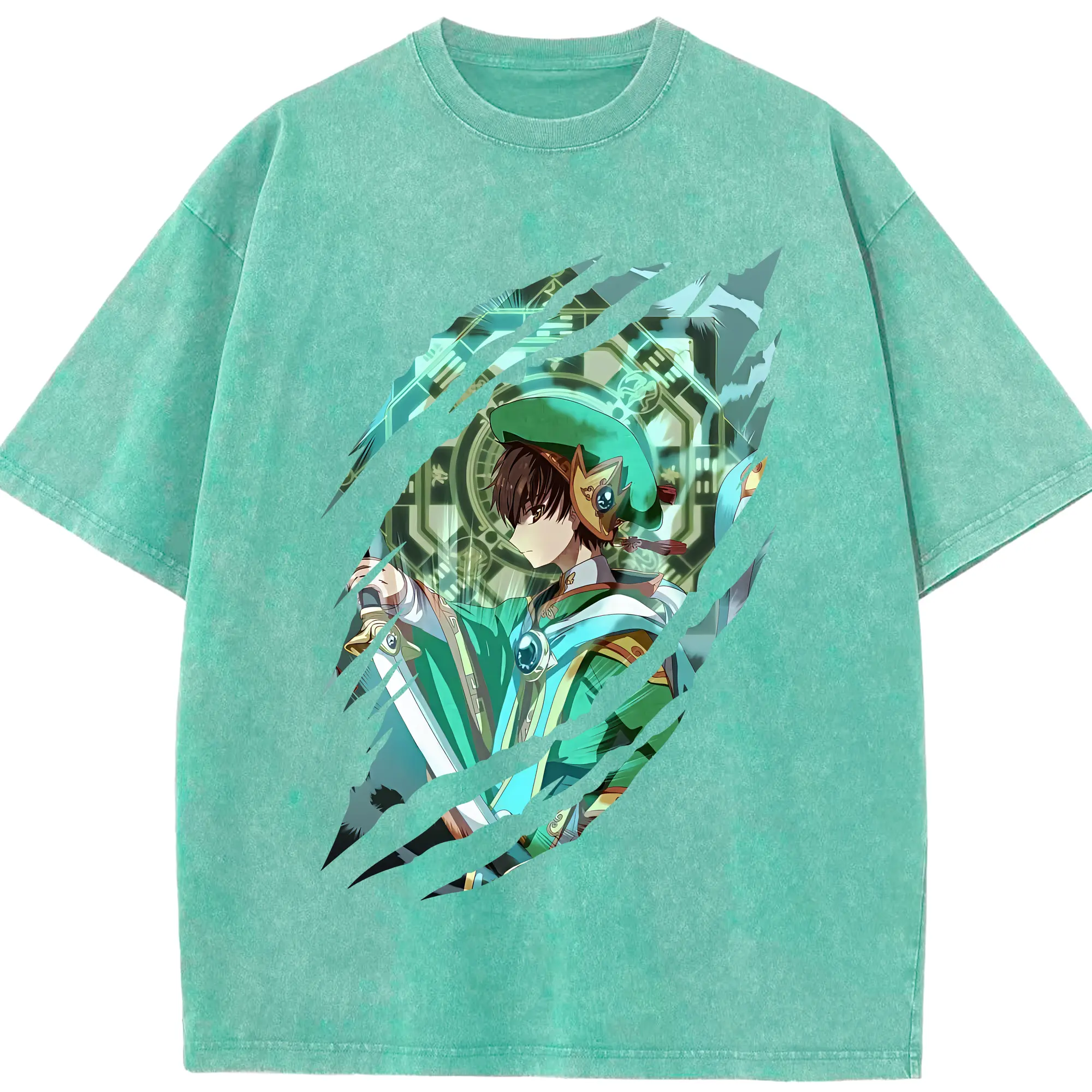 原 神 グッズ ディルック - 綿100% ヴィンテージ風 半袖Tシャツ ・ フロントプリント ・ 柔らか肌触り ・ 通気性 快適 ・ スポーツ カジュアル 外出用