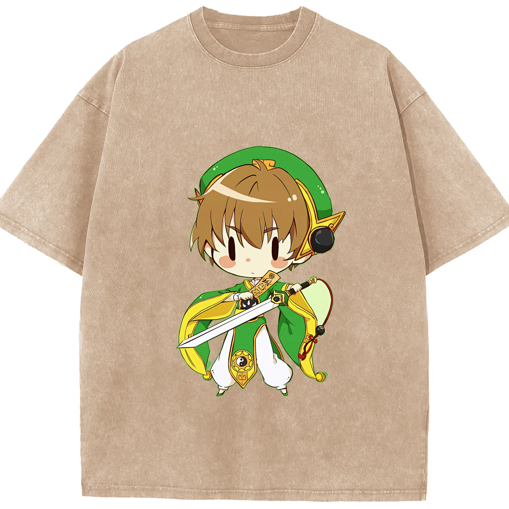 カードキャプターさくら グッズ,李小狼 - 綿100% ヴィンテージ風 半袖Tシャツ ・ 背面プリント ・ 柔らか肌触り ・ 通気性 快適 ・ スポーツ カジュアル 外出用