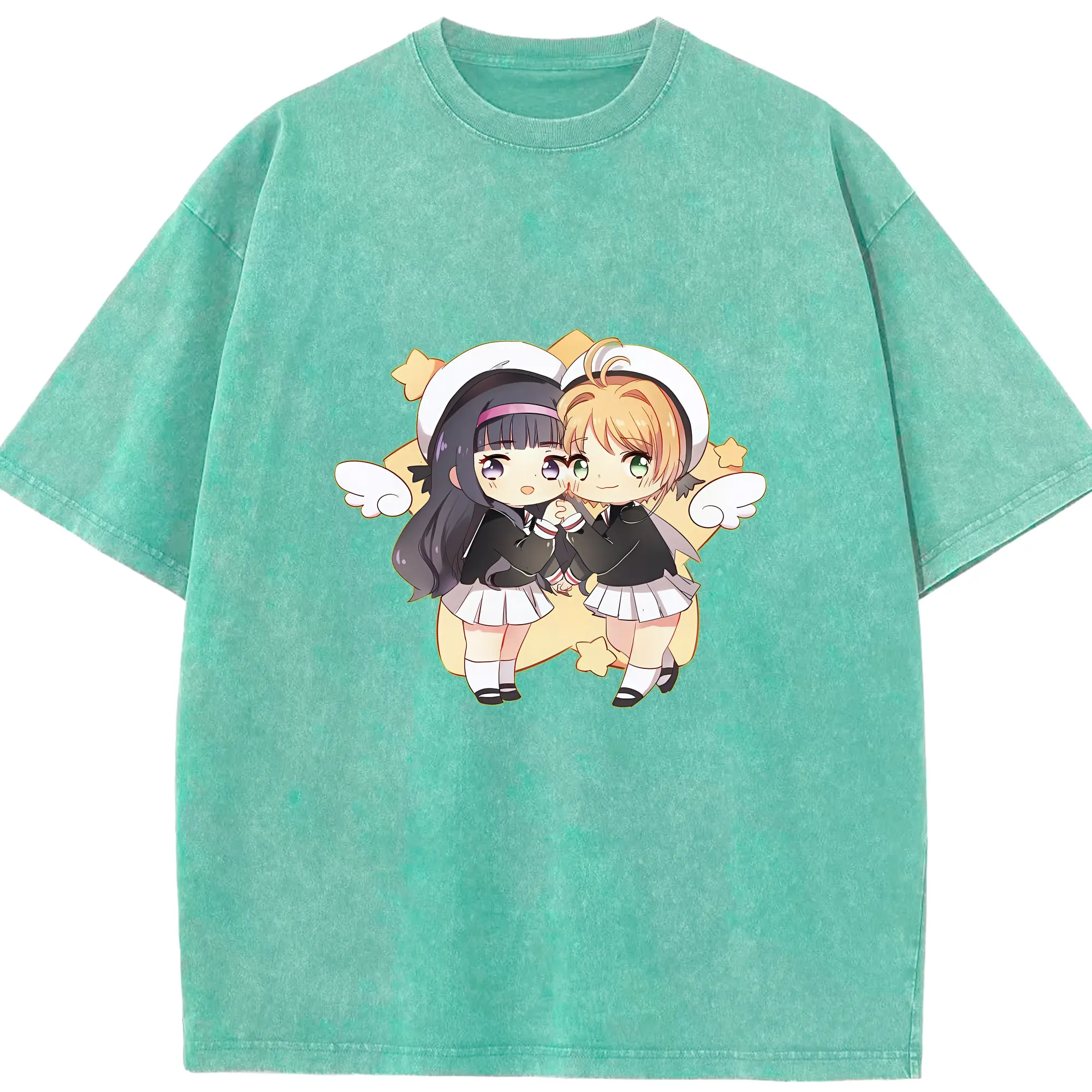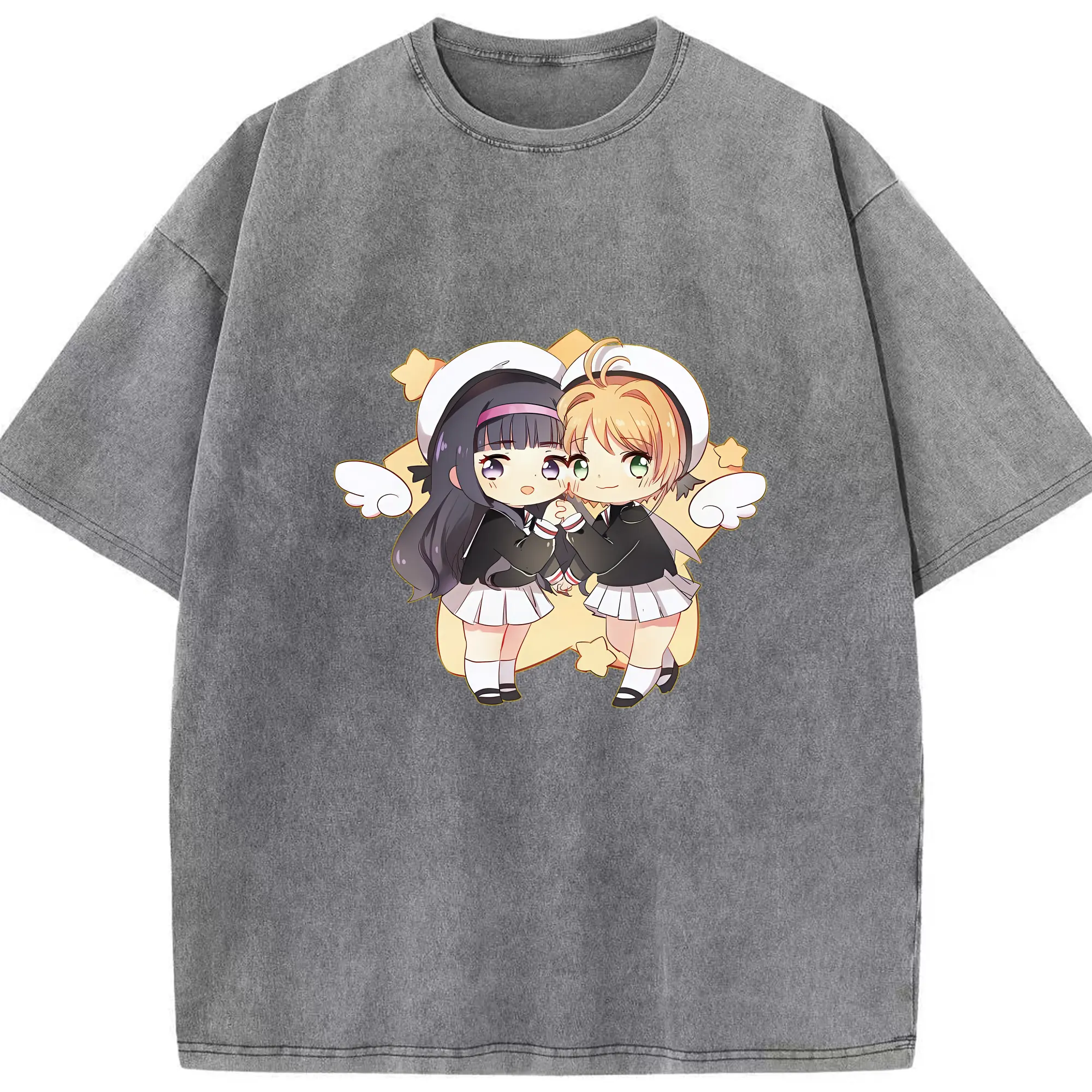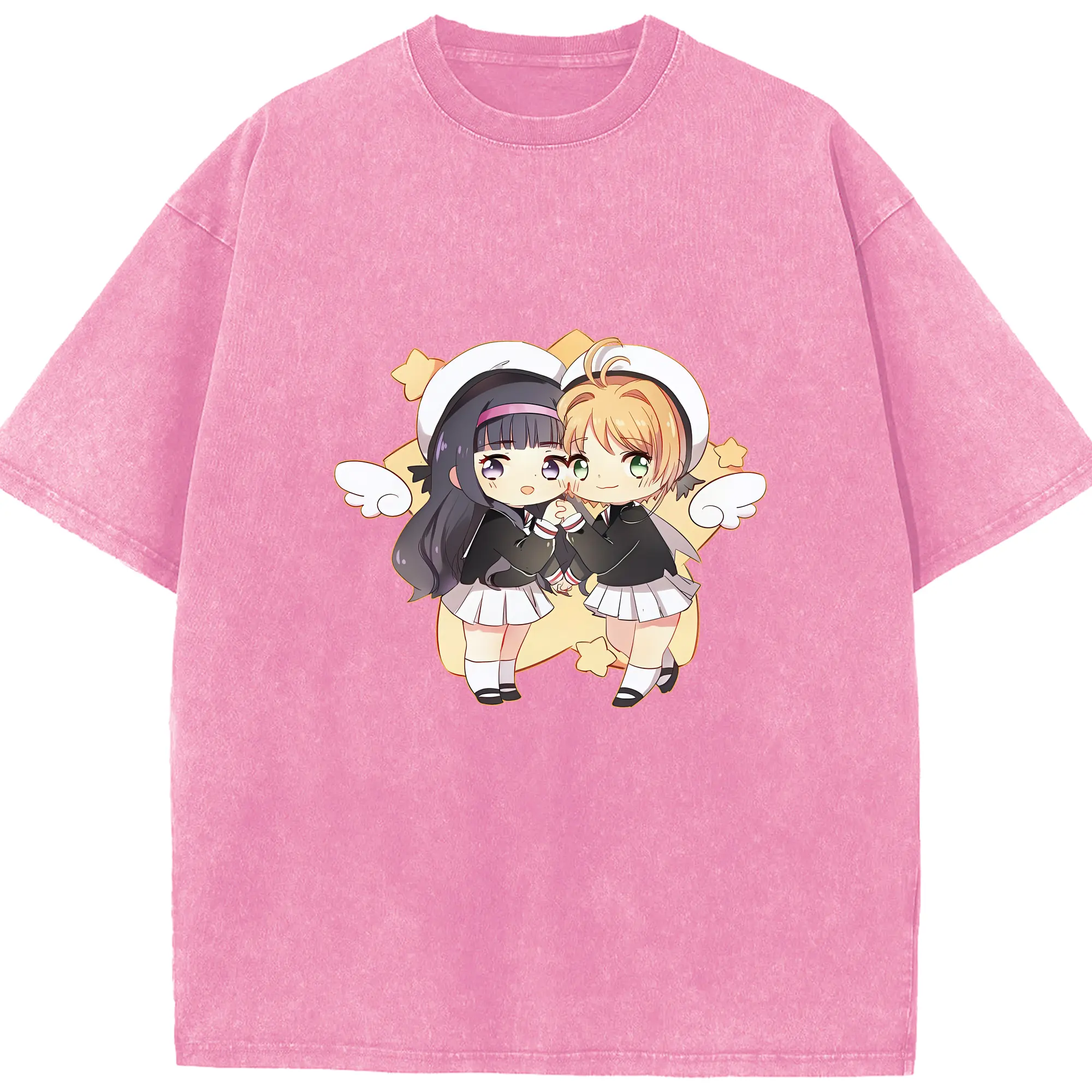 カードキャプターさくら グッズ,木之本桜 - 綿100% ヴィンテージ風 半袖Tシャツ ・ フロントプリント ・ 柔らか肌触り ・ 通気性 快適 ・ スポーツ カジュアル 外出用