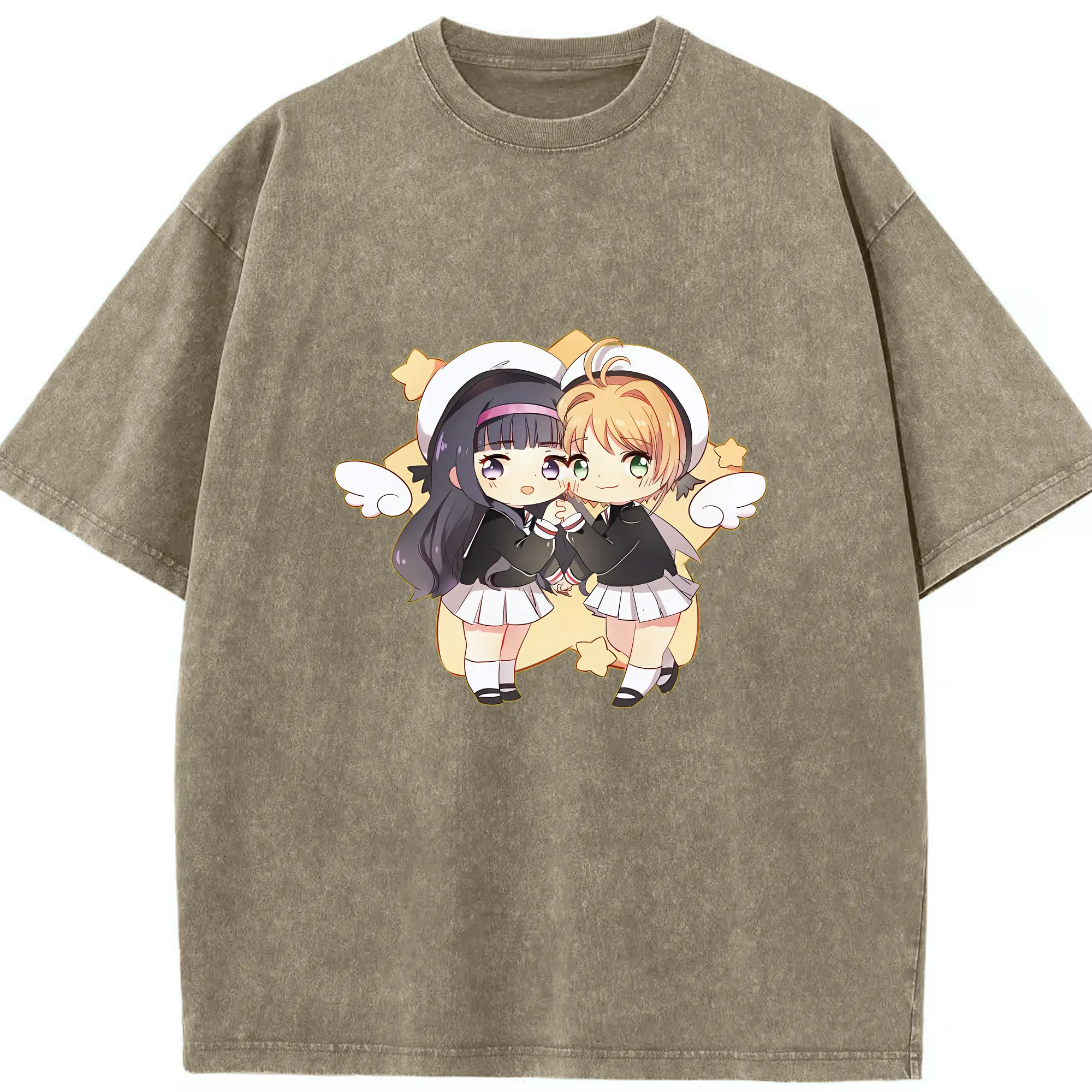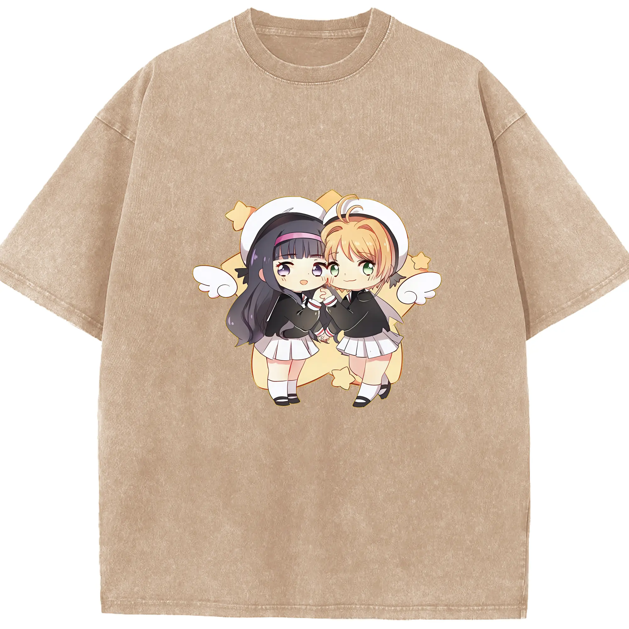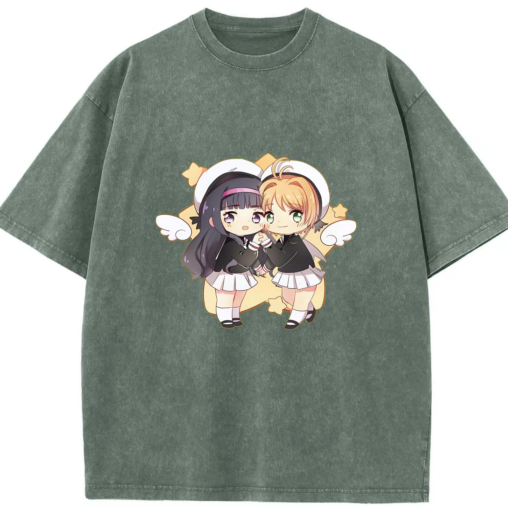 カードキャプターさくら グッズ,木之本桜 - 綿100% ヴィンテージ風 半袖Tシャツ ・ フロントプリント ・ 柔らか肌触り ・ 通気性 快適 ・ スポーツ カジュアル 外出用