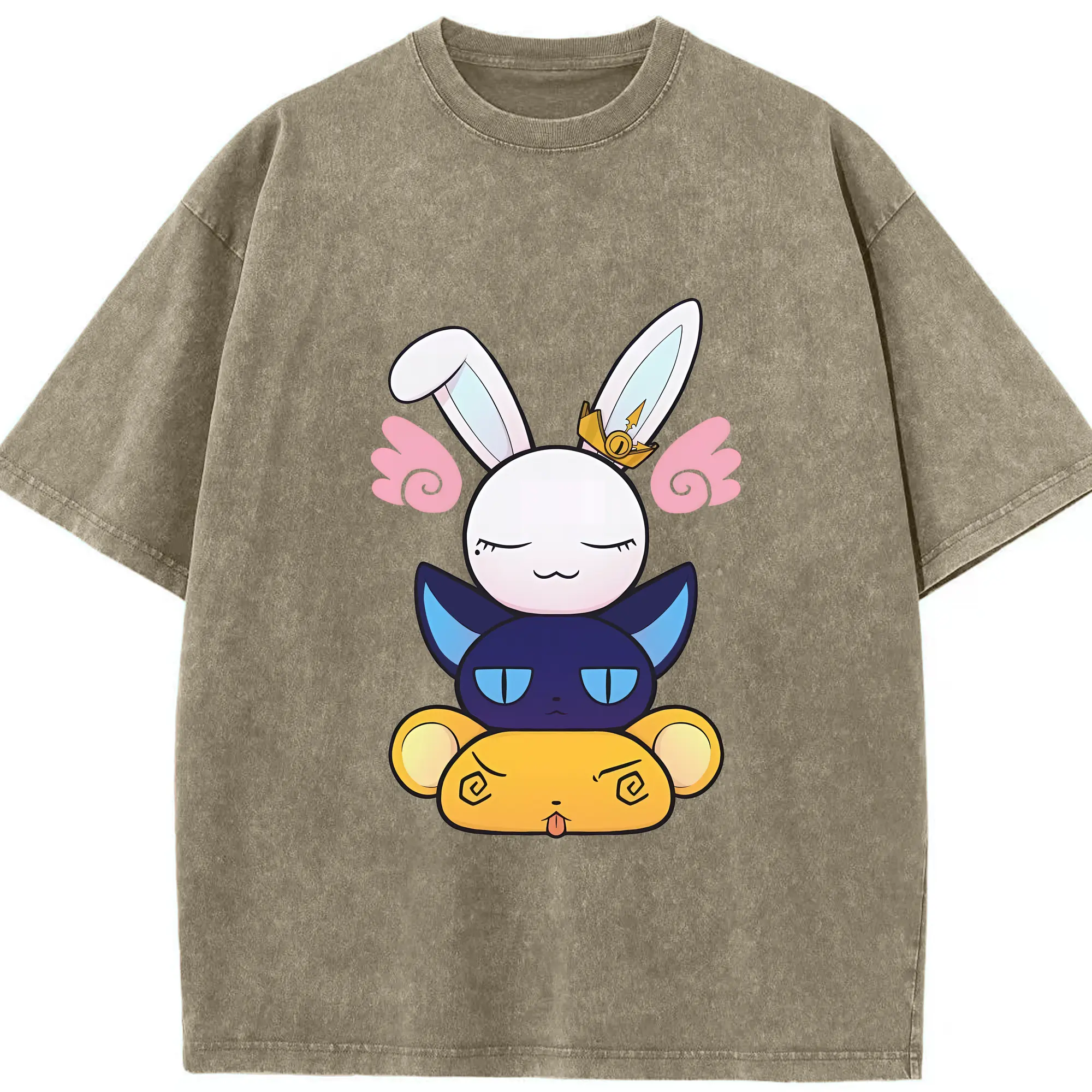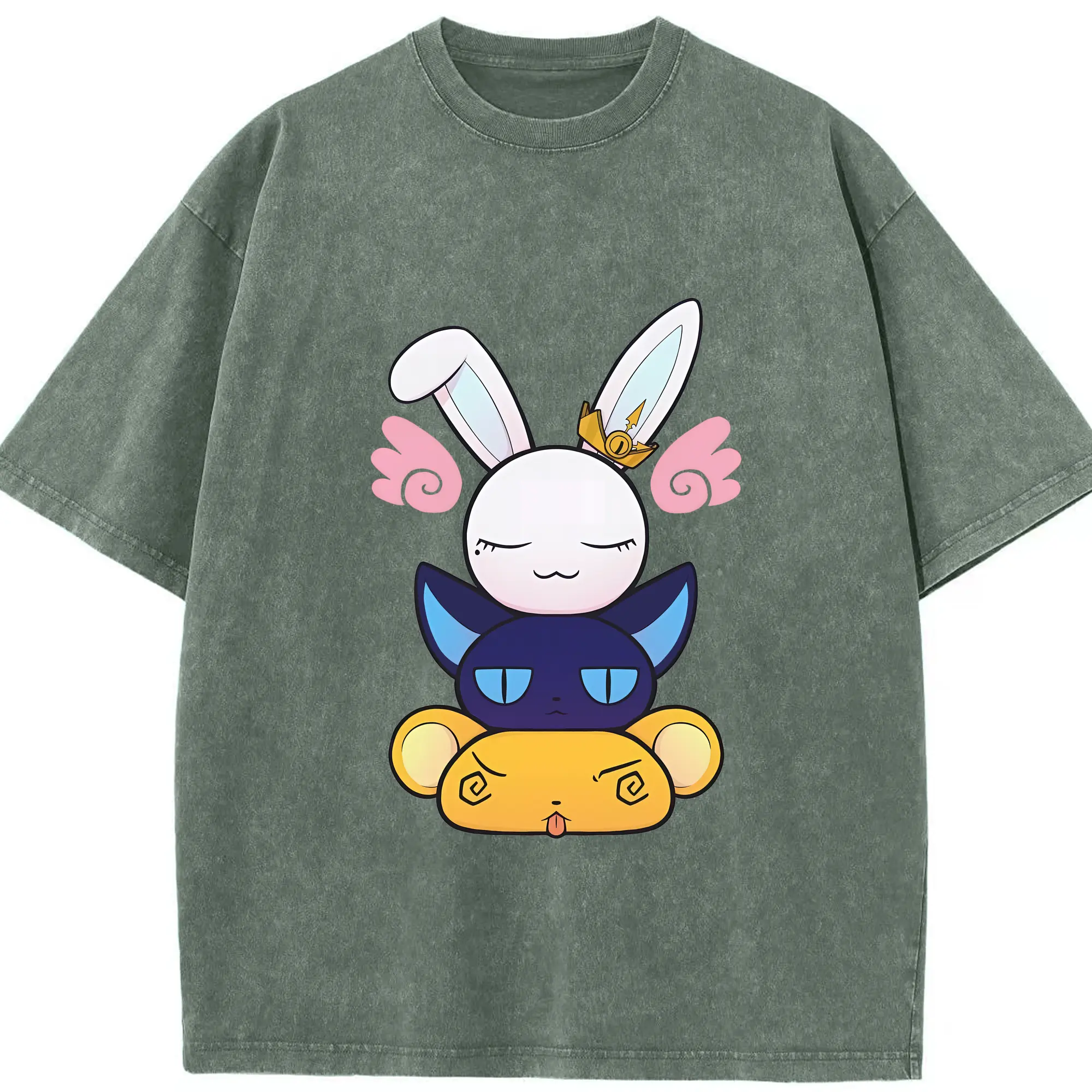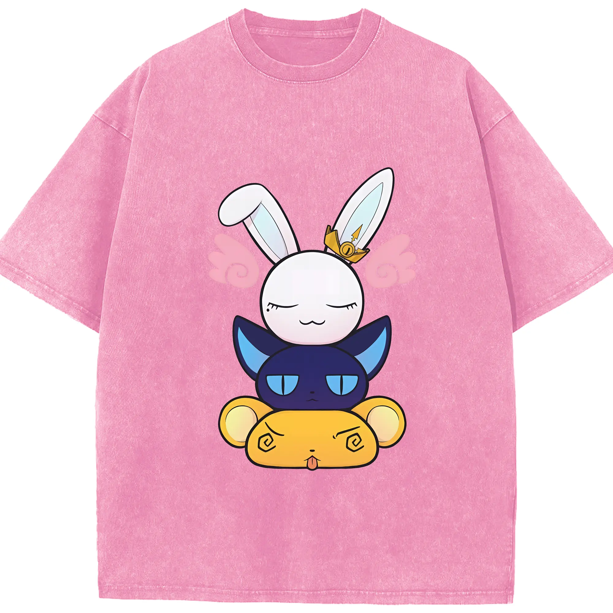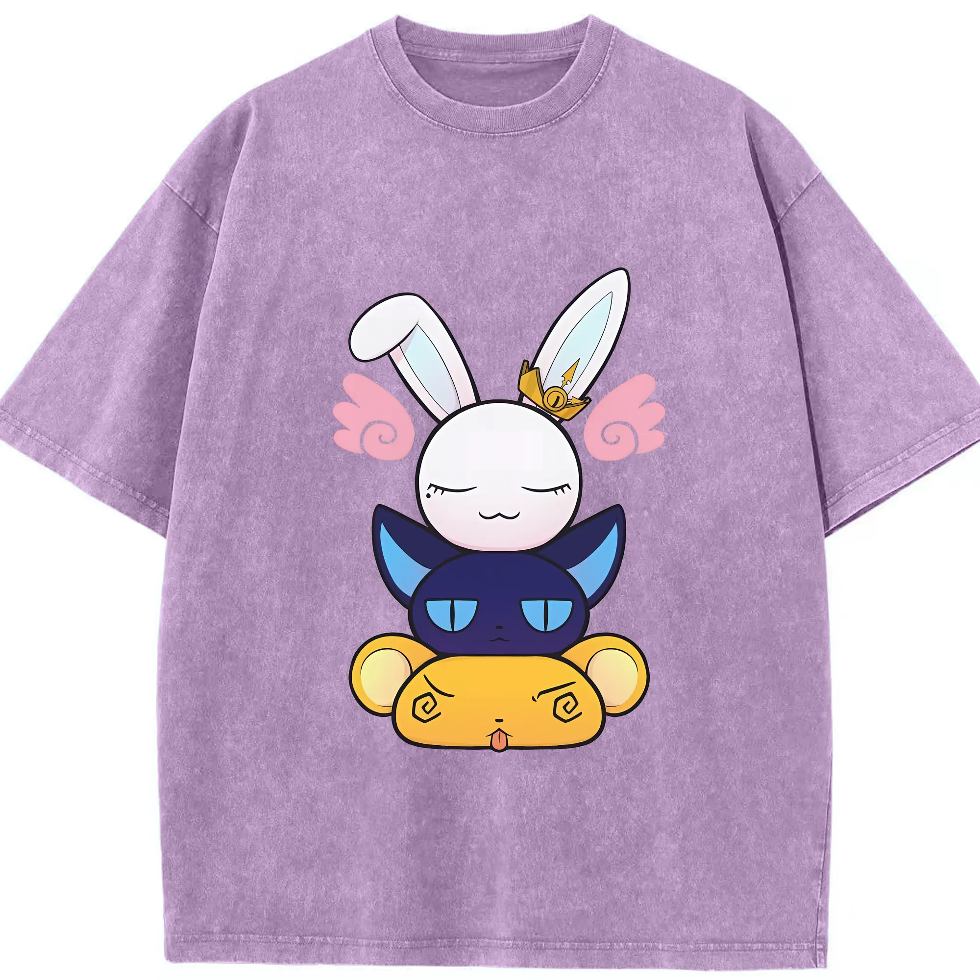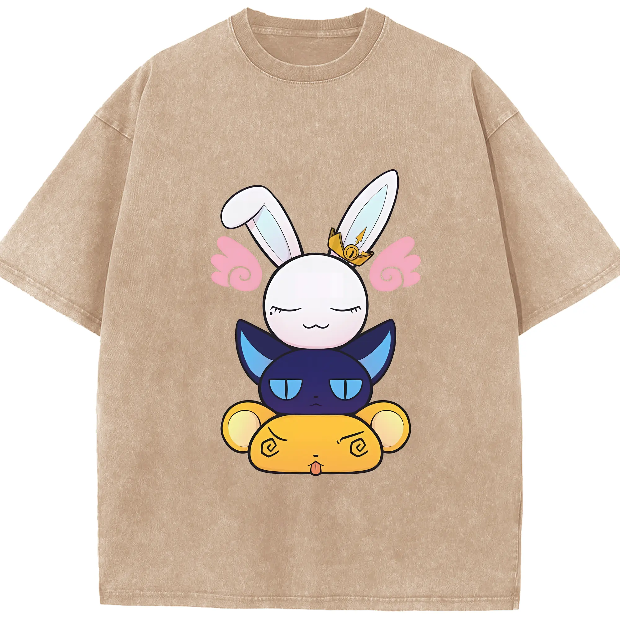 カードキャプターさくら グッズ,モモ - 綿100% ヴィンテージ風 半袖Tシャツ ・ 背面プリント ・ 柔らか肌触り ・ 通気性 快適 ・ スポーツ カジュアル 外出用