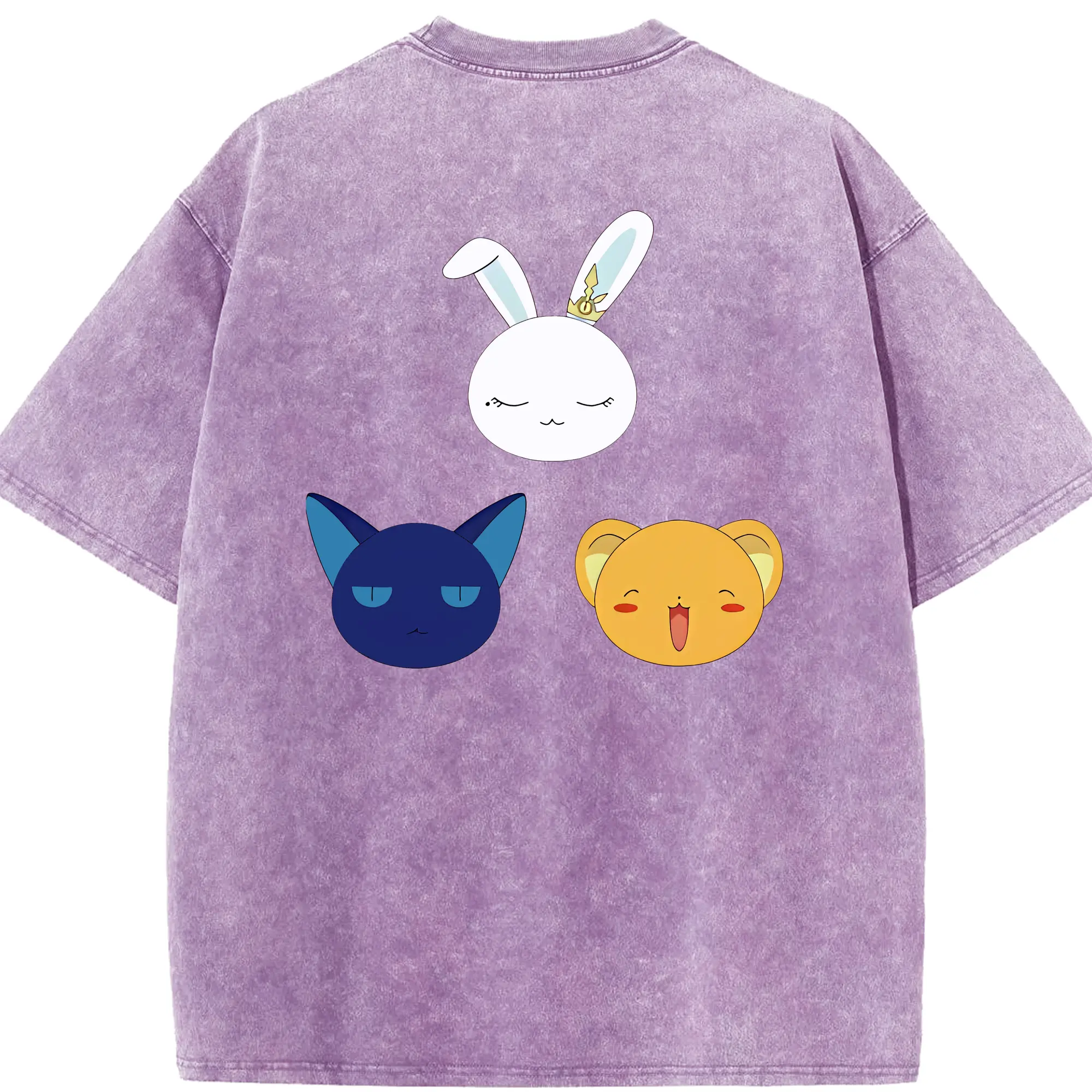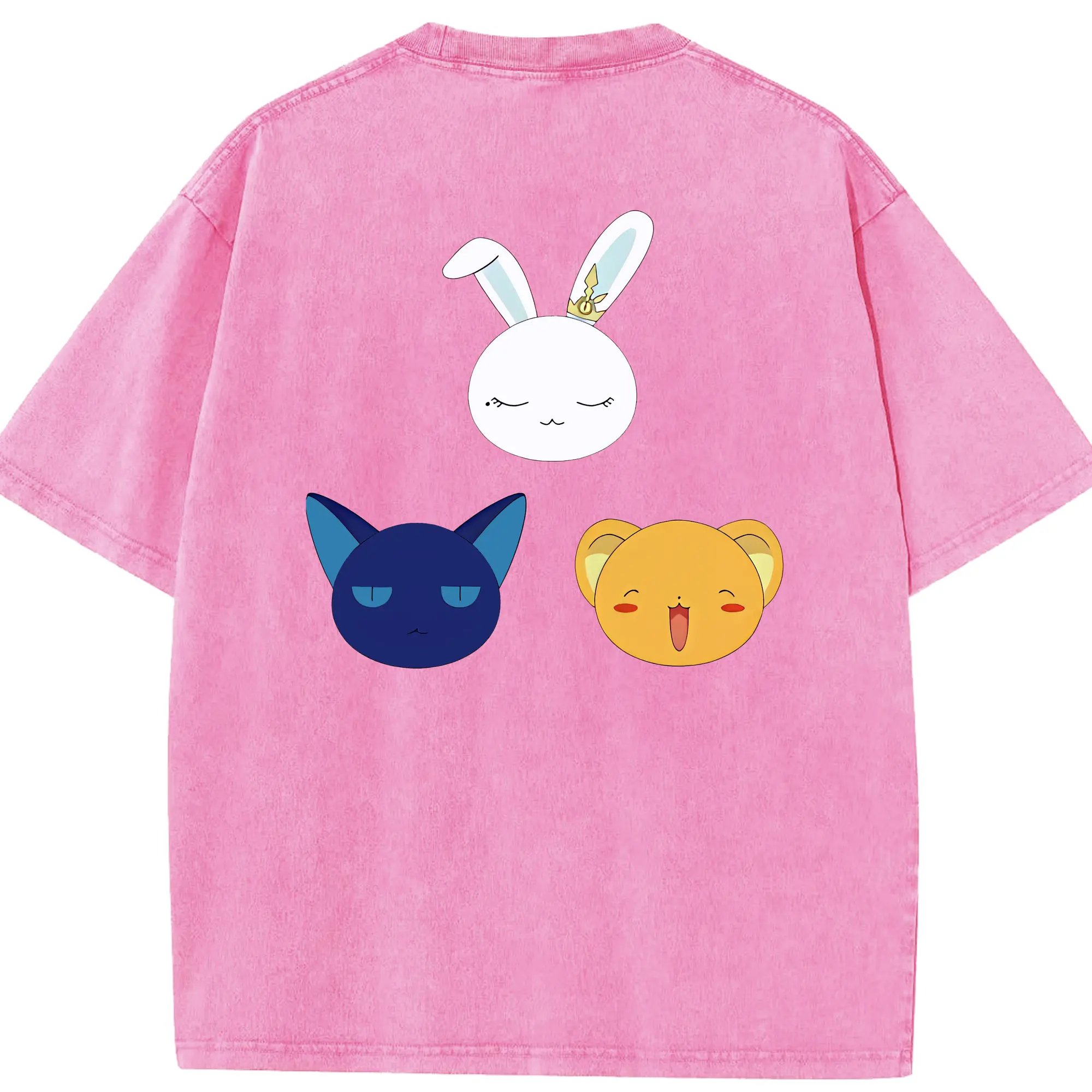 カードキャプターさくら グッズ,モモ - 綿100% ヴィンテージ風 半袖Tシャツ ・ フロントプリント ・ 柔らか肌触り ・ 通気性 快適 ・ スポーツ カジュアル 外出用