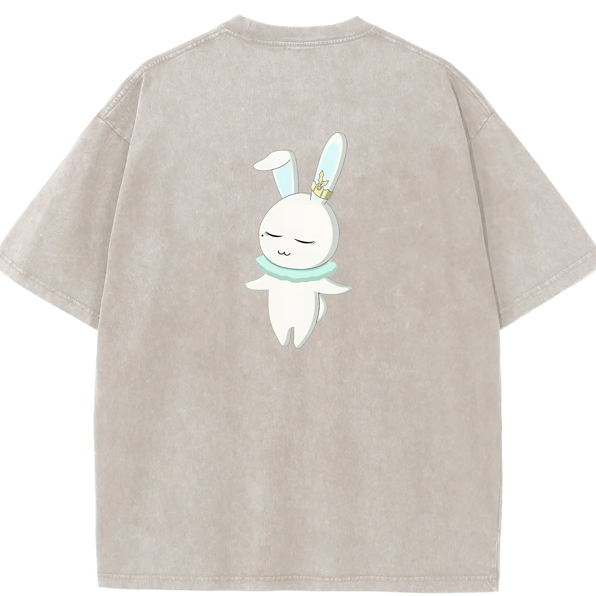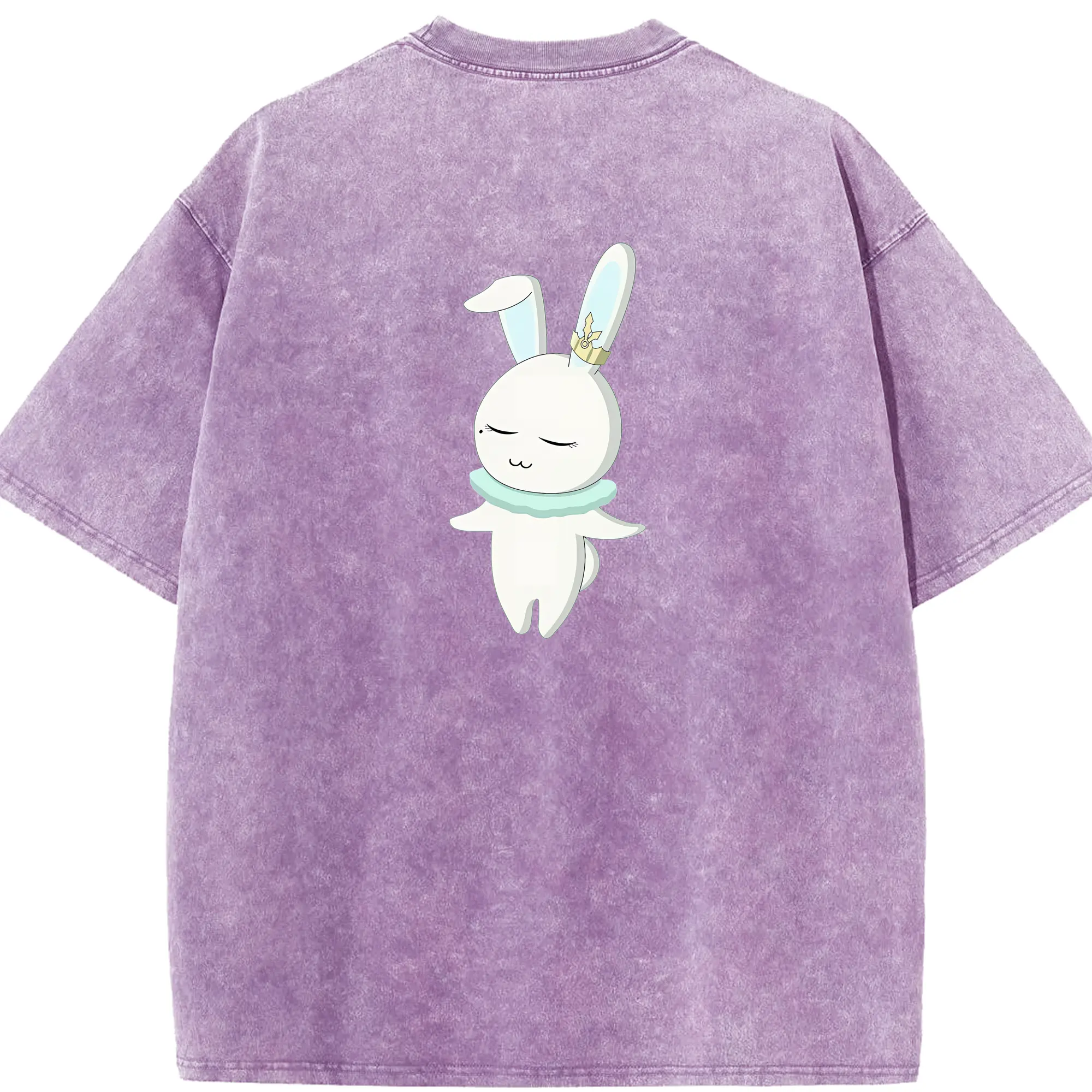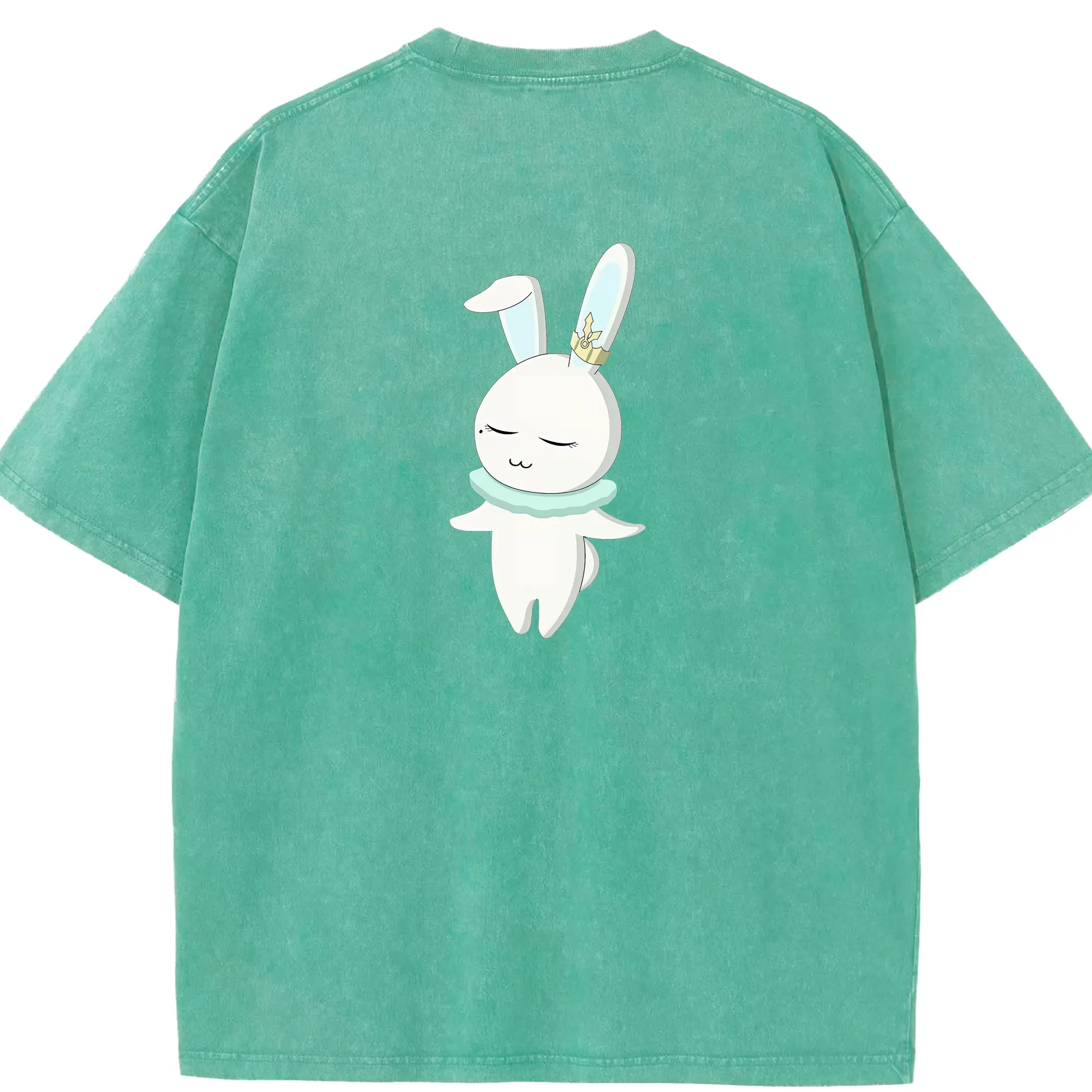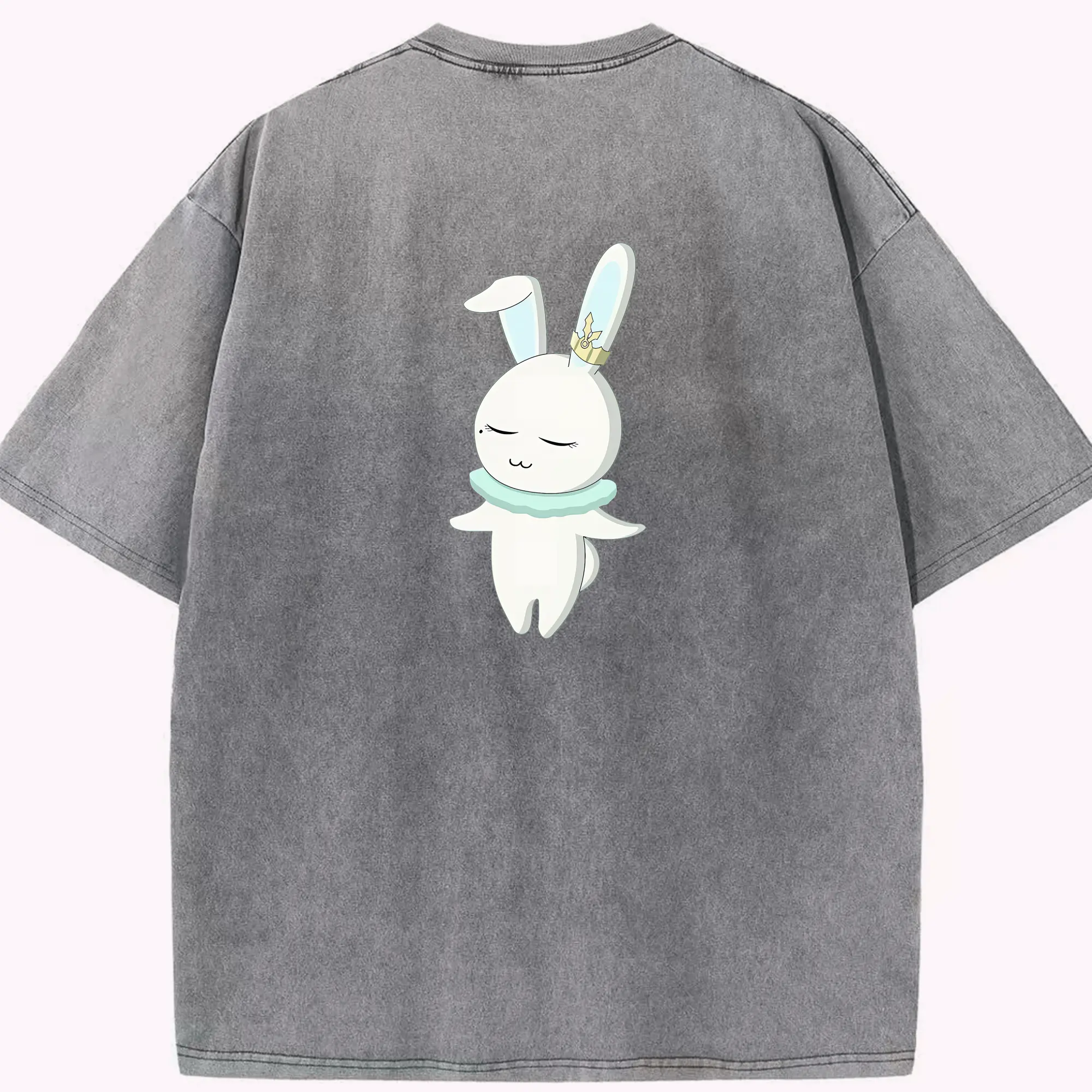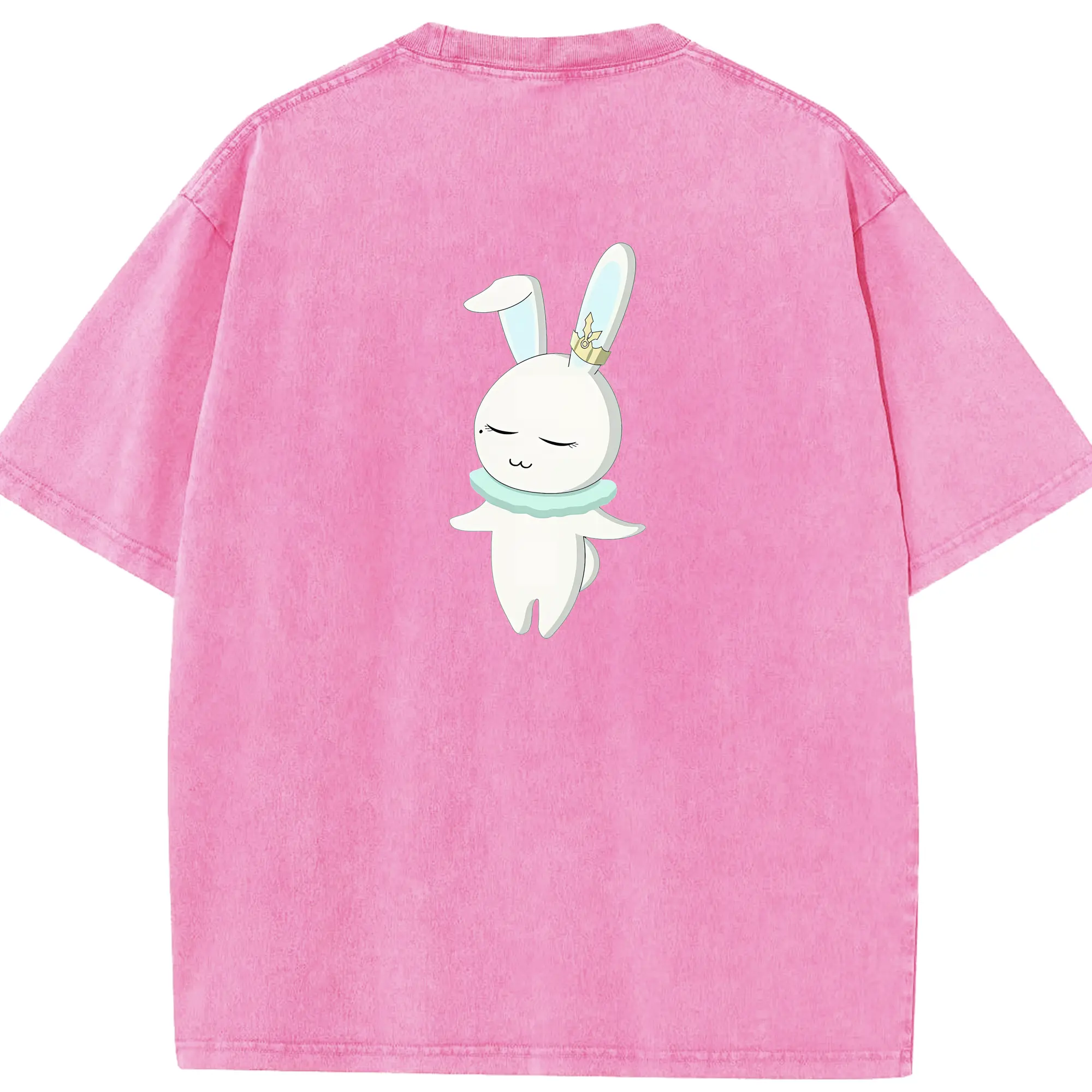 ラブブ グッズ ラブブ - 綿100% ヴィンテージ風 半袖Tシャツ ・ 背面プリント ・ 柔らか肌触り ・ 通気性 快適 ・ スポーツ カジュアル 外出用