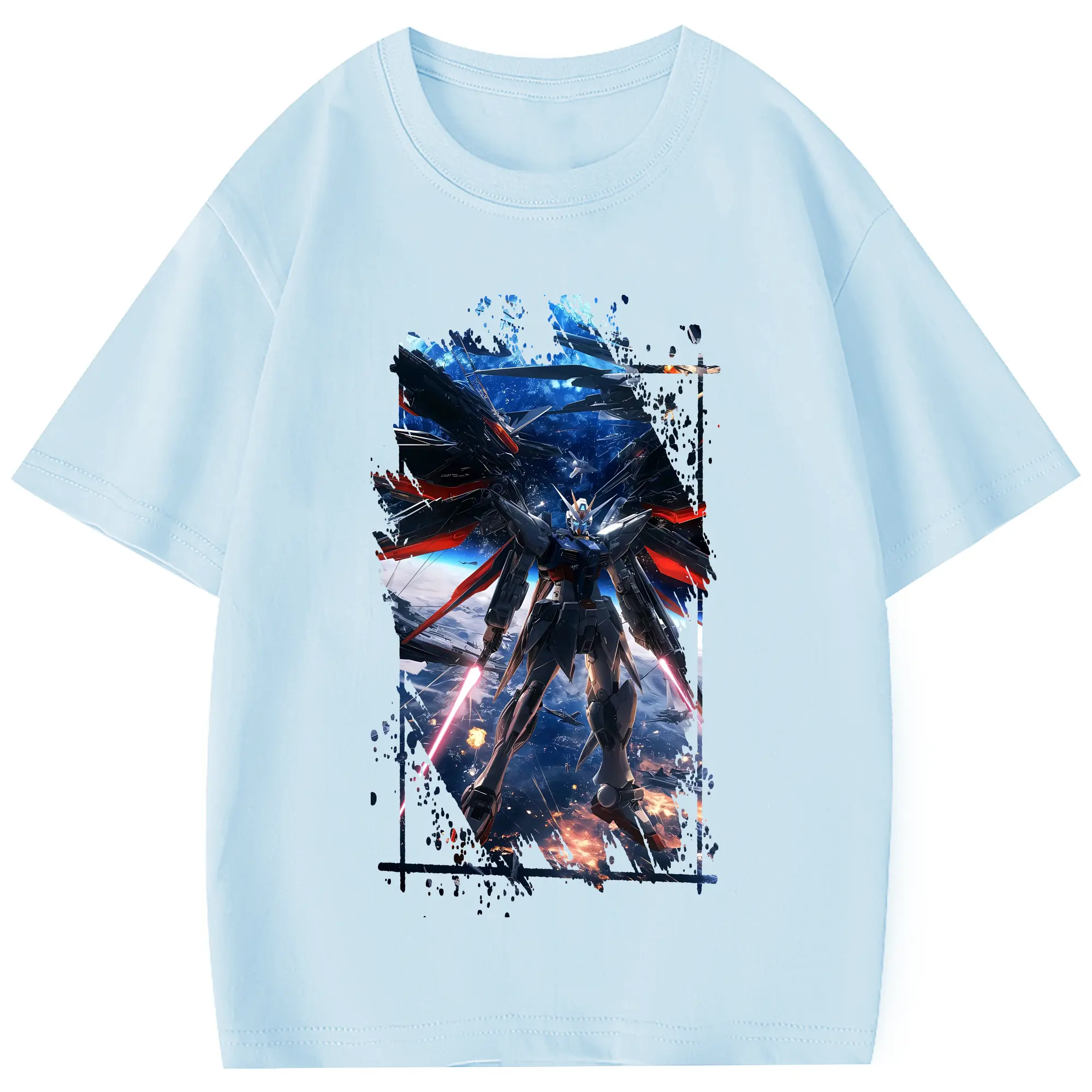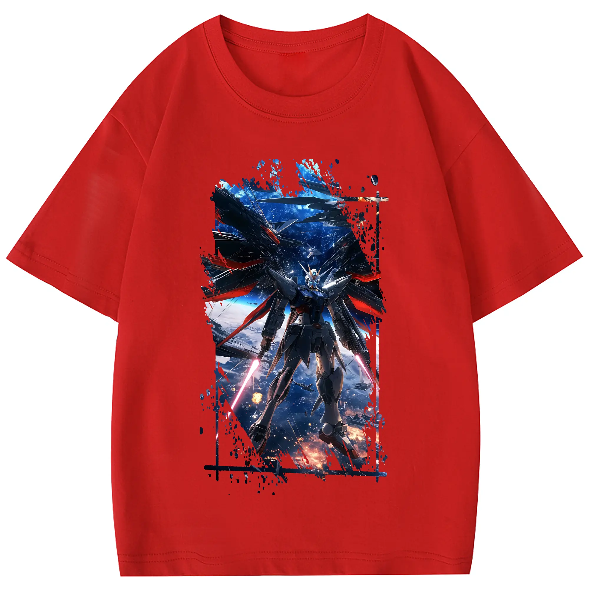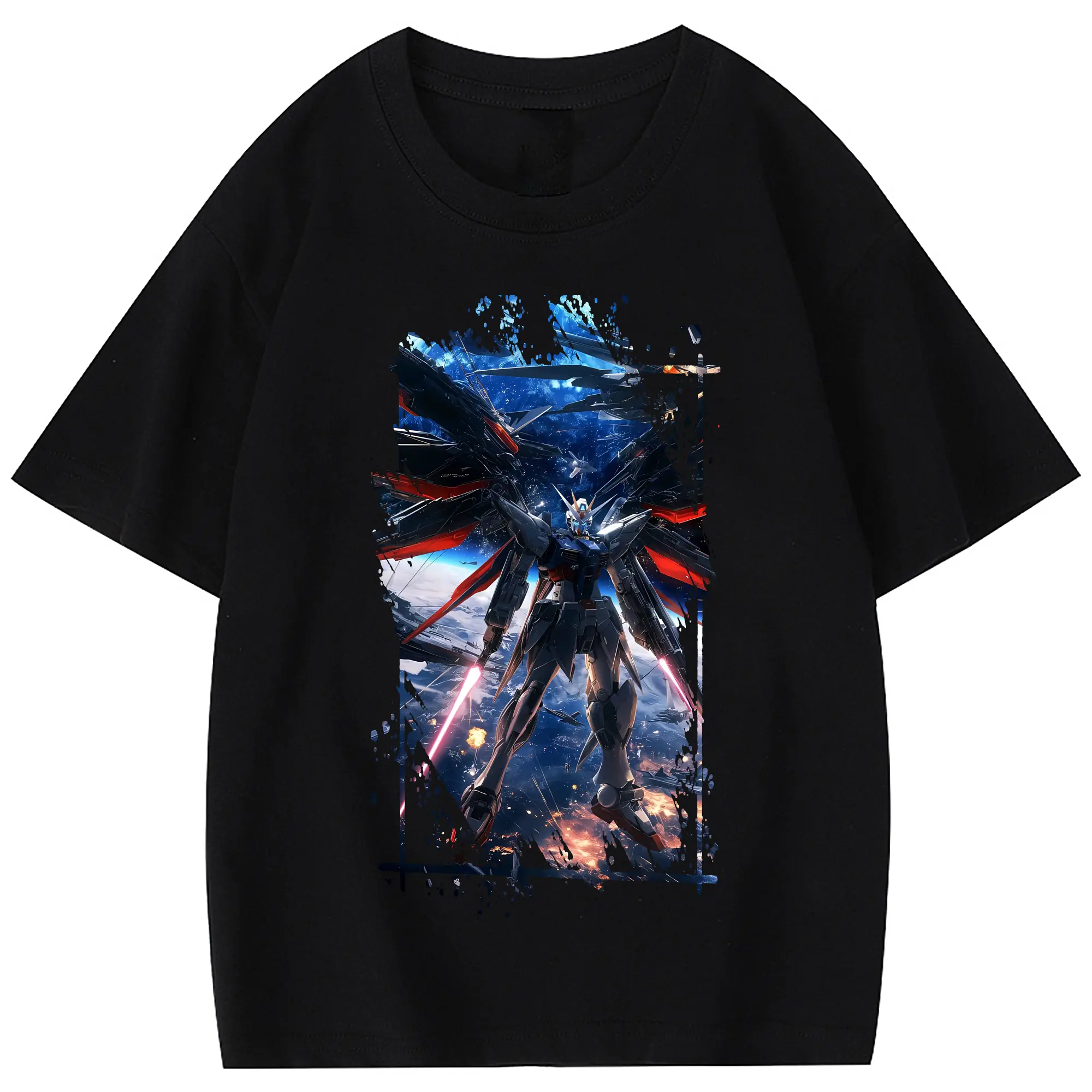 ガンダム グッズ,νガンダム - 綿100% 半袖Tシャツ ・ フロントプリント ・ 快適 通気性 ・ 日常使い 散歩 スポーツ用