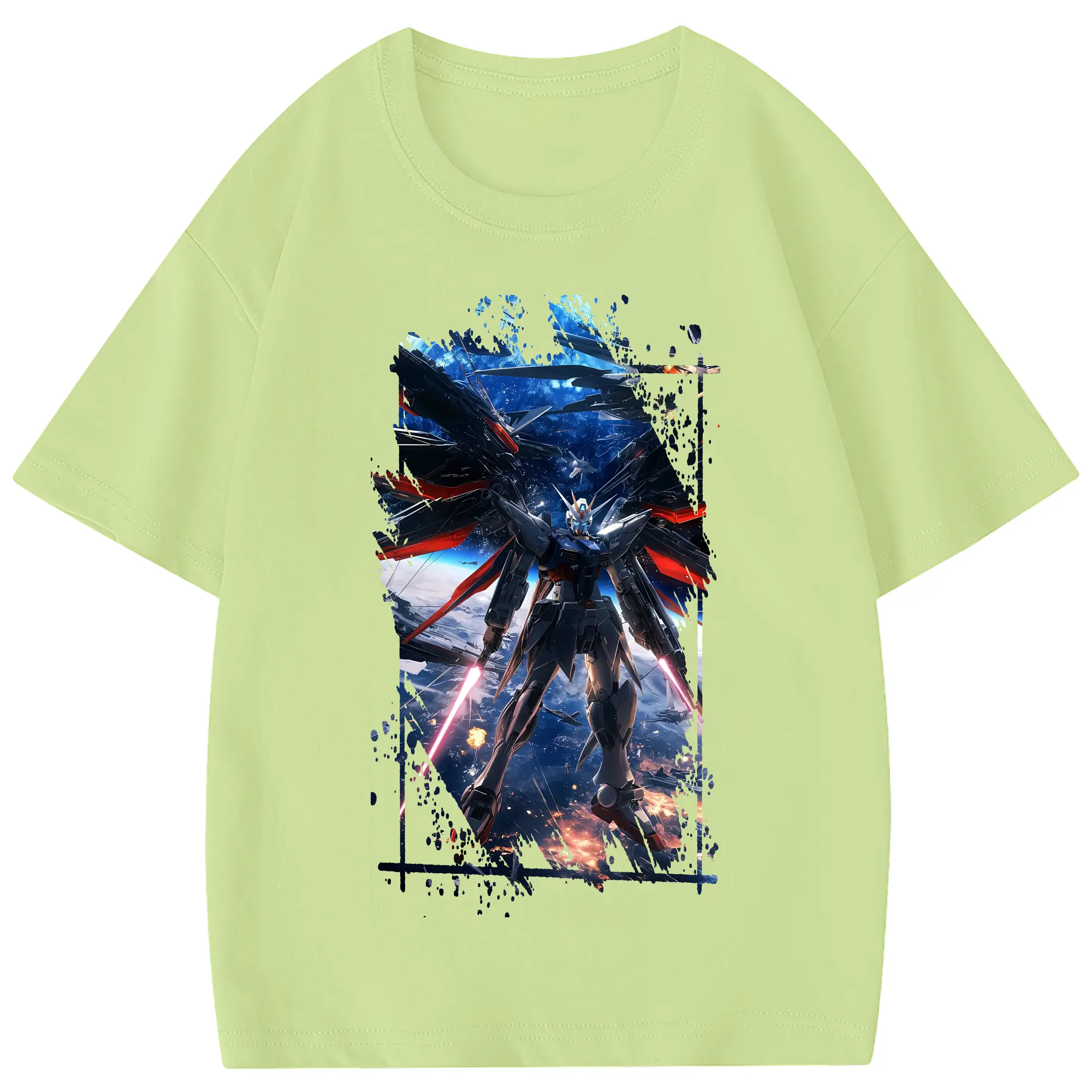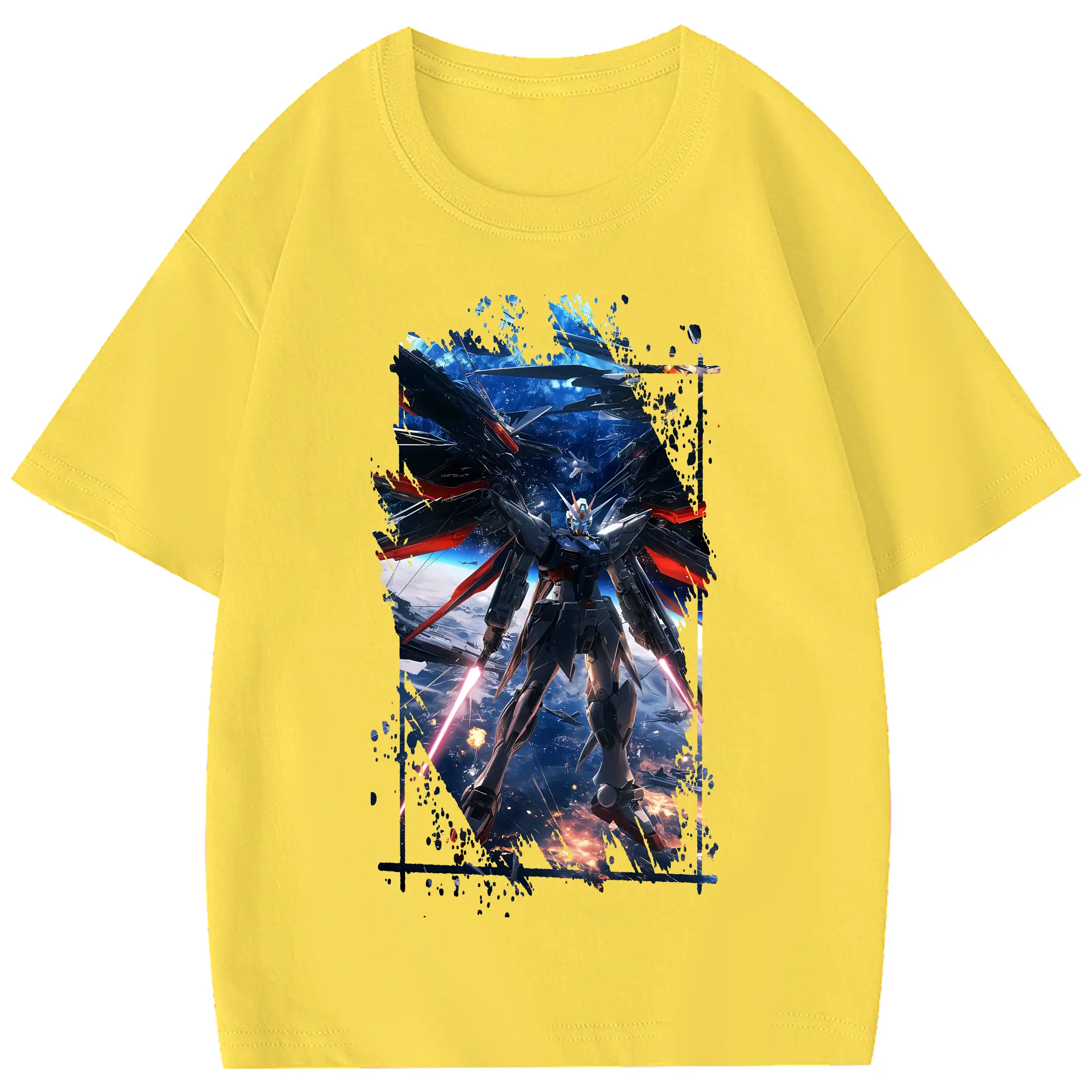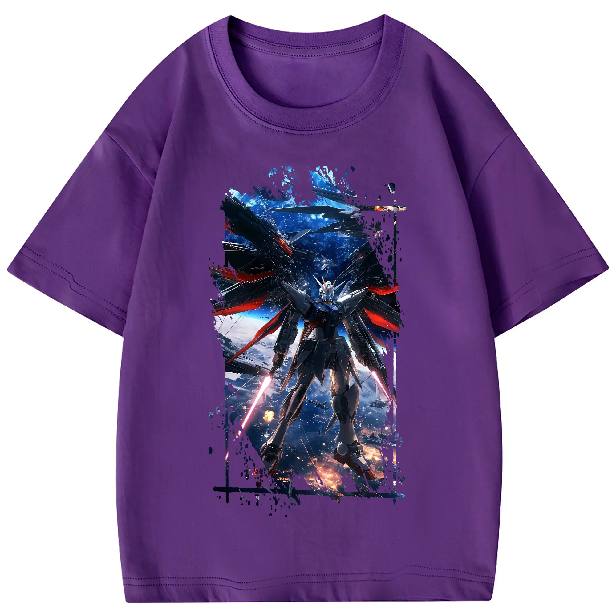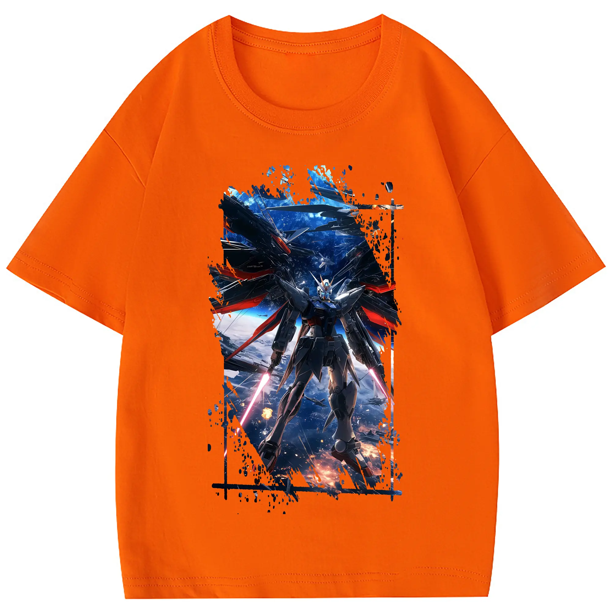 ガンダム グッズ,νガンダム - 綿100% 半袖Tシャツ ・ フロントプリント ・ 快適 通気性 ・ 日常使い 散歩 スポーツ用