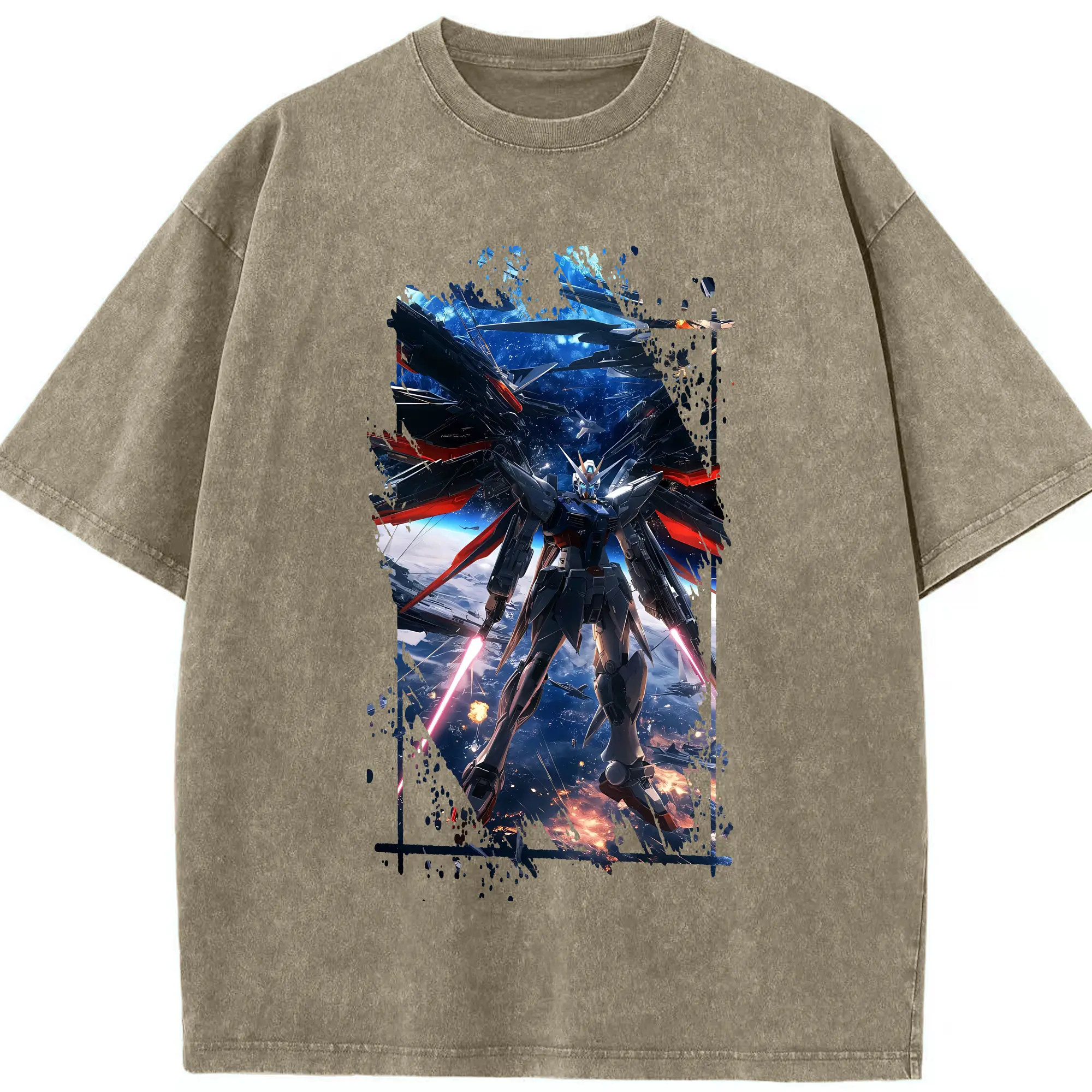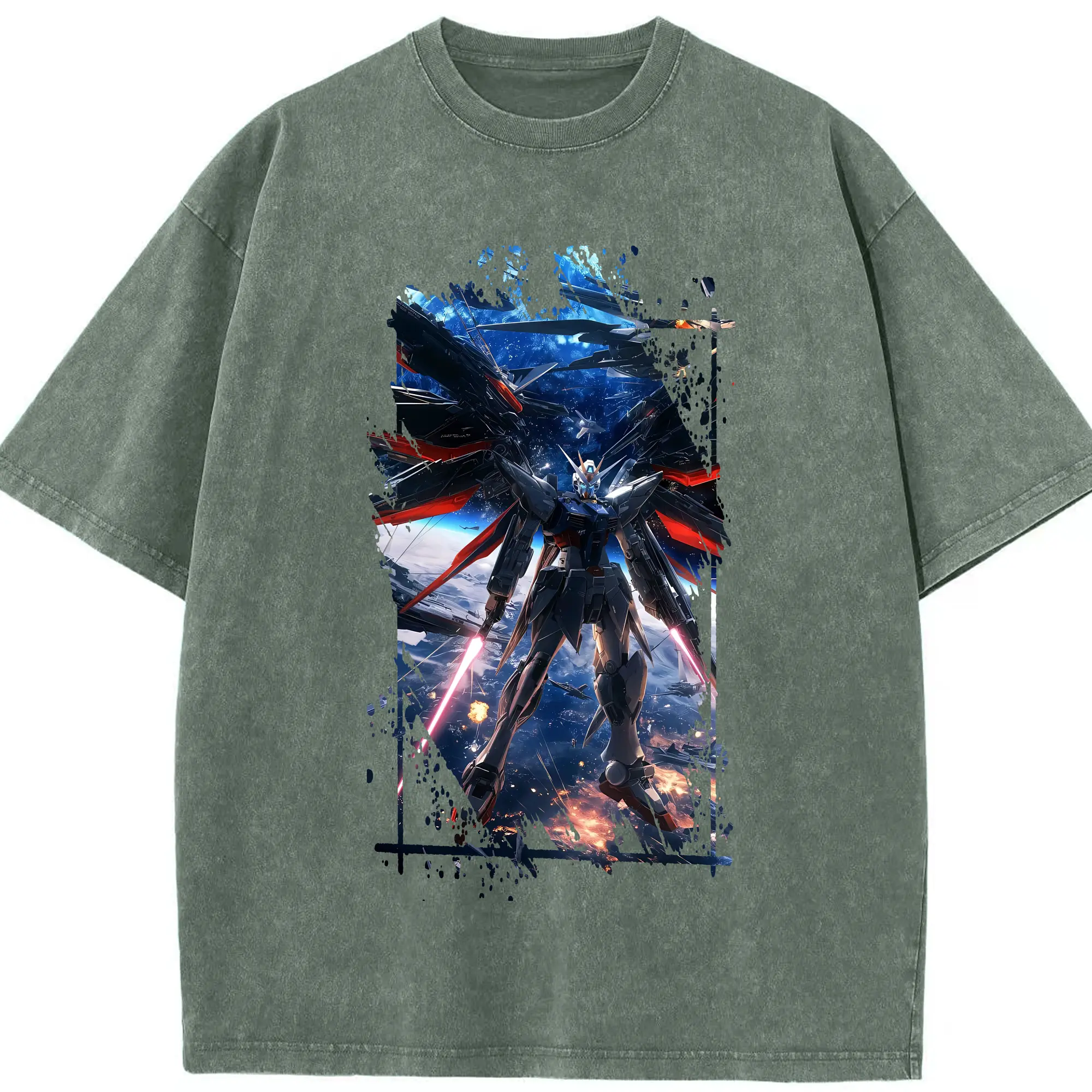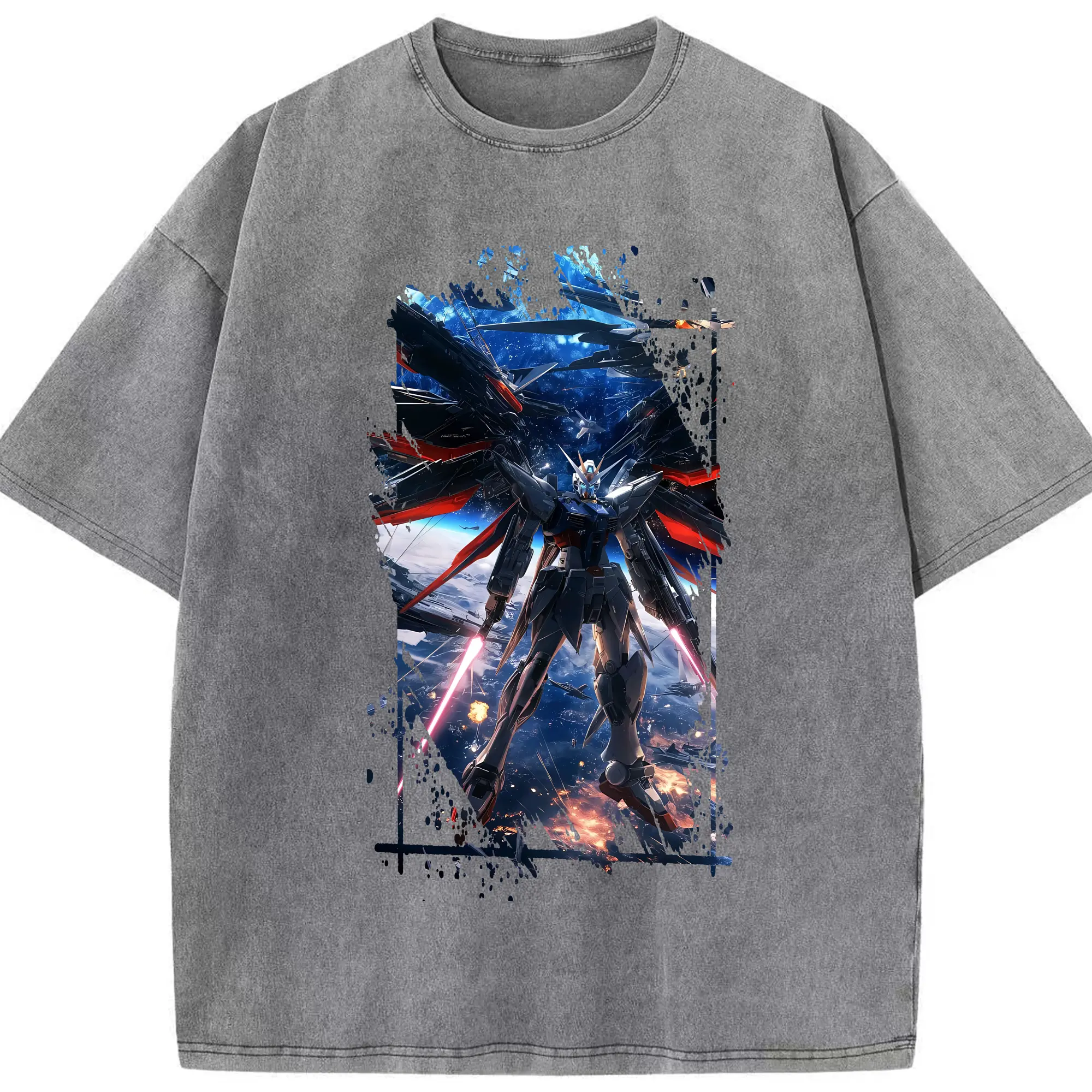 ガンダム グッズ,νガンダム - 綿100% ヴィンテージ風 半袖Tシャツ ・ 背面プリント ・ 柔らか肌触り ・ 通気性 快適 ・ スポーツ カジュアル 外出用