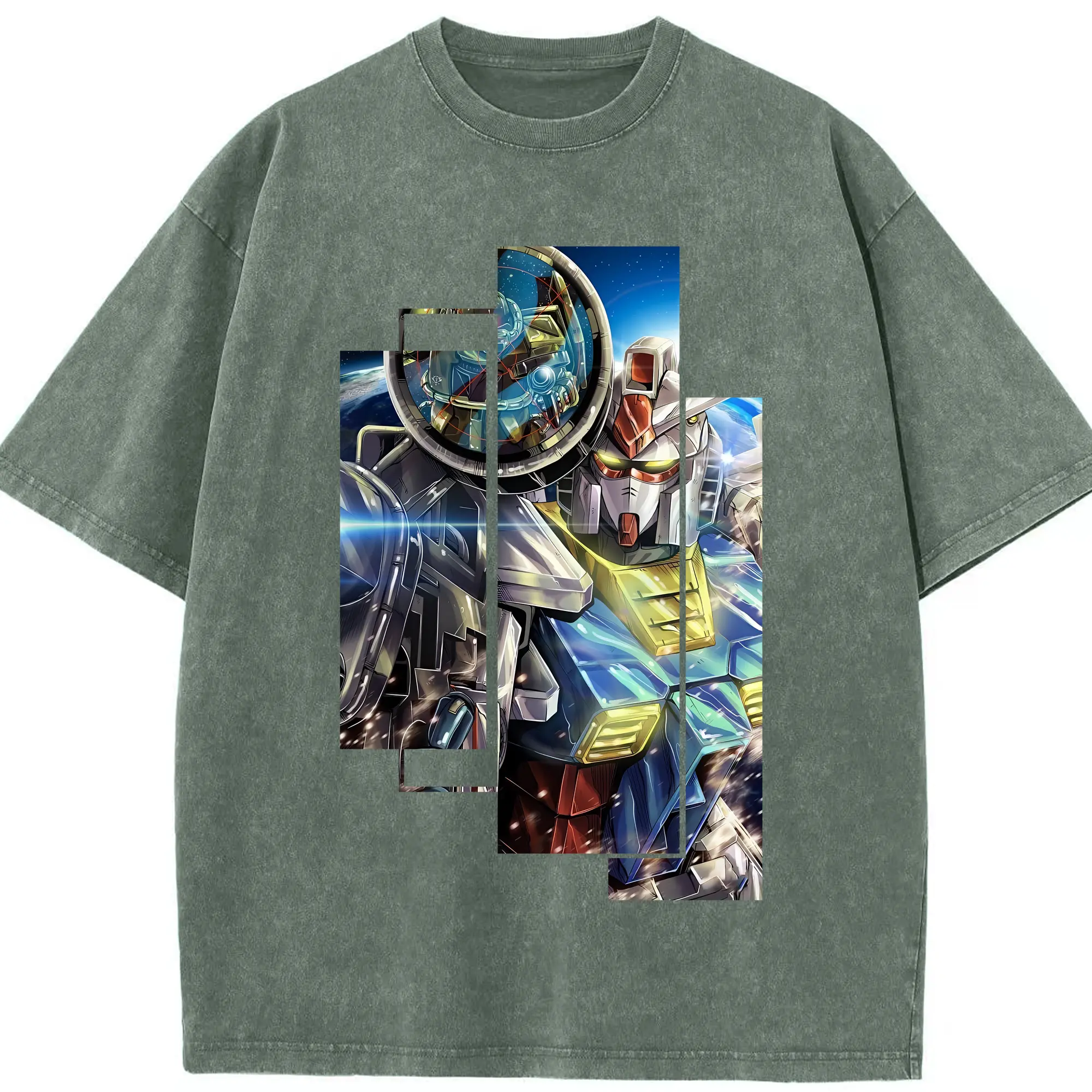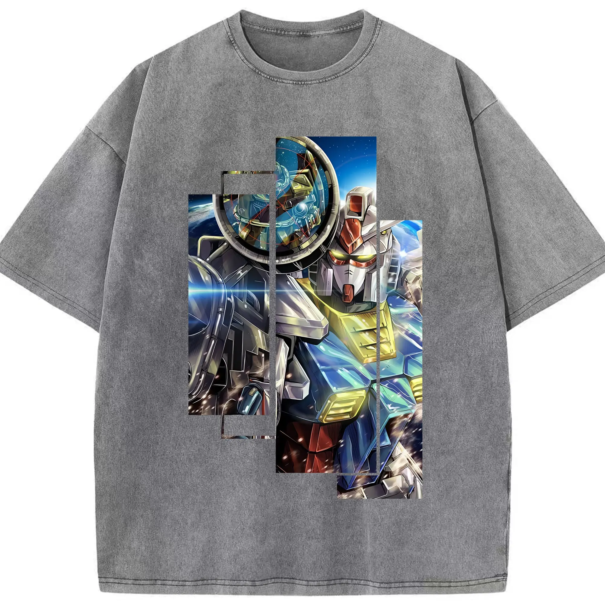ガンダム グッズ,νガンダム - 綿100% ヴィンテージ風 半袖Tシャツ ・ 背面プリント ・ 柔らか肌触り ・ 通気性 快適 ・ スポーツ カジュアル 外出用
