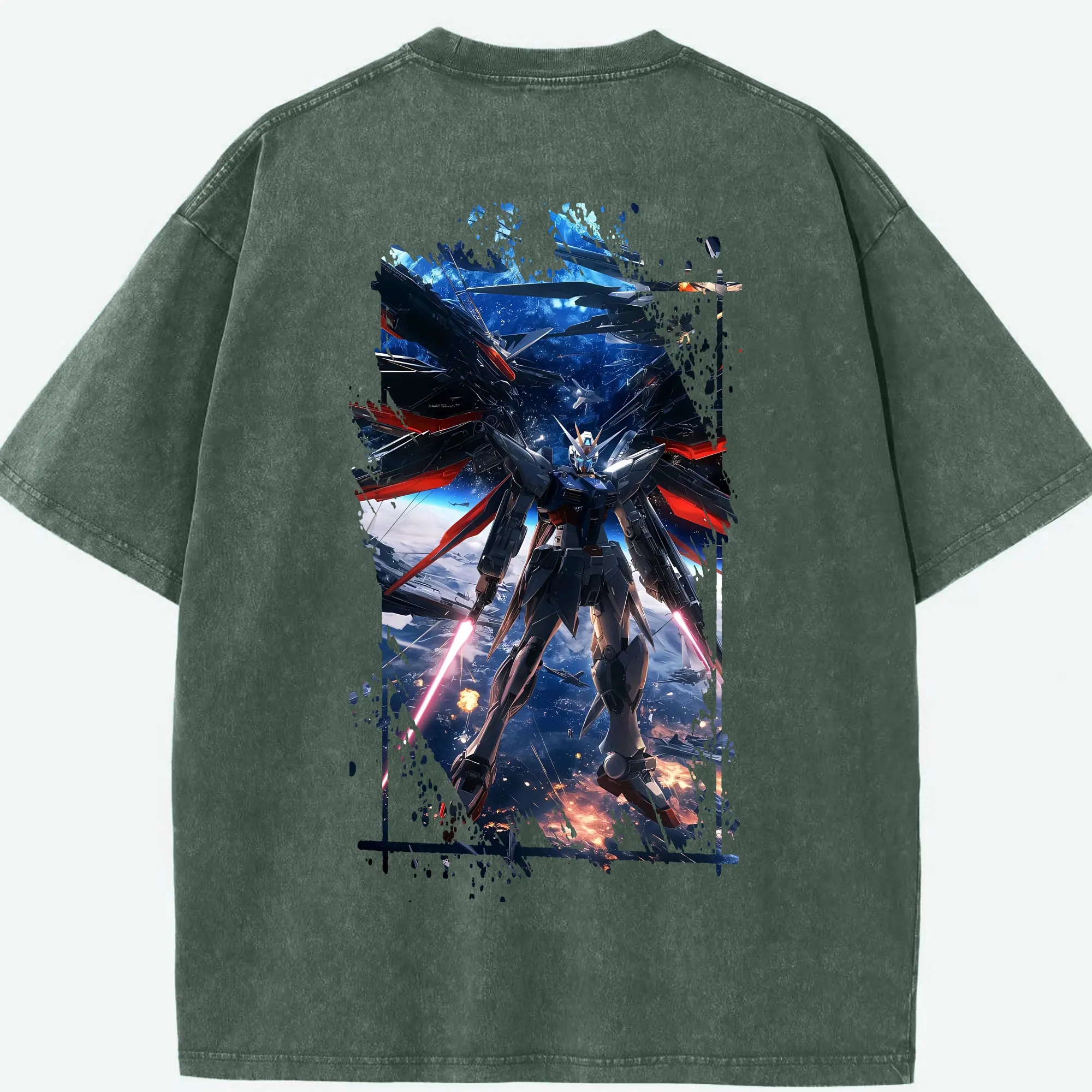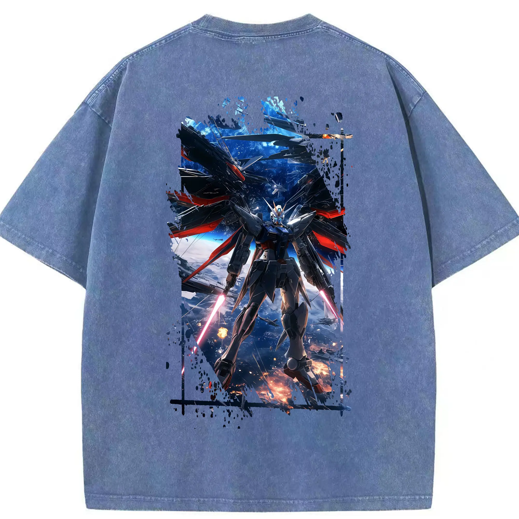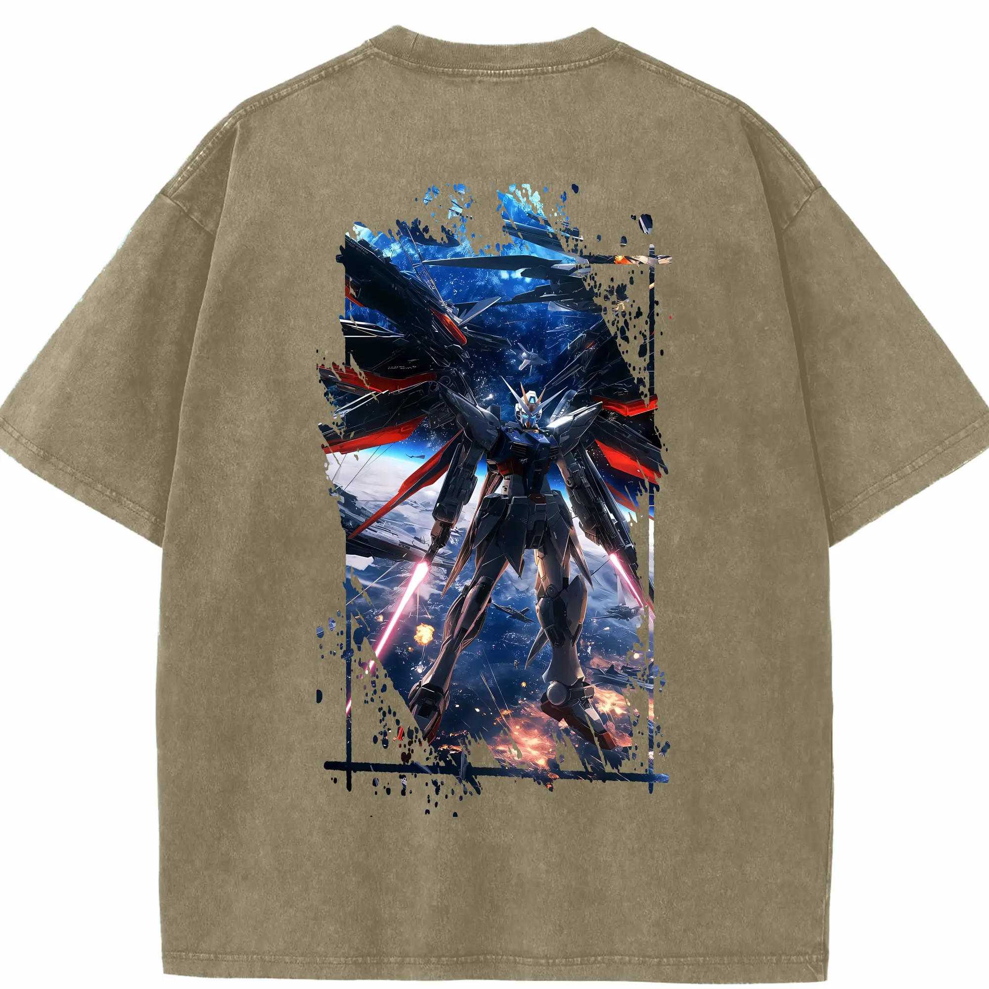 ガンダム グッズ,νガンダム - 綿100% ヴィンテージ風 半袖Tシャツ ・ フロントプリント ・ 柔らか肌触り ・ 通気性 快適 ・ スポーツ カジュアル 外出用