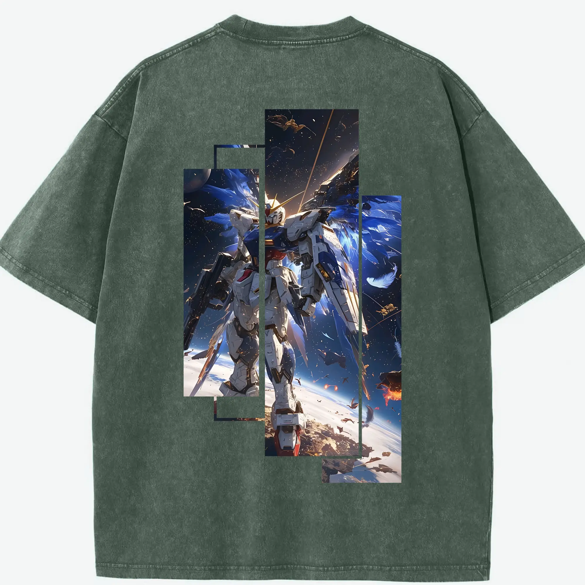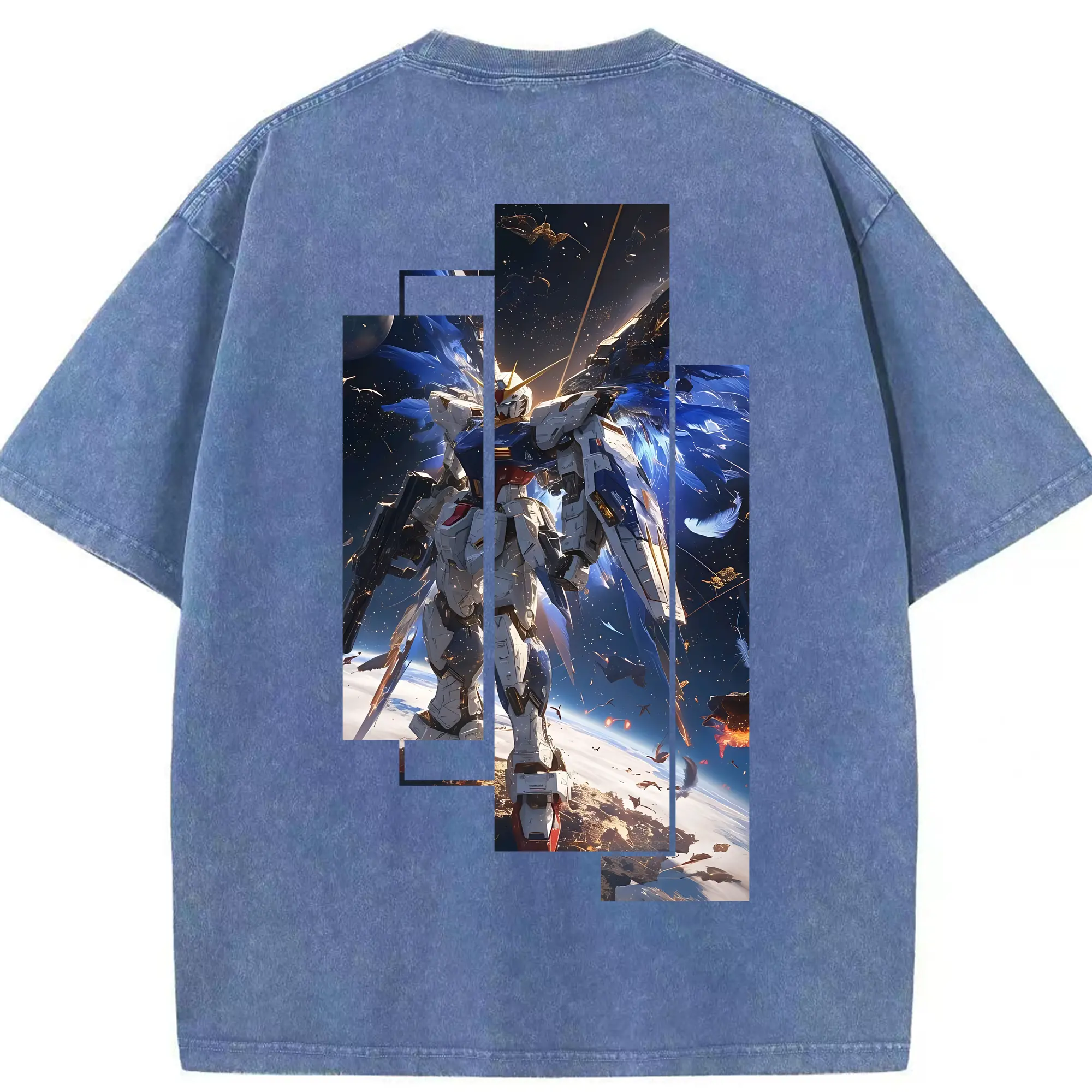 ガンダム グッズ,νガンダム - 綿100% ヴィンテージ風 半袖Tシャツ ・ フロントプリント ・ 柔らか肌触り ・ 通気性 快適 ・ スポーツ カジュアル 外出用