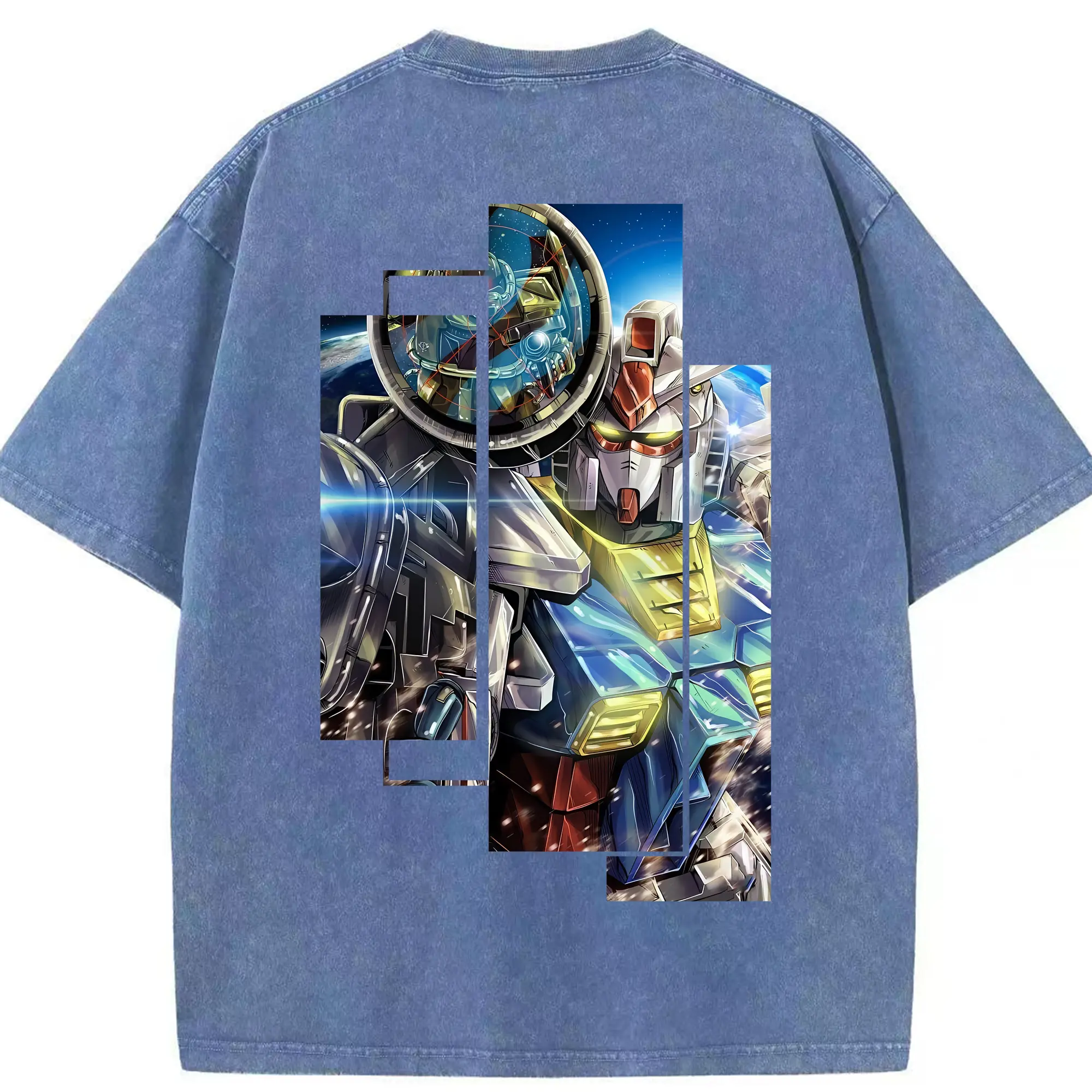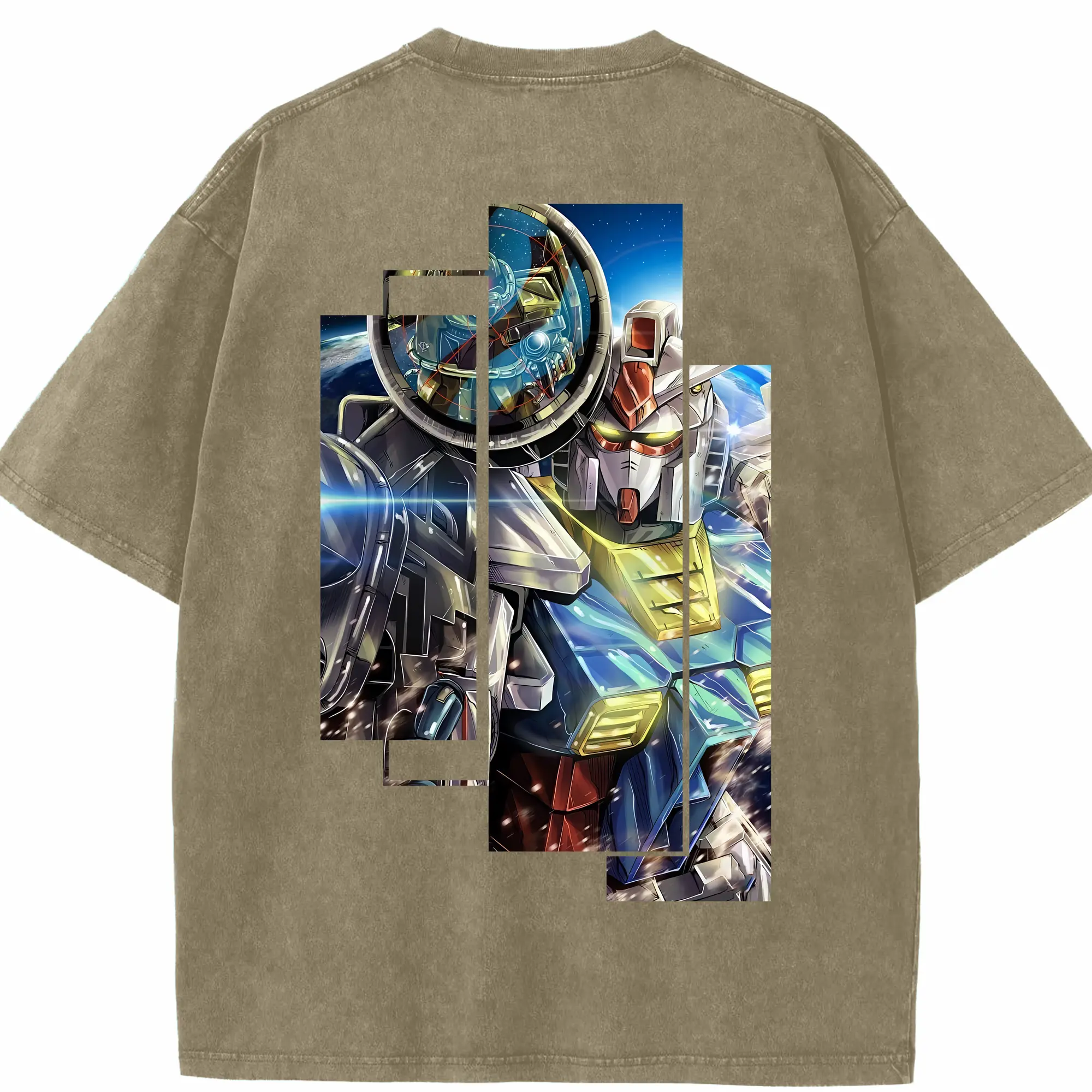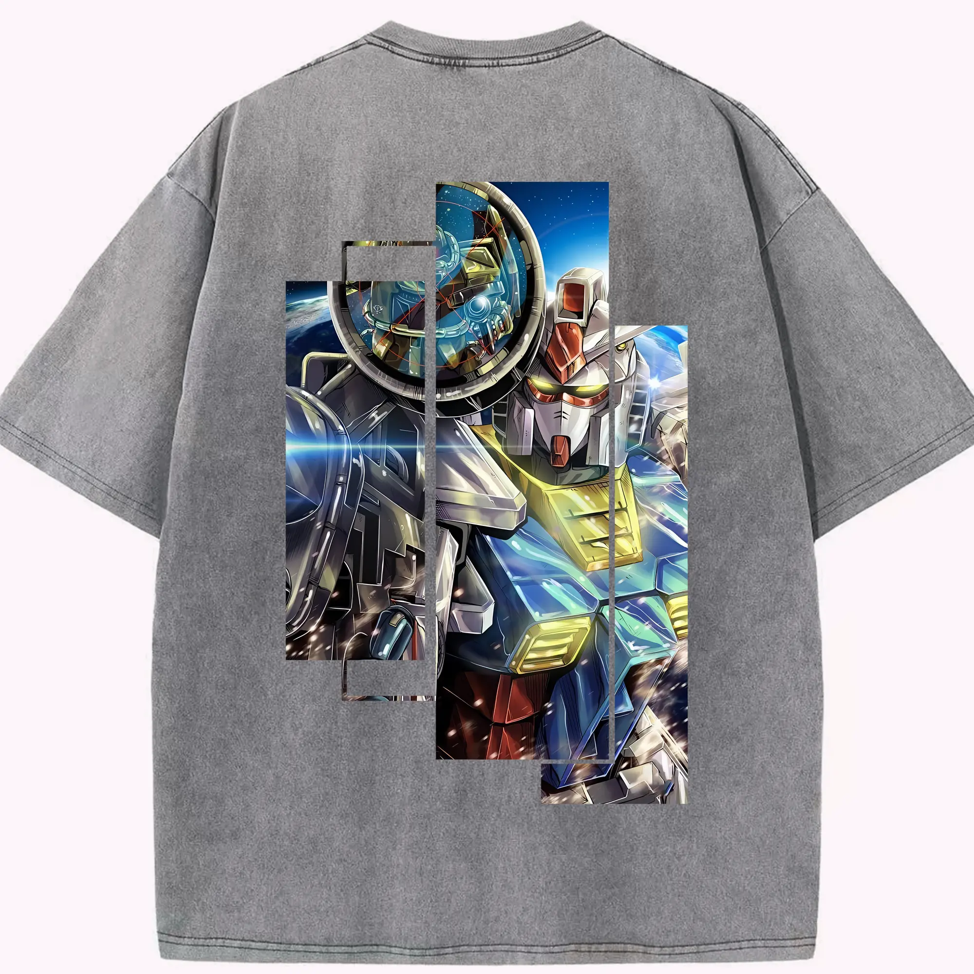 ガンダム グッズ,νガンダム - 綿100% ヴィンテージ風 半袖Tシャツ ・ フロントプリント ・ 柔らか肌触り ・ 通気性 快適 ・ スポーツ カジュアル 外出用