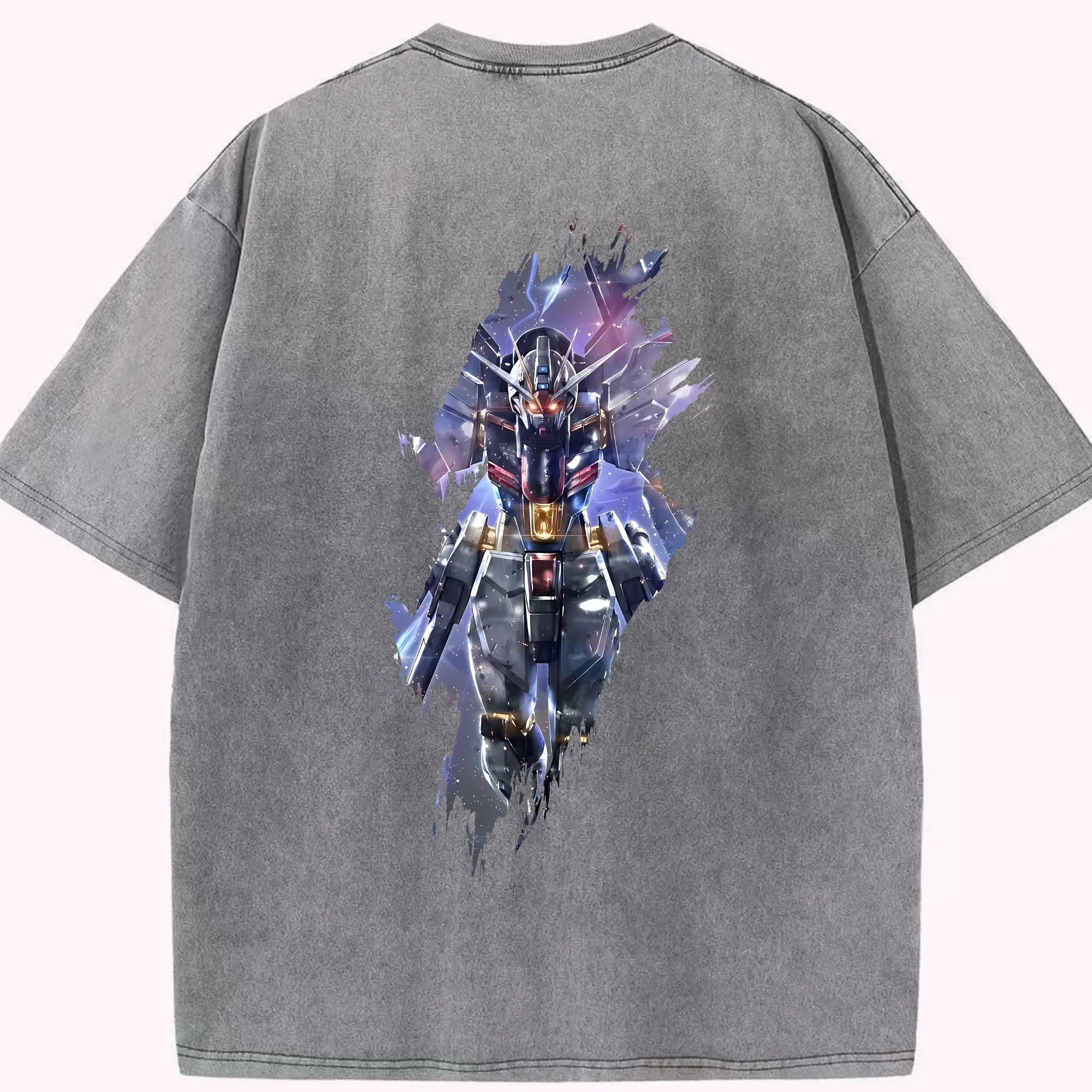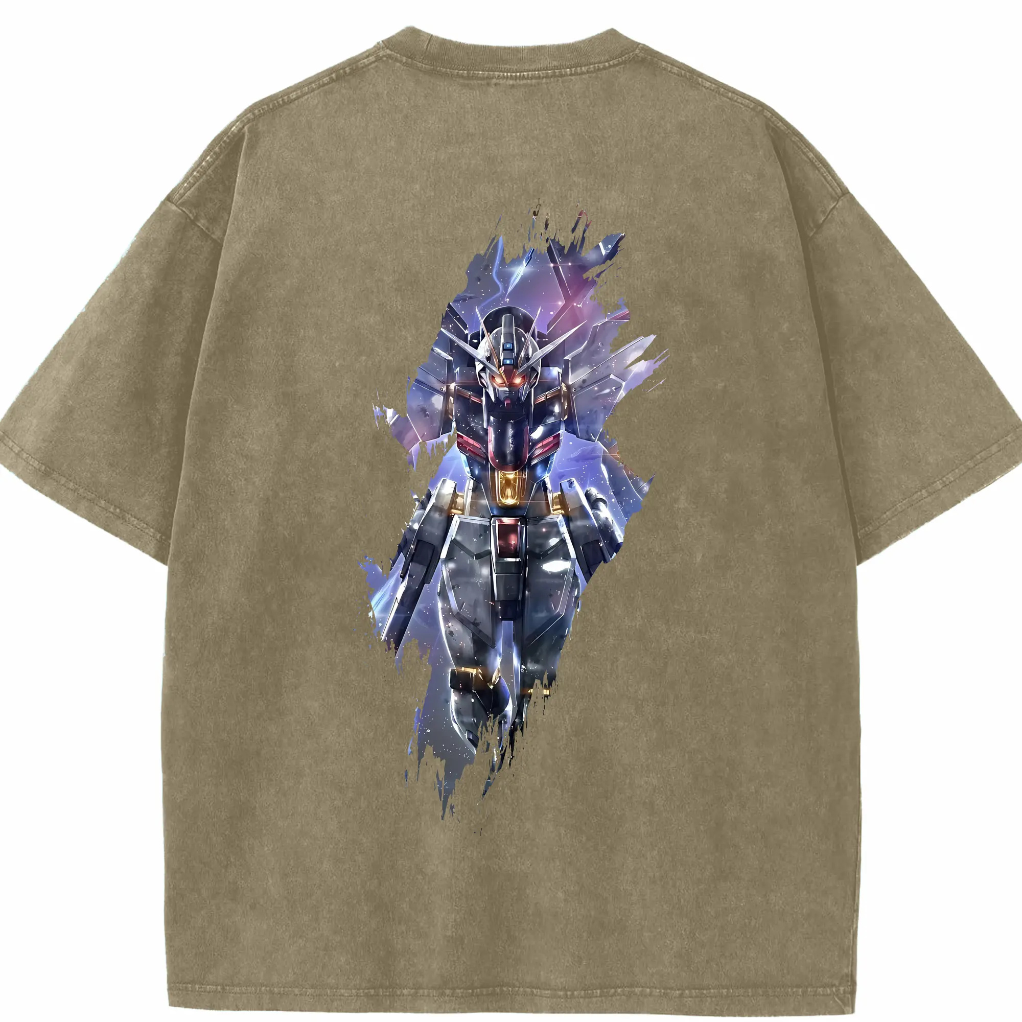 ガンダム グッズ,νガンダム - 綿100% ヴィンテージ風 半袖Tシャツ ・ フロントプリント ・ 柔らか肌触り ・ 通気性 快適 ・ スポーツ カジュアル 外出用