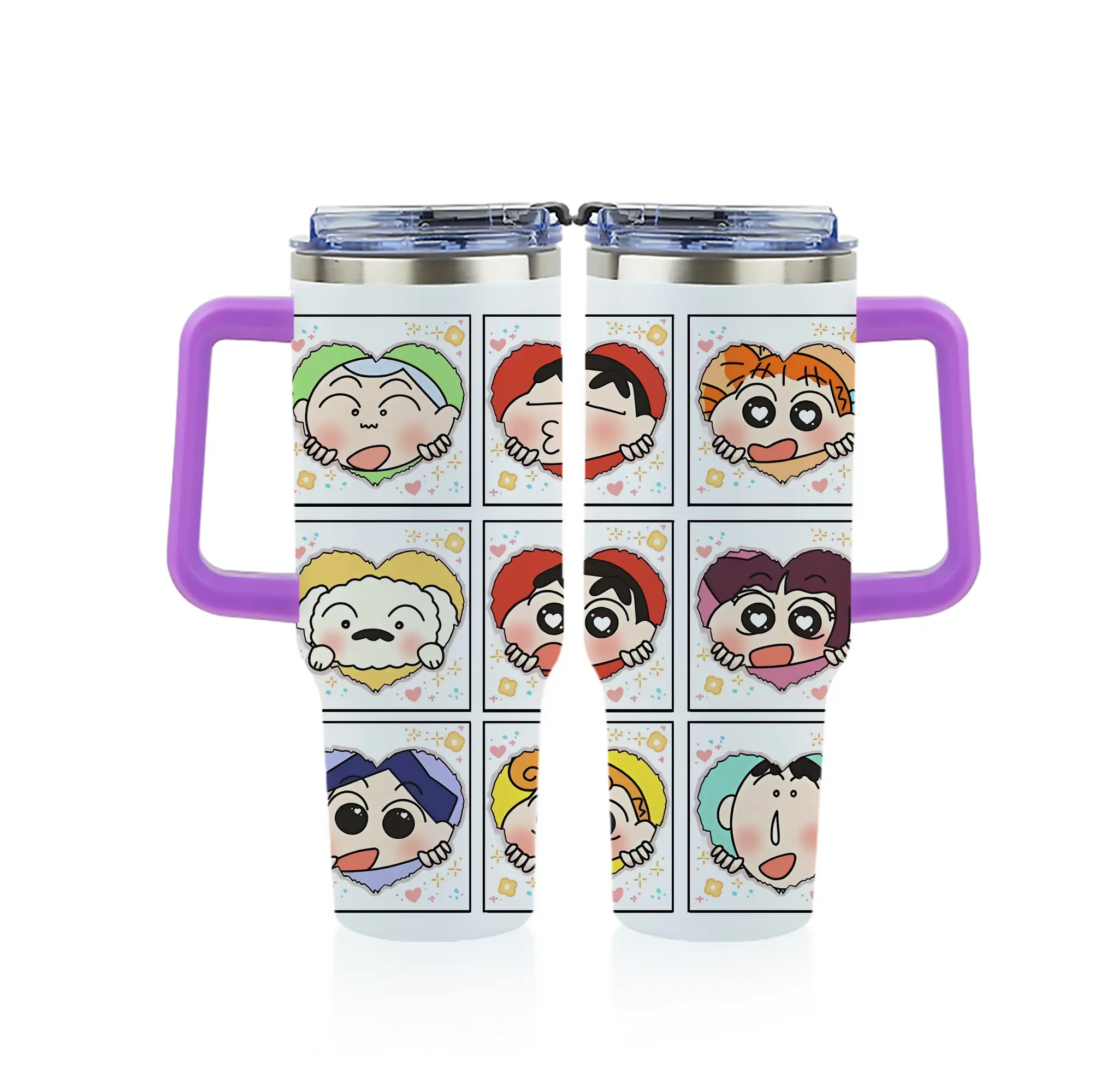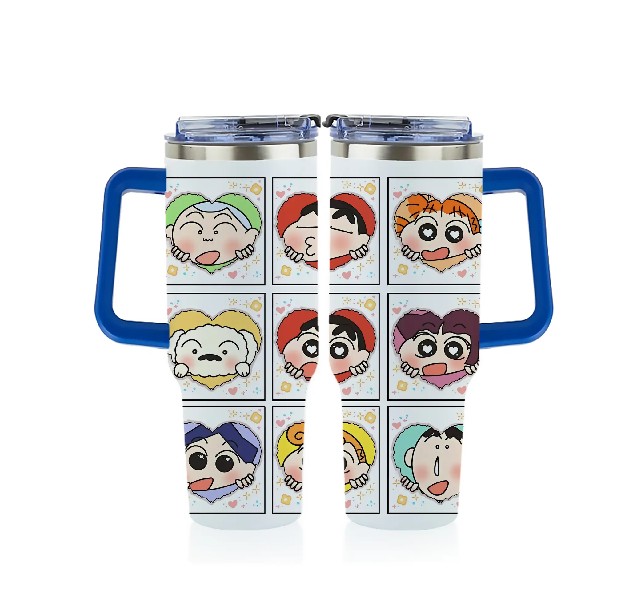 クレヨンしんちゃん グッズ 野原 しんのすけ - 1200mL フルプリント車用タンブラー ・ 304ステンレス 内側 ・ 201ステンレス 外側 ・ 保温 保冷 ・ 通勤 ドライブ アウトドア用