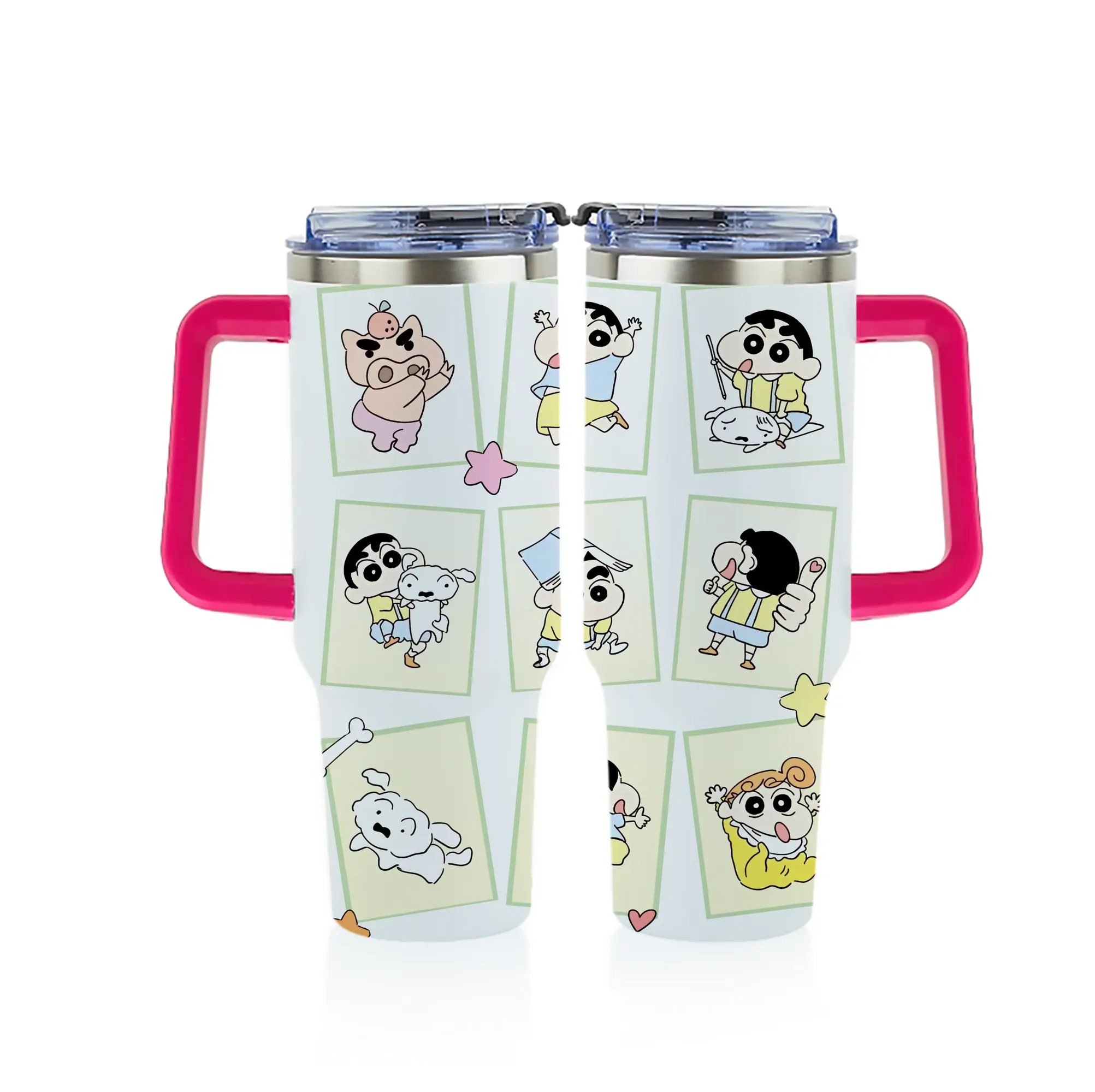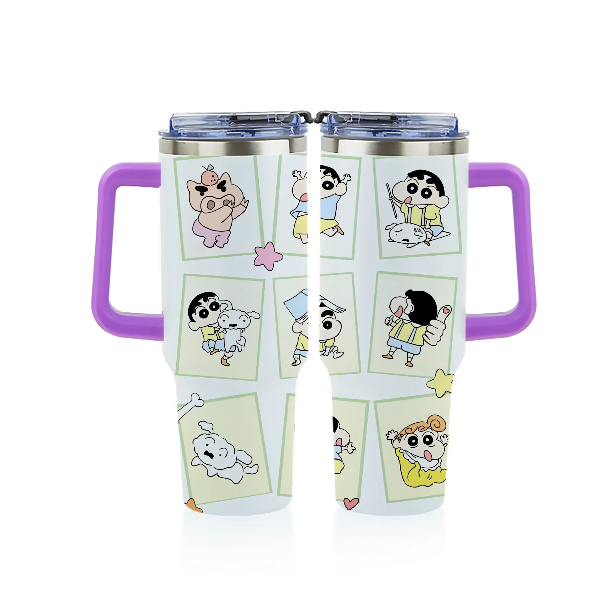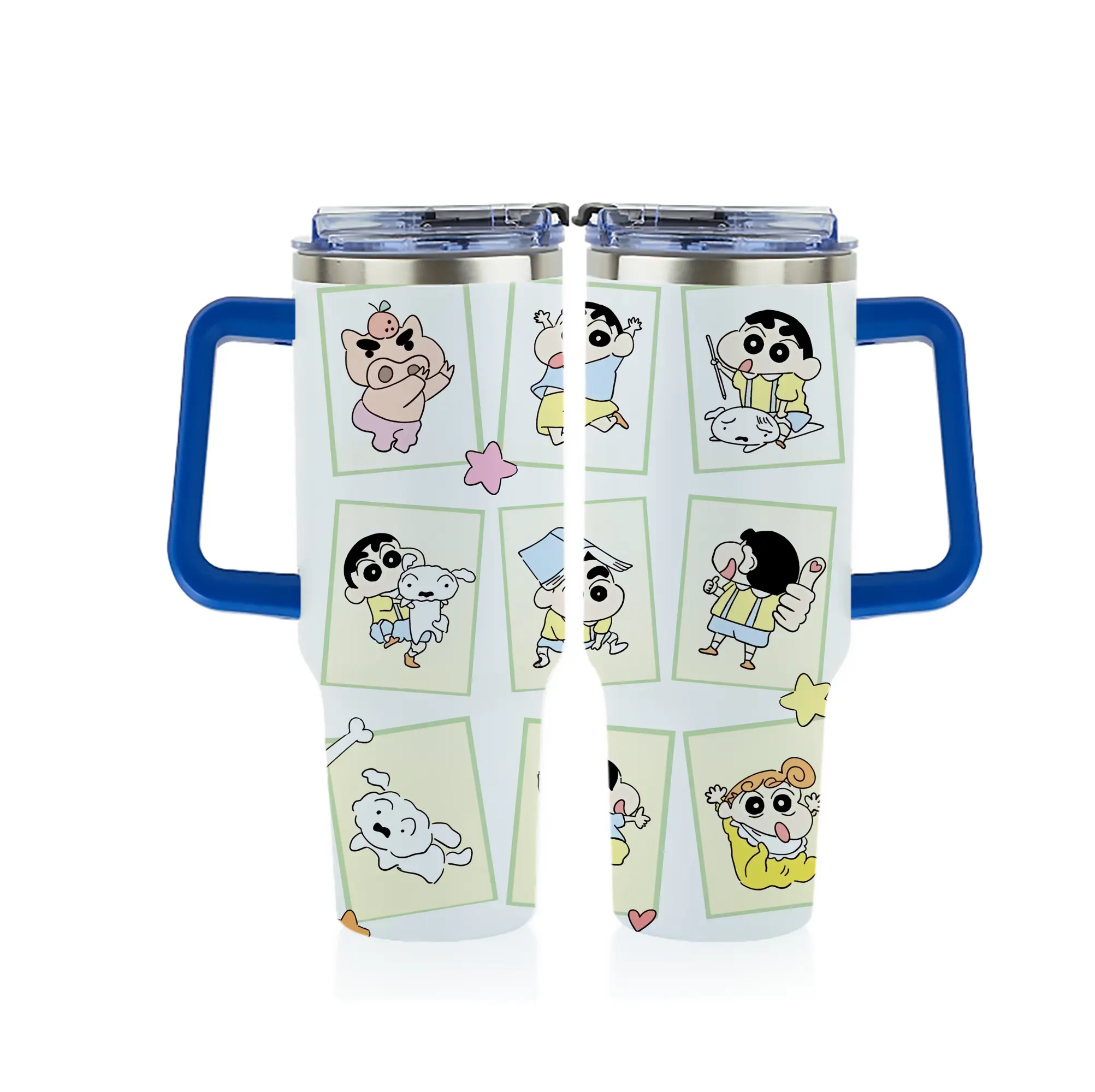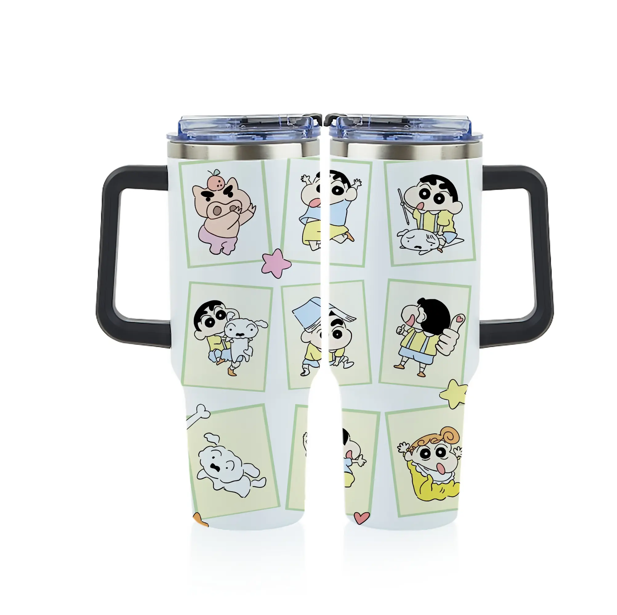 クレヨンしんちゃん グッズ 野原 しんのすけ - 1200mL フルプリント車用タンブラー ・ 304ステンレス 内側 ・ 201ステンレス 外側 ・ 保温 保冷 ・ 通勤 ドライブ アウトドア用