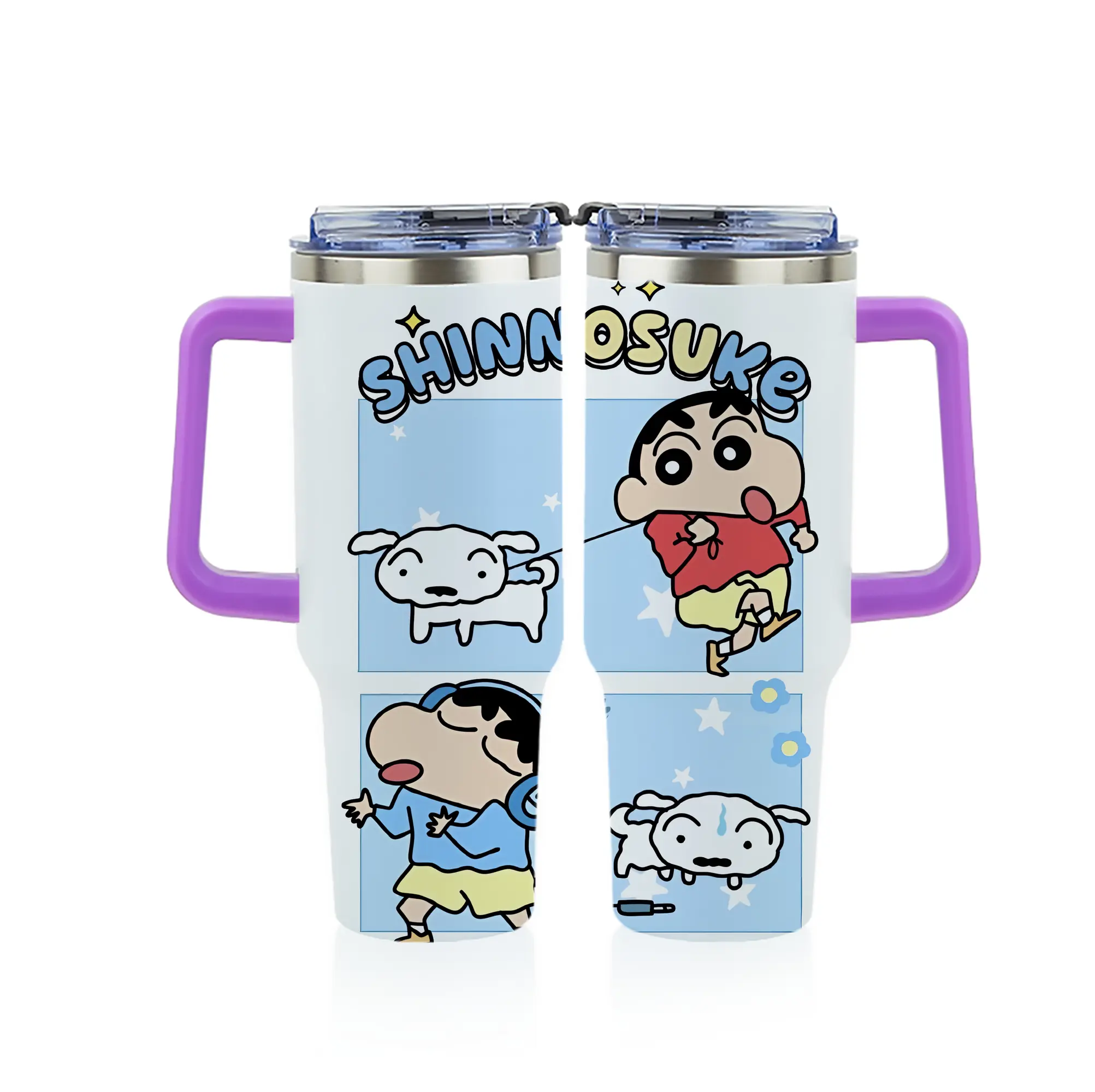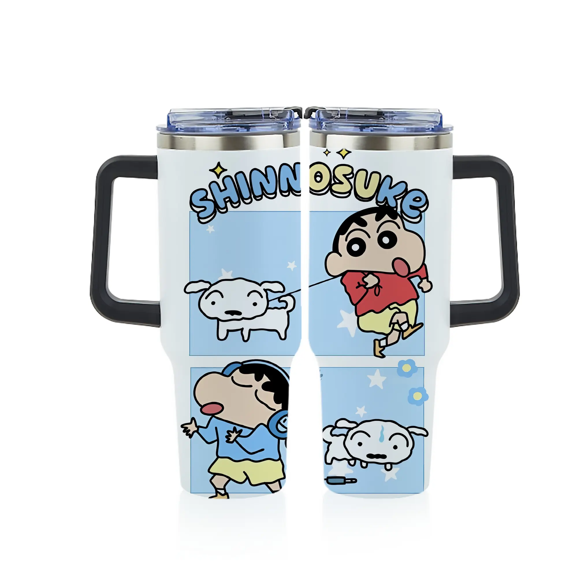 クレヨンしんちゃん グッズ 野原 しんのすけ - 1200mL フルプリント車用タンブラー ・ 304ステンレス 内側 ・ 201ステンレス 外側 ・ 保温 保冷 ・ 通勤 ドライブ アウトドア用