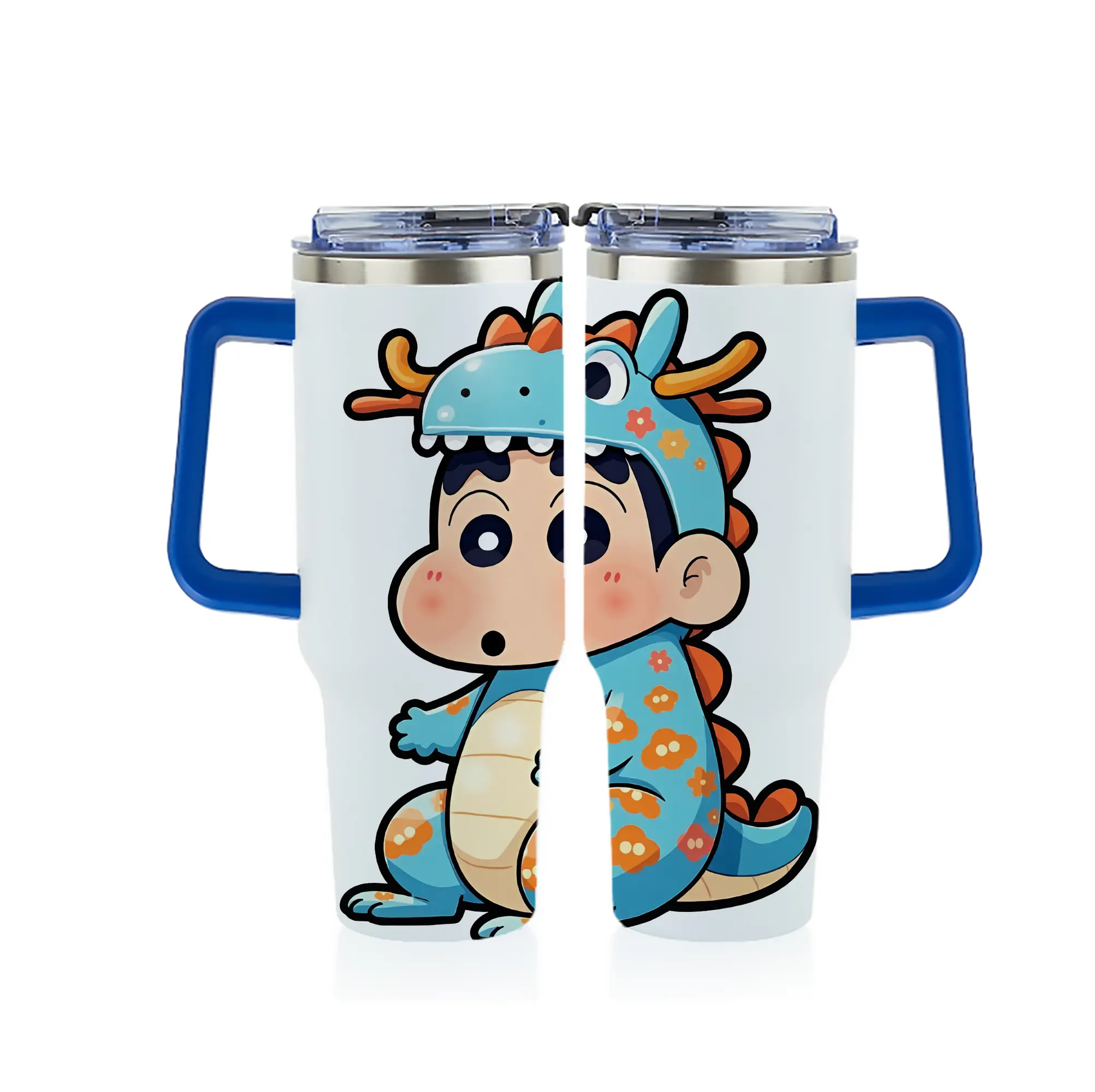 クレヨンしんちゃん グッズ 野原 しんのすけ - 1200mL フルプリント車用タンブラー ・ 304ステンレス 内側 ・ 201ステンレス 外側 ・ 保温 保冷 ・ 通勤 ドライブ アウトドア用