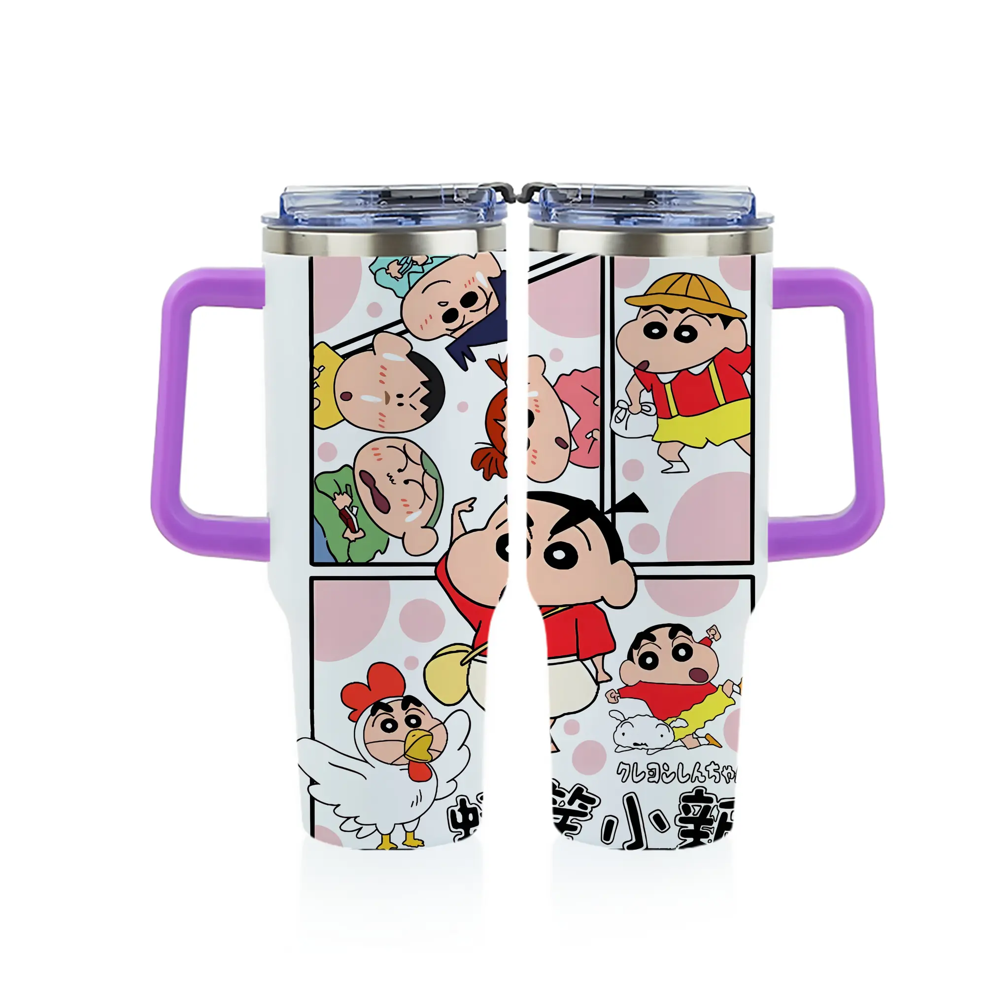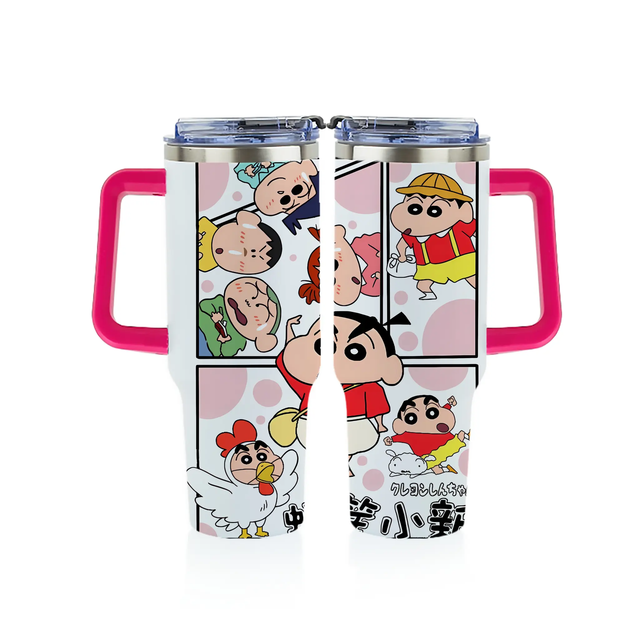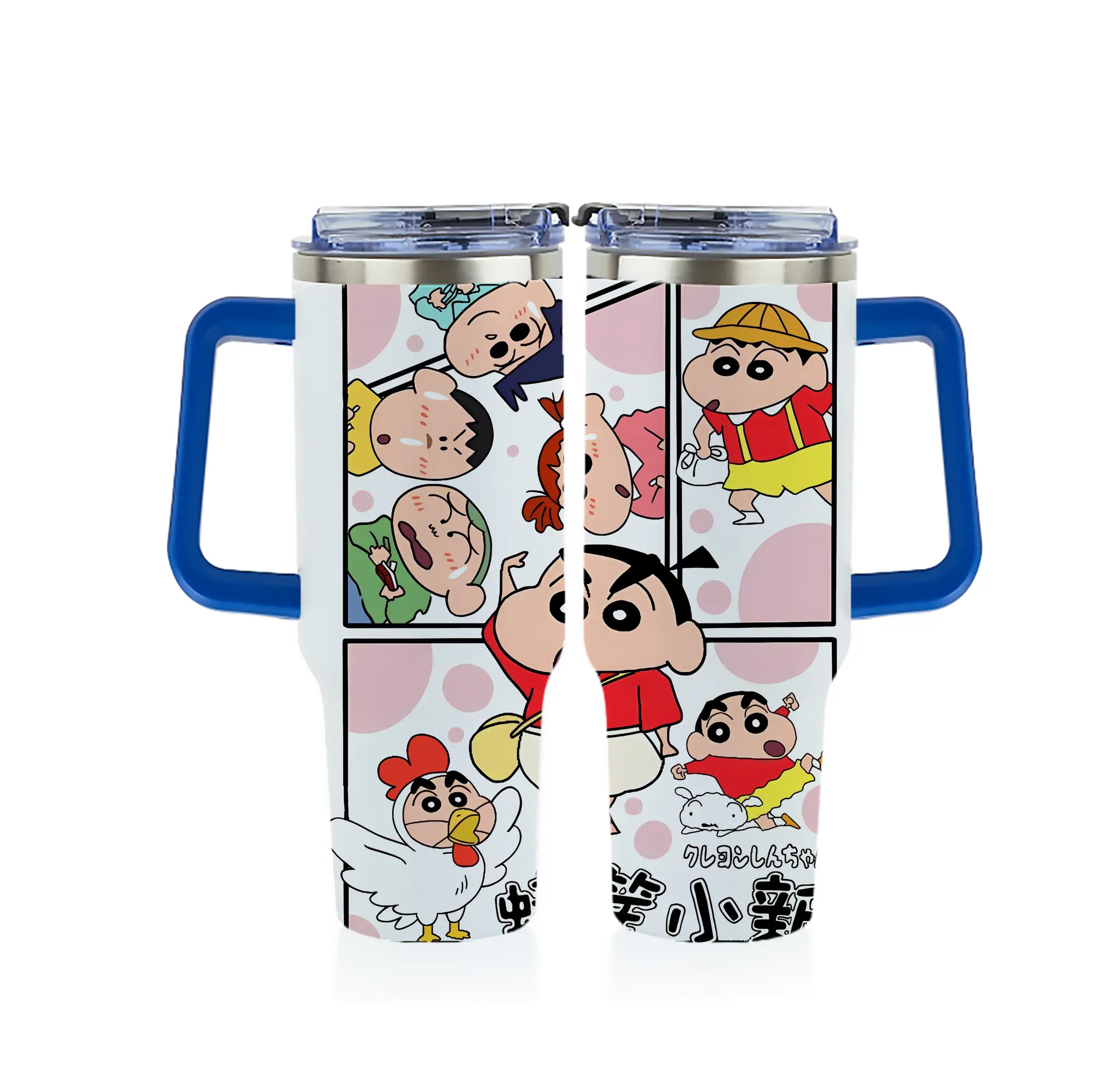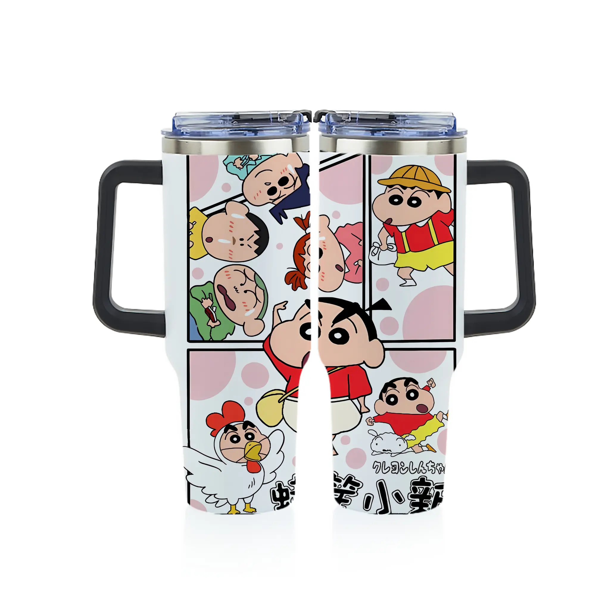 クレヨンしんちゃん グッズ 野原 しんのすけ - 1200mL フルプリント車用タンブラー ・ 304ステンレス 内側 ・ 201ステンレス 外側 ・ 保温 保冷 ・ 通勤 ドライブ アウトドア用