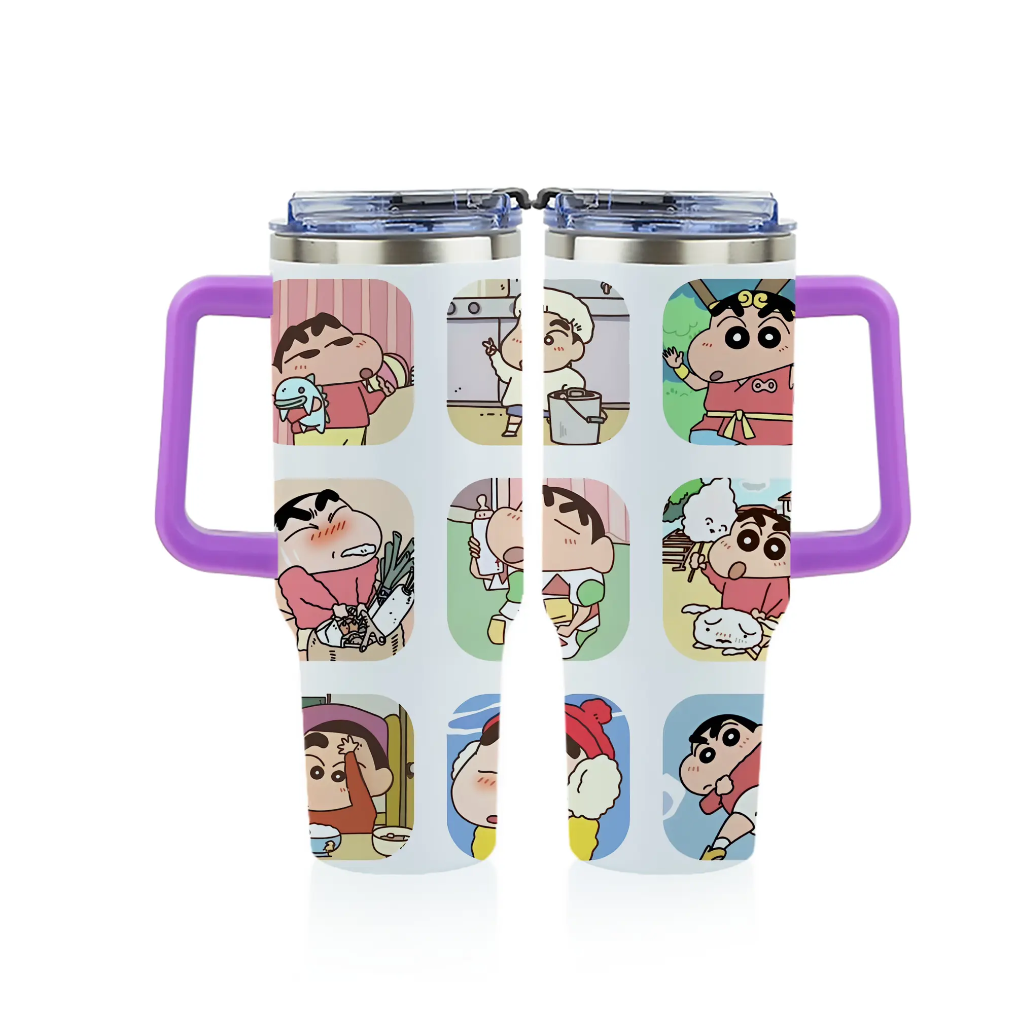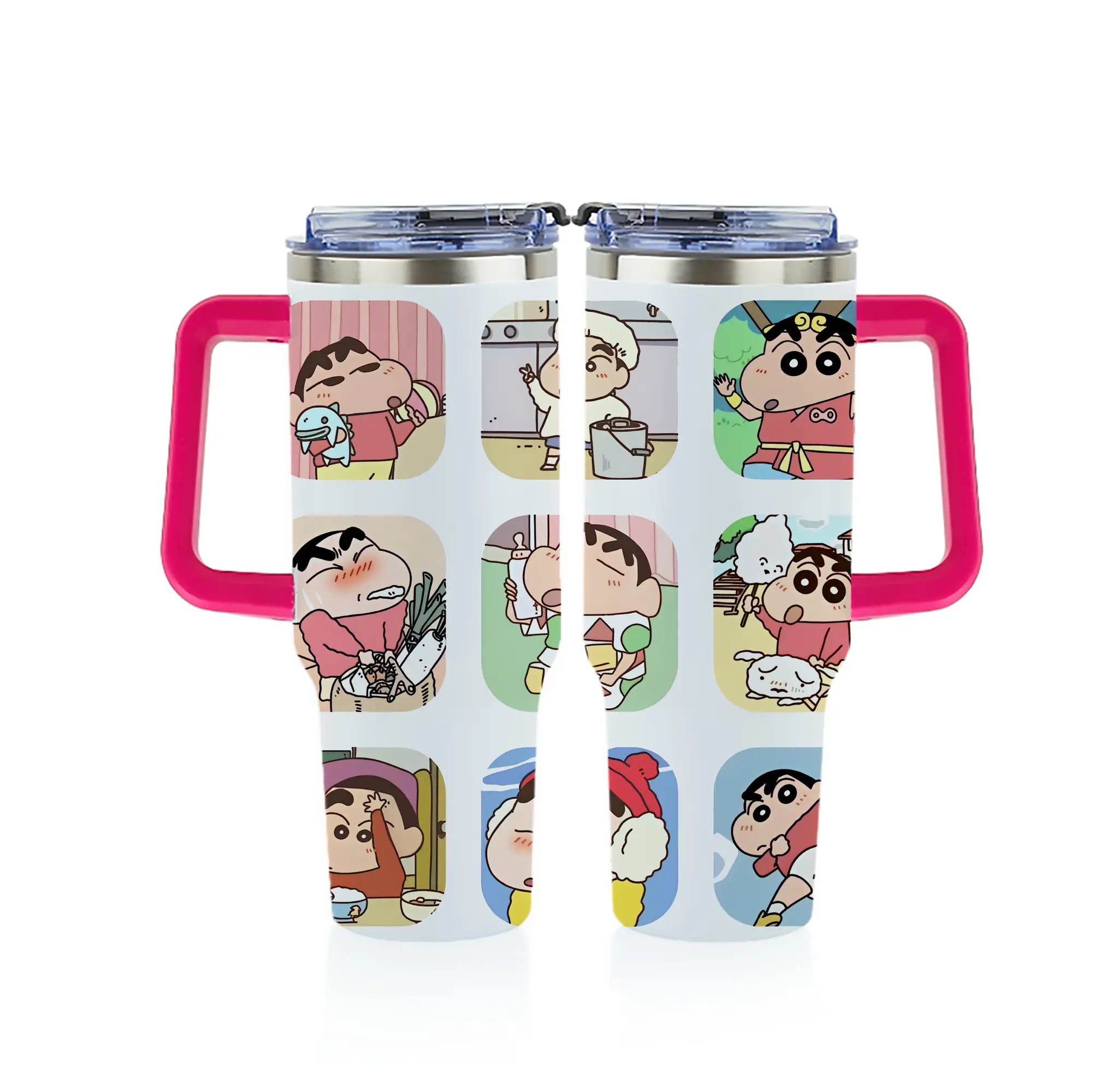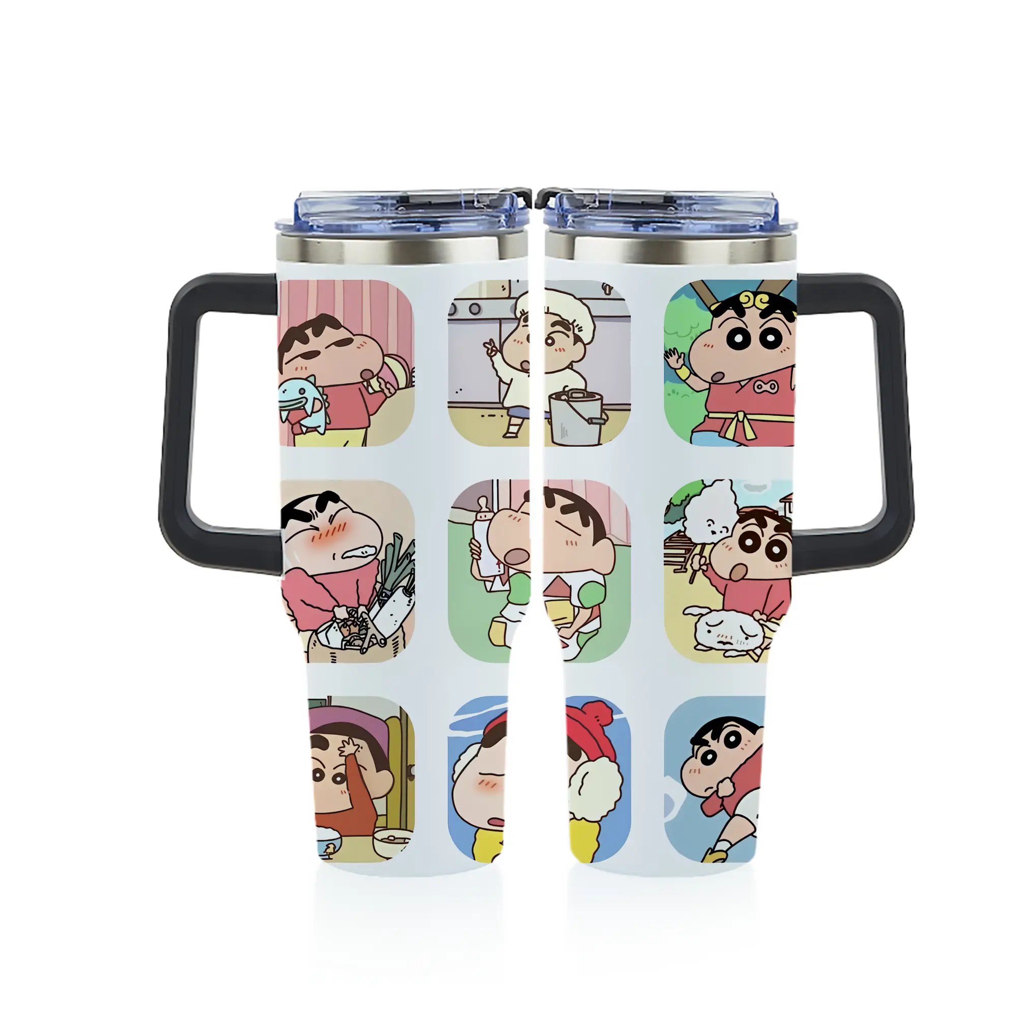 クレヨンしんちゃん グッズ 野原 しんのすけ - 1200mL フルプリント車用タンブラー ・ 304ステンレス 内側 ・ 201ステンレス 外側 ・ 保温 保冷 ・ 通勤 ドライブ アウトドア用