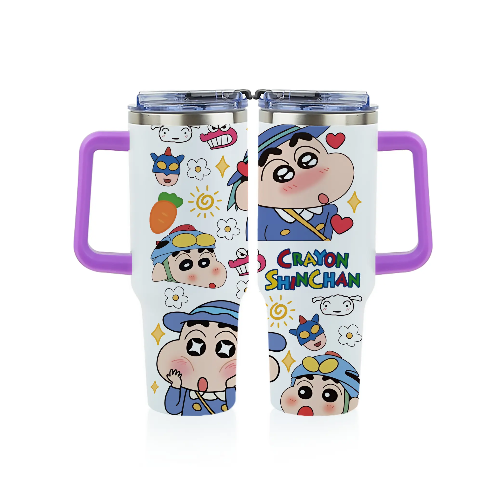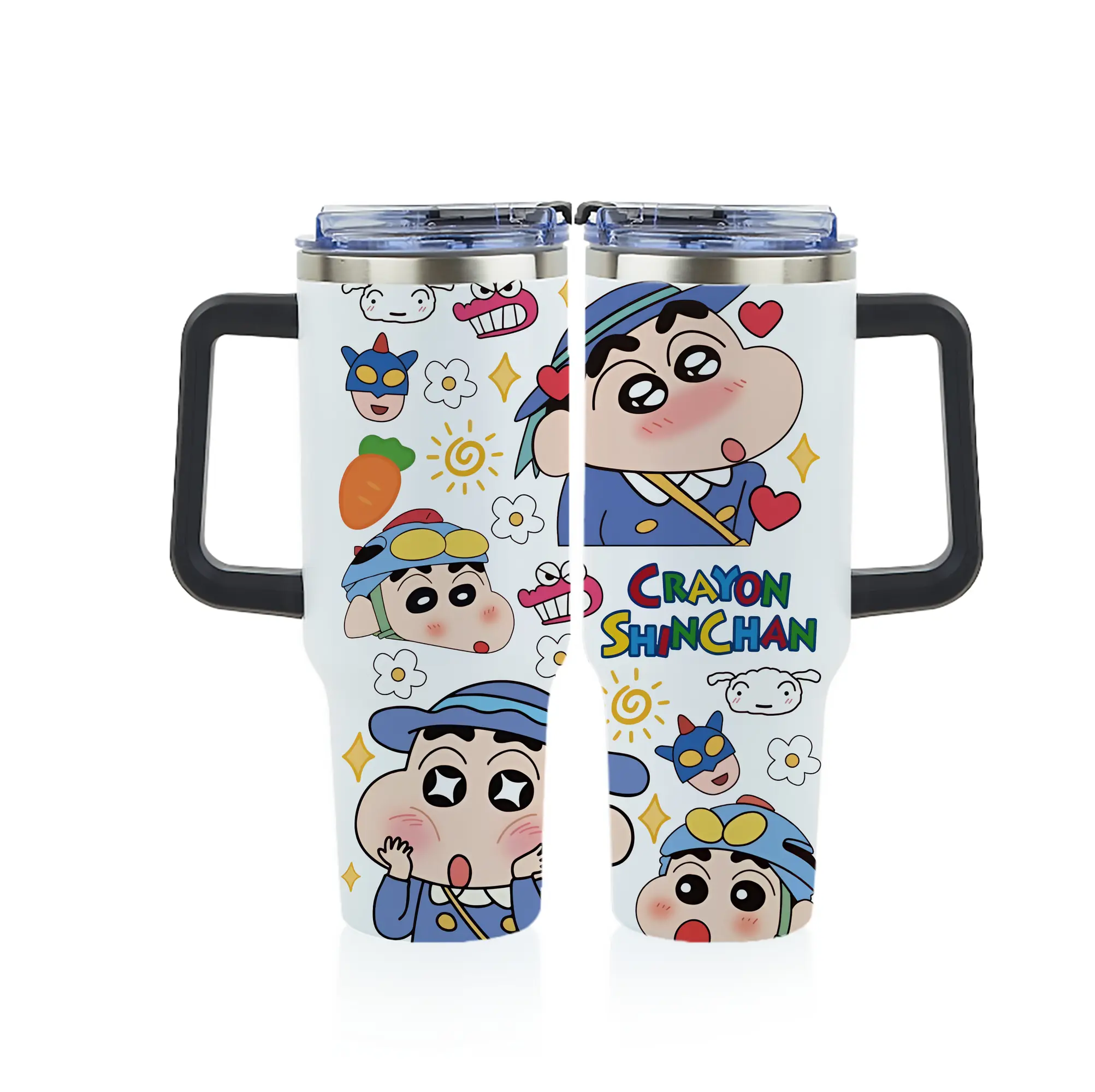 クレヨンしんちゃん グッズ 野原 しんのすけ - 1200mL フルプリント車用タンブラー ・ 304ステンレス 内側 ・ 201ステンレス 外側 ・ 保温 保冷 ・ 通勤 ドライブ アウトドア用