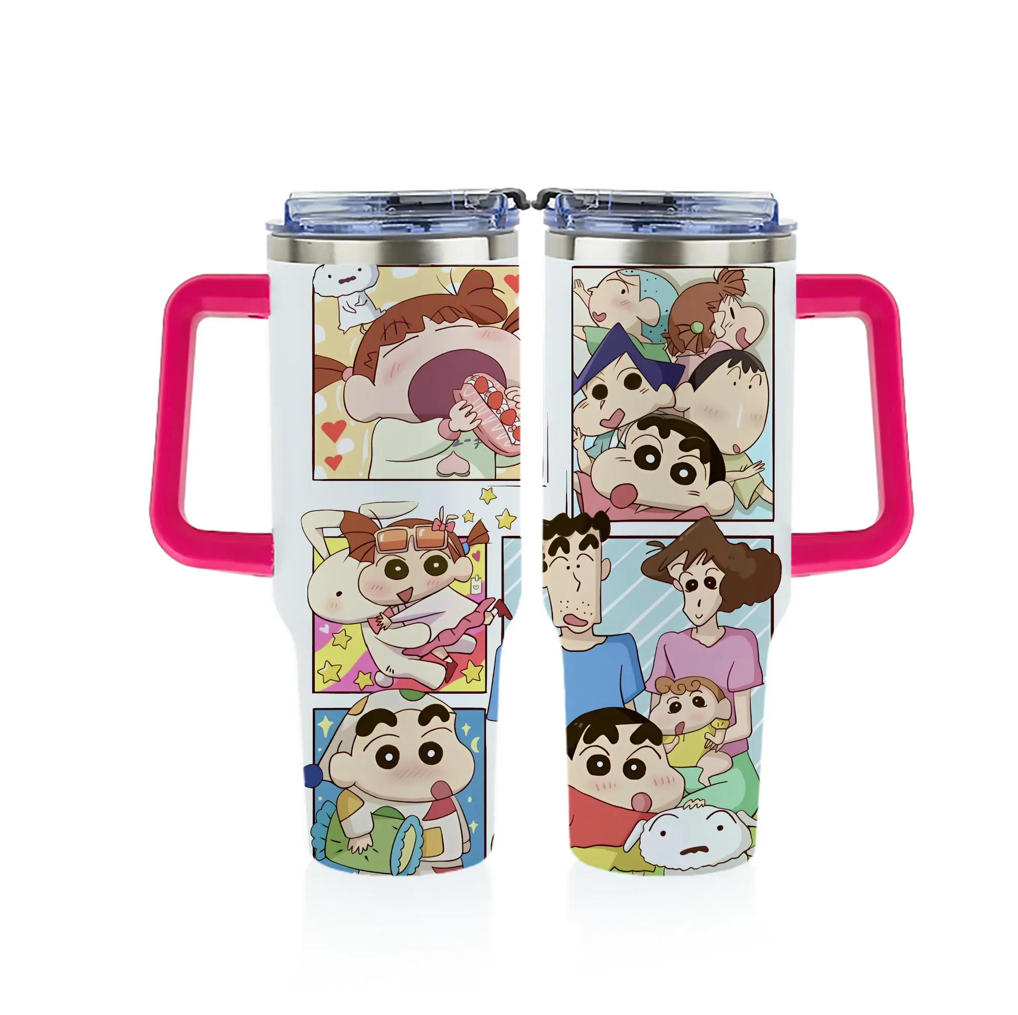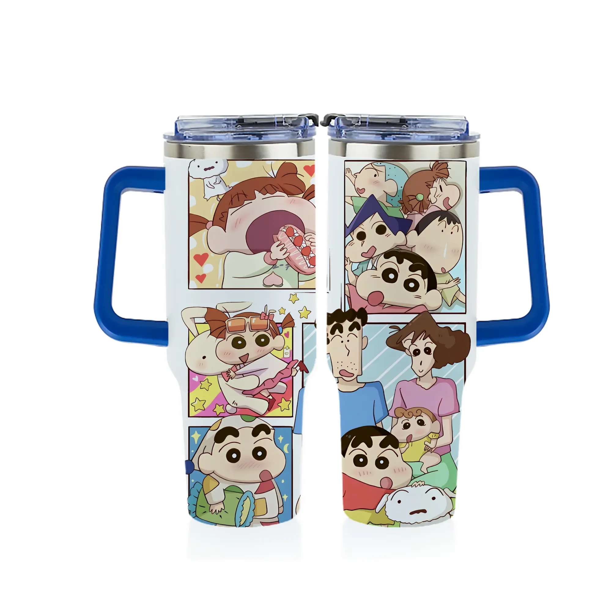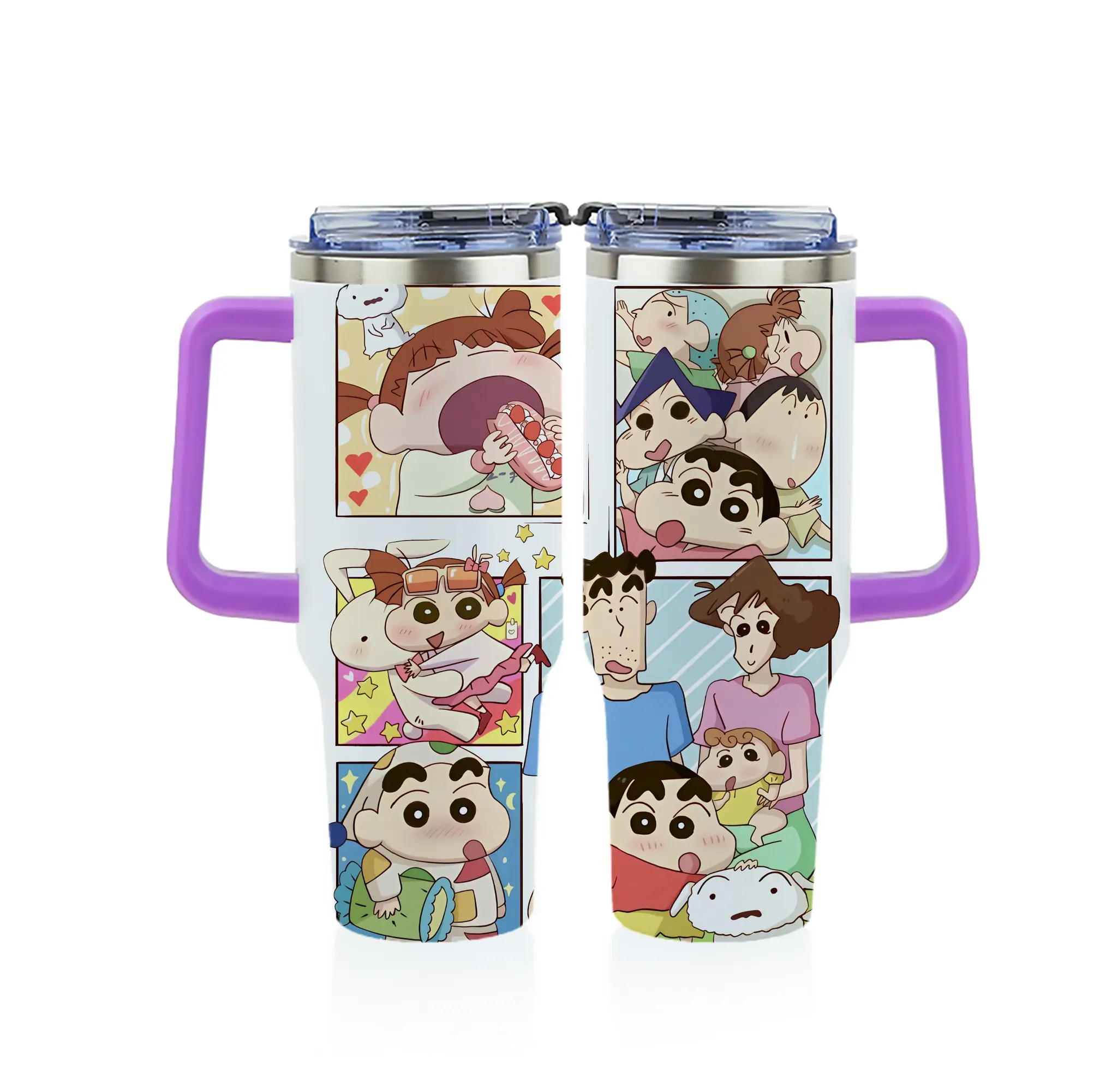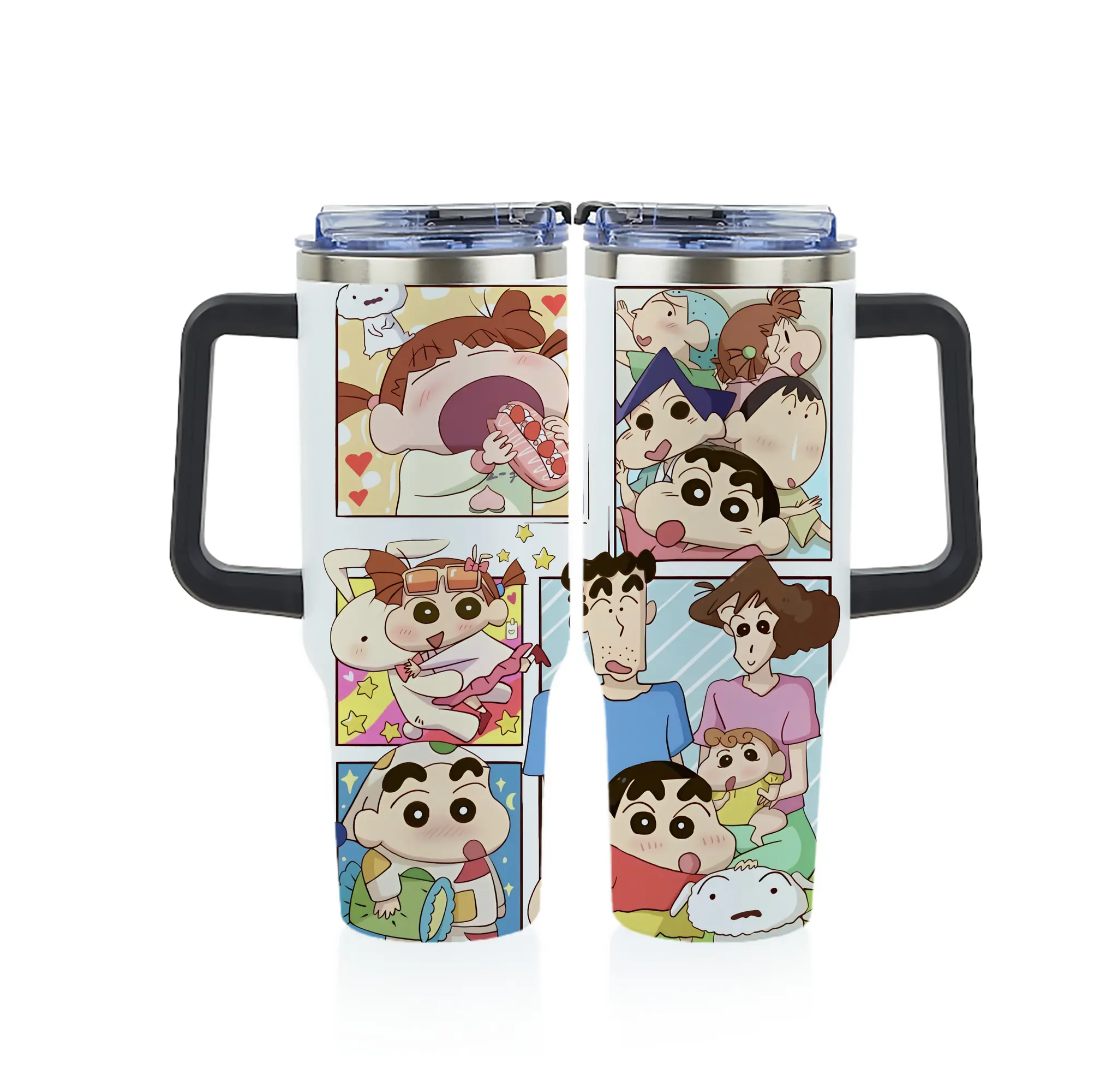 クレヨンしんちゃん グッズ 野原 しんのすけ - 1200mL フルプリント車用タンブラー ・ 304ステンレス 内側 ・ 201ステンレス 外側 ・ 保温 保冷 ・ 通勤 ドライブ アウトドア用