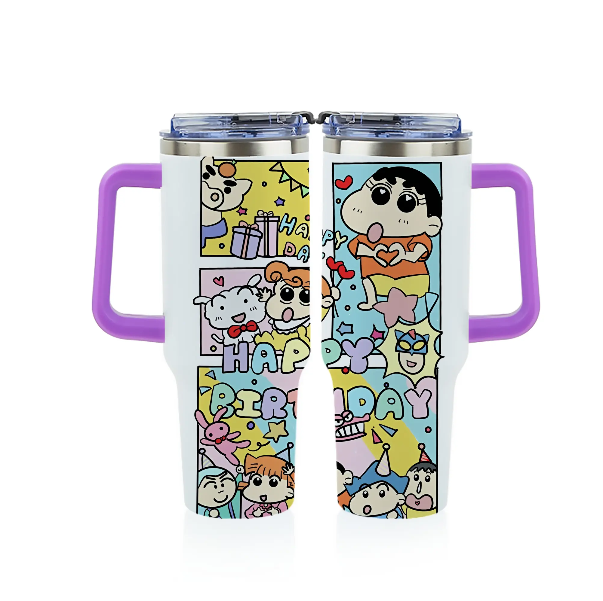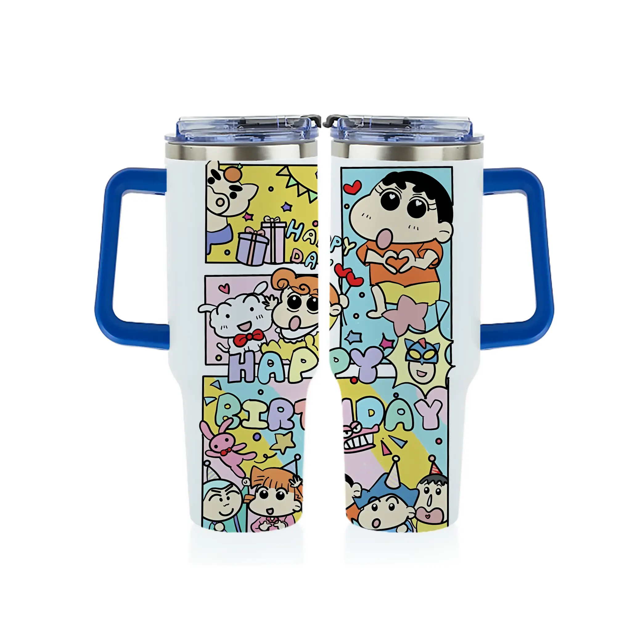 クレヨンしんちゃん グッズ 野原 しんのすけ - 1200mL フルプリント車用タンブラー ・ 304ステンレス 内側 ・ 201ステンレス 外側 ・ 保温 保冷 ・ 通勤 ドライブ アウトドア用